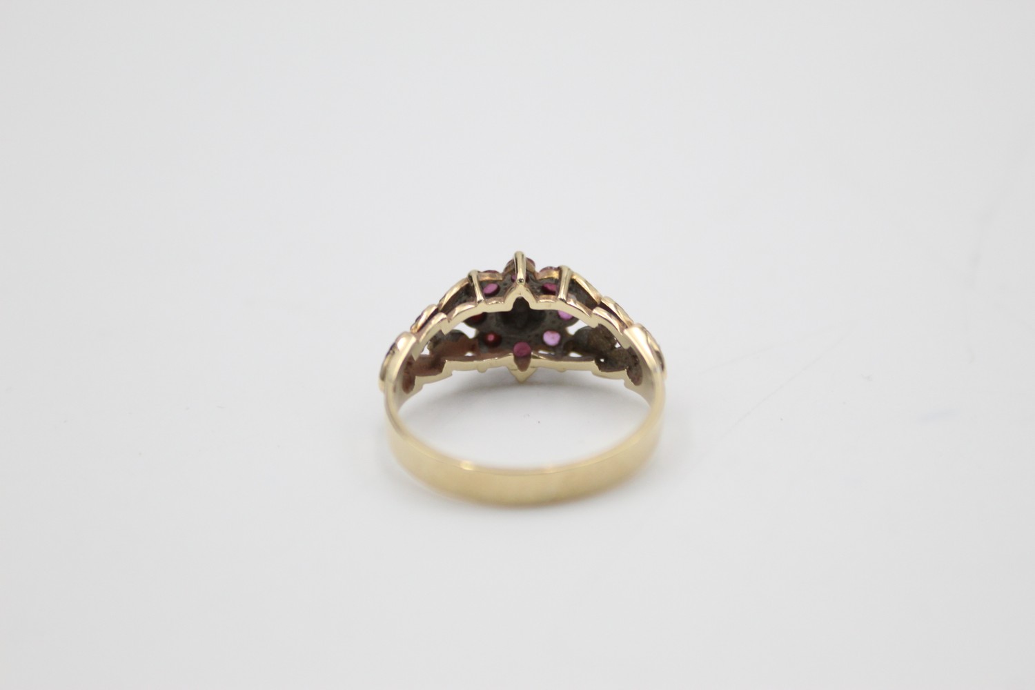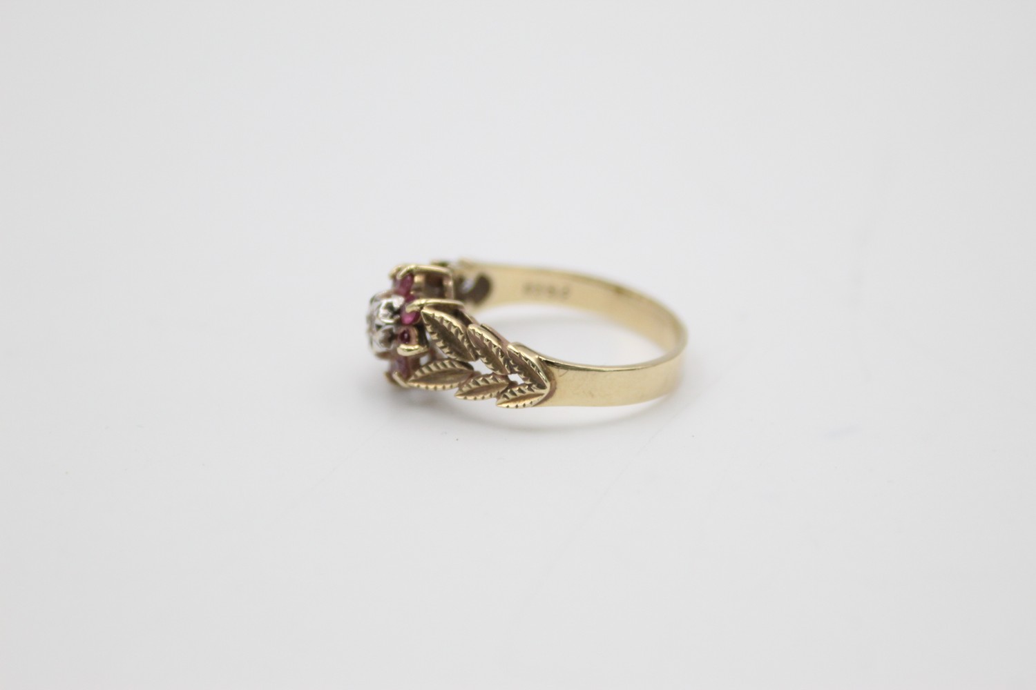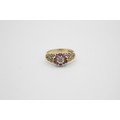 9ct gold 1970s texture diamond & ruby halo ring (2.8g)