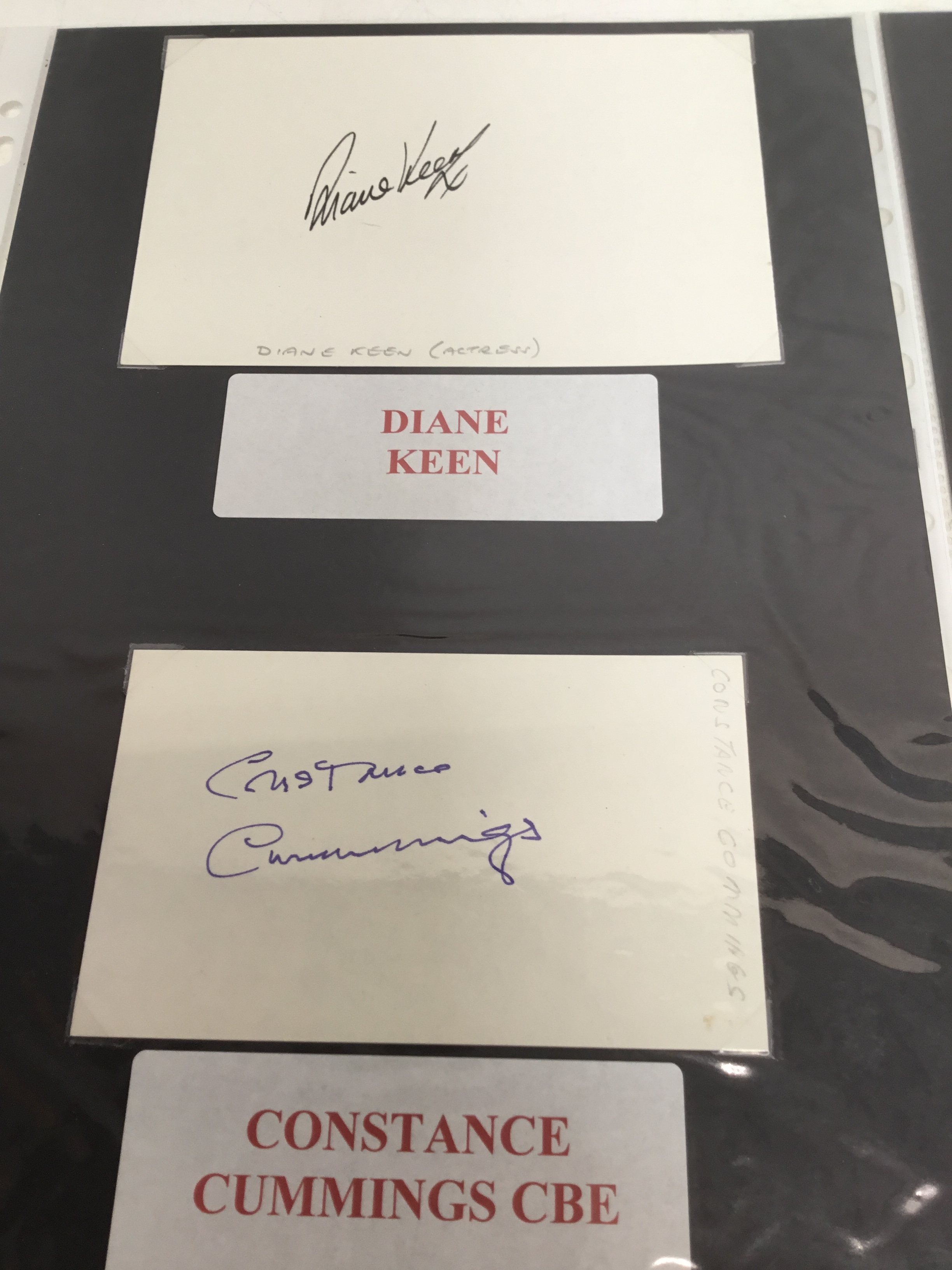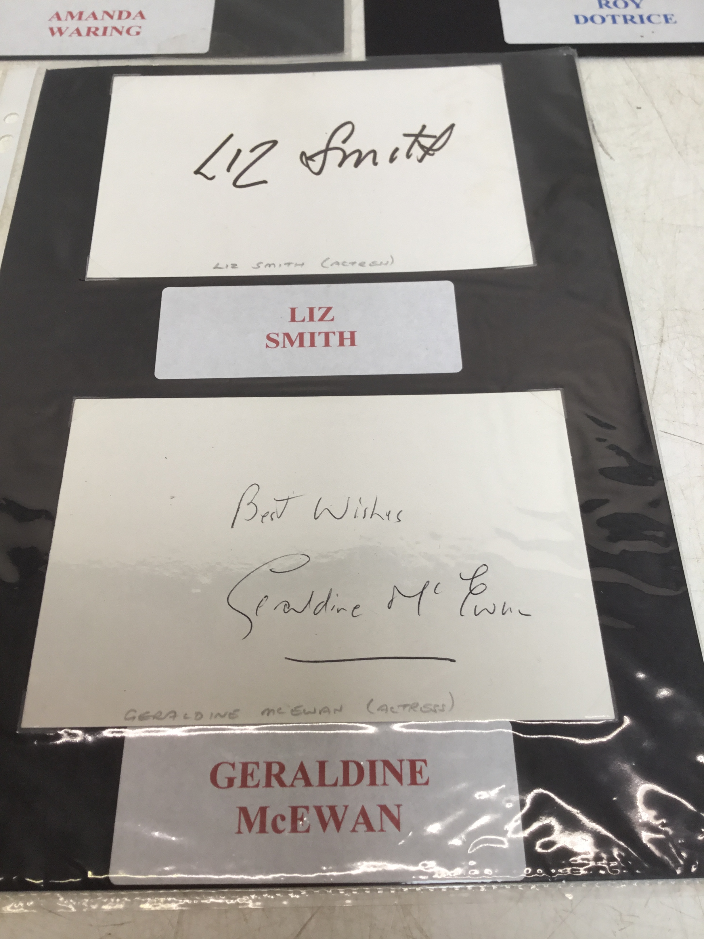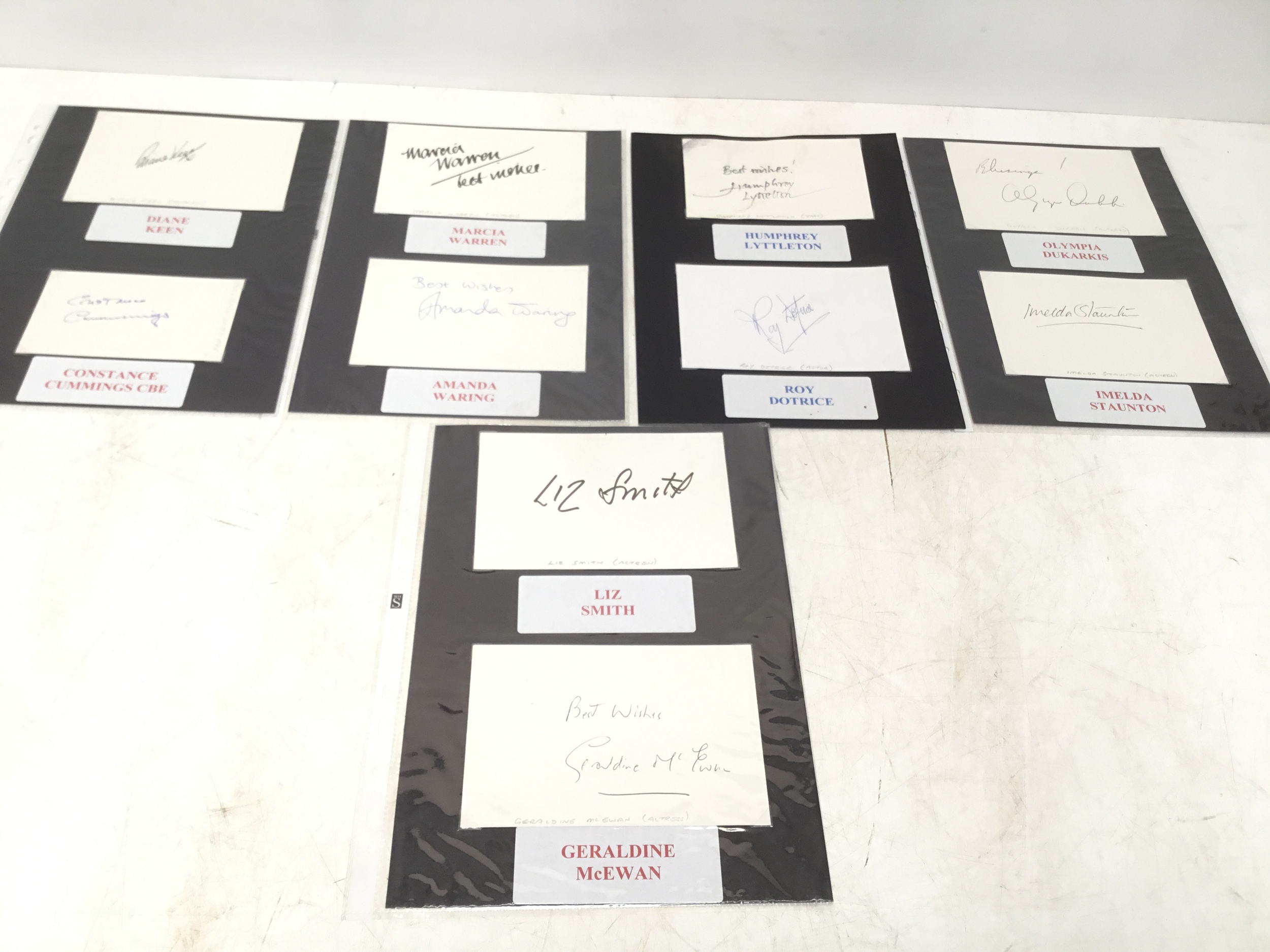 A collection of 10 autographs mainly actors including jazz musician Humphrey Lyttleton
