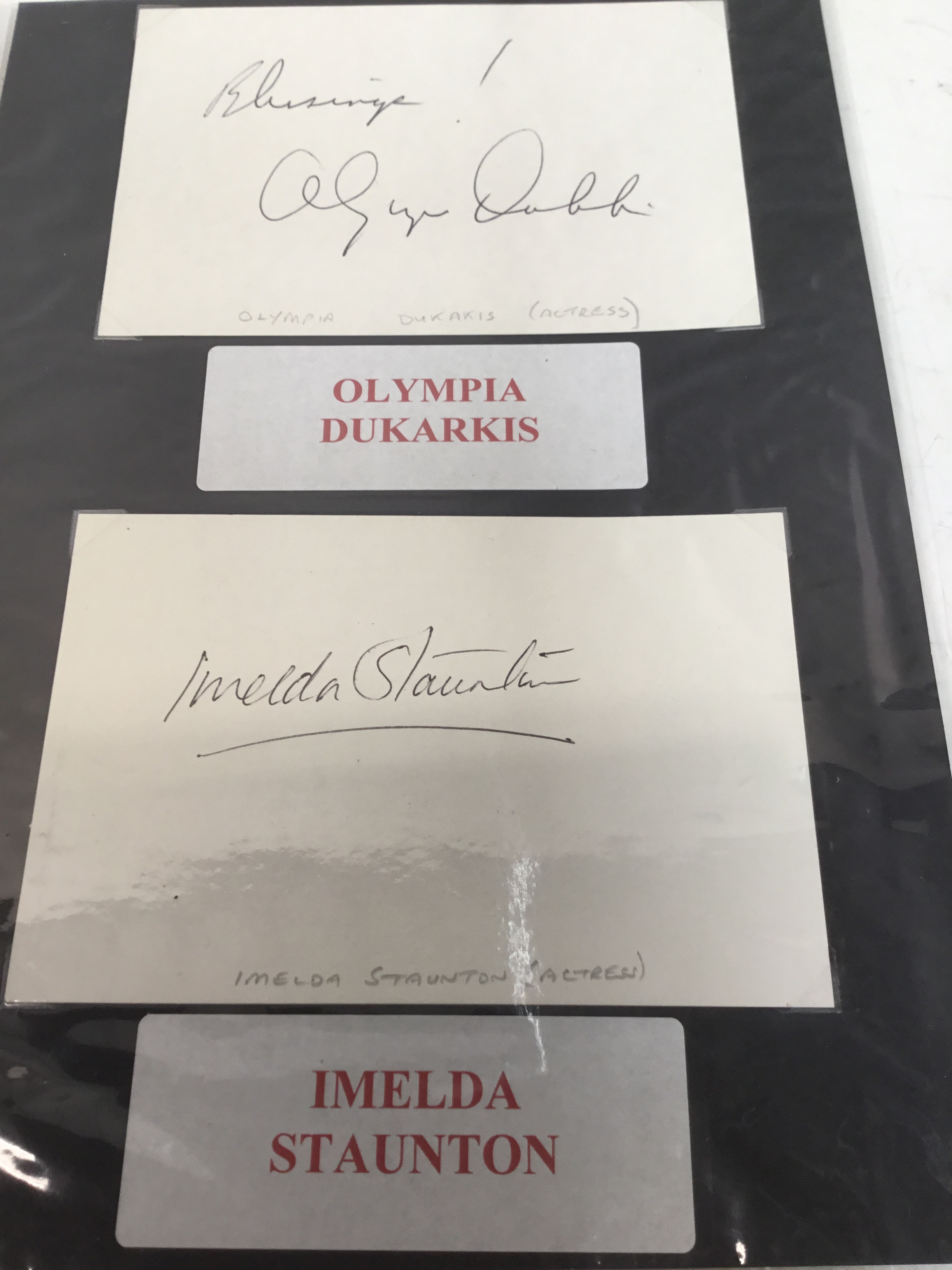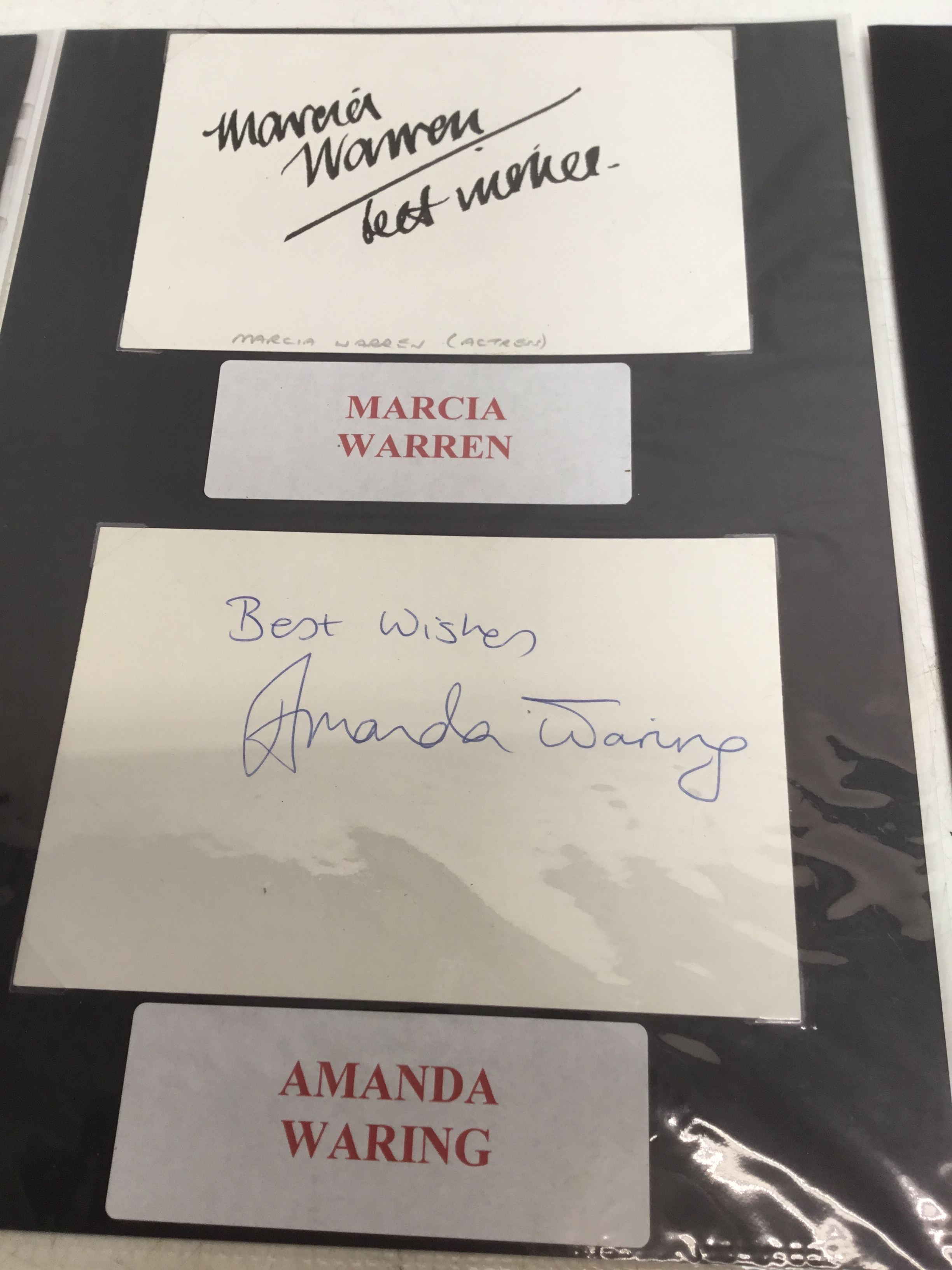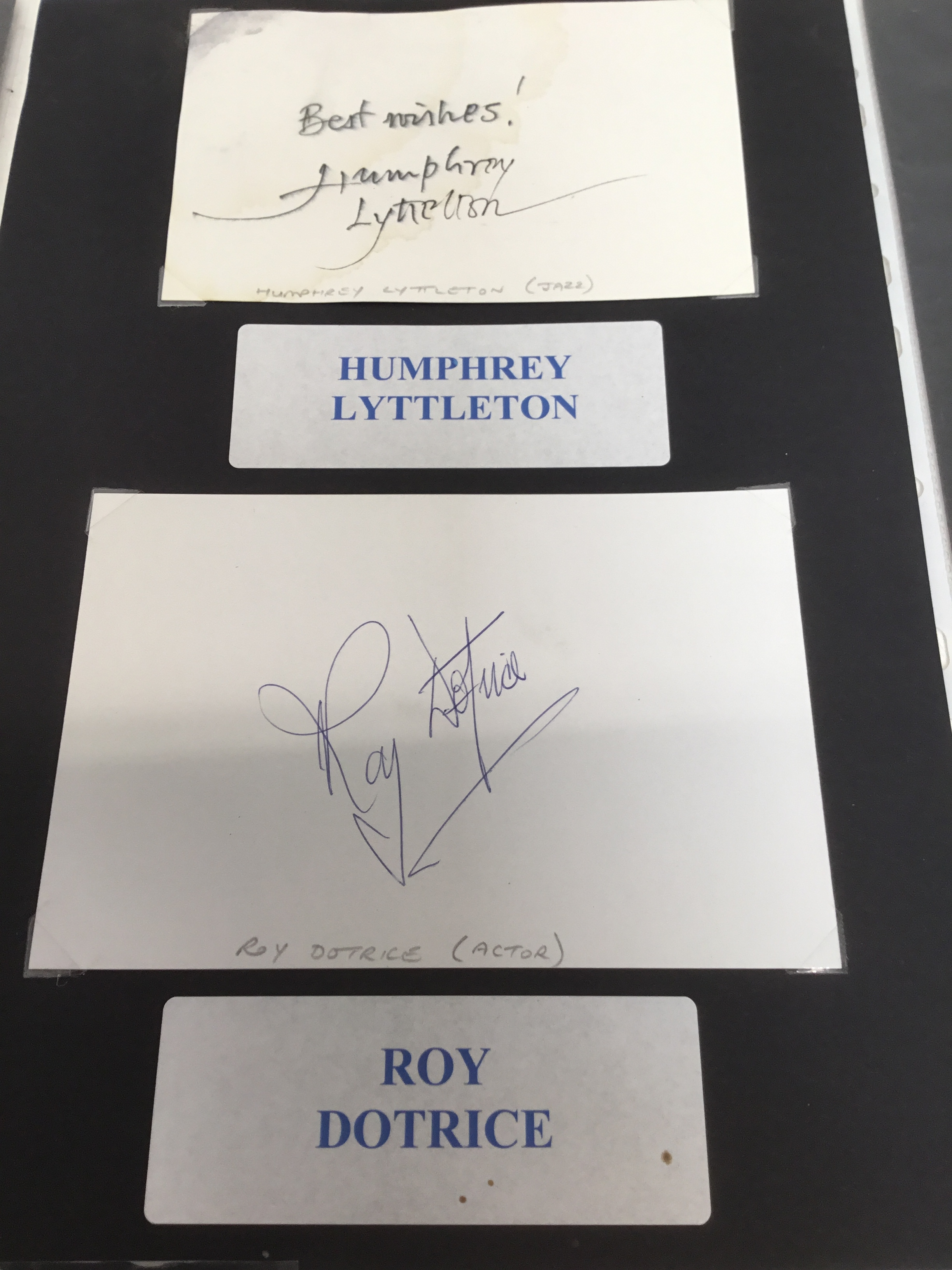 A collection of 10 autographs mainly actors including jazz musician Humphrey Lyttleton