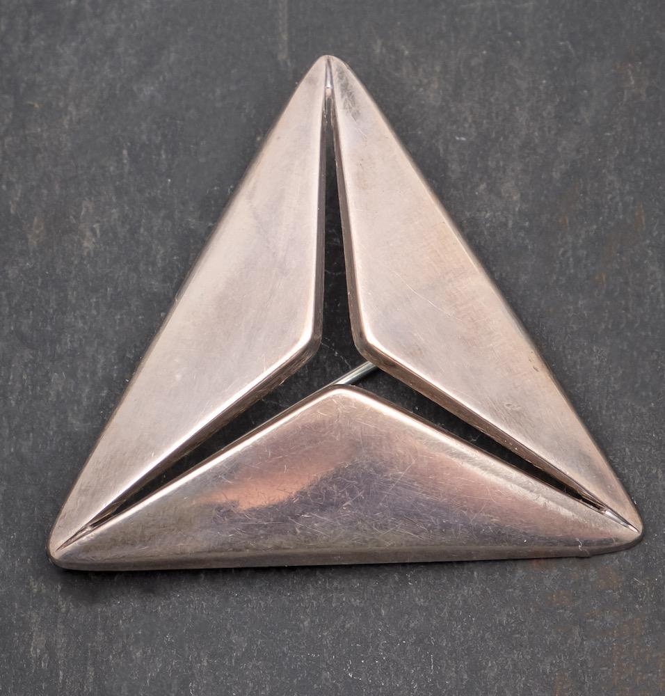Flemming Eskildsen for Georg Jensen, a triangular silver brooch with open centre, design nr 341, with Georg Jensen maker's mark for after 1945, length ca. 3.8cm, total weight ca. 14.9gms.