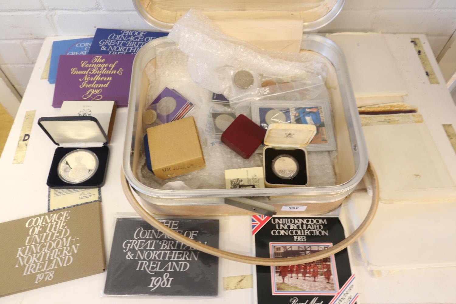 Selection of British and other coin sets together with loose coins, including Jamaica 1979 silver proof coin etc