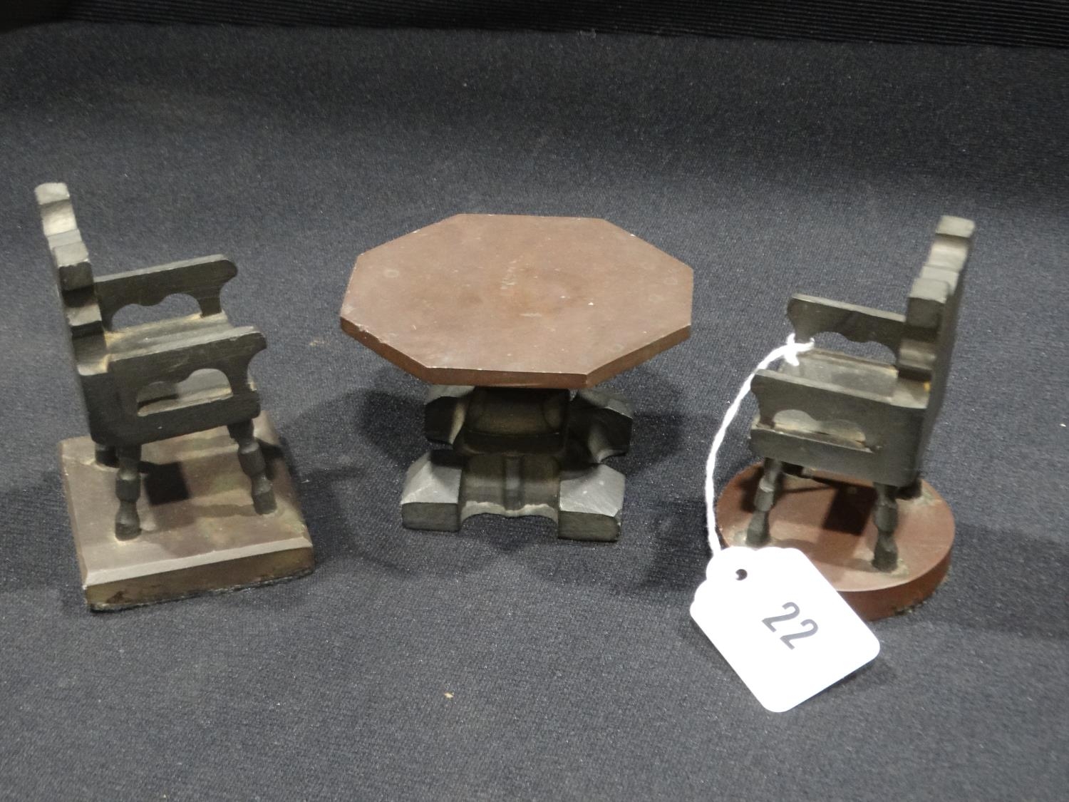 A Welsh Slate Miniature Pedestal Table And Two Chairs