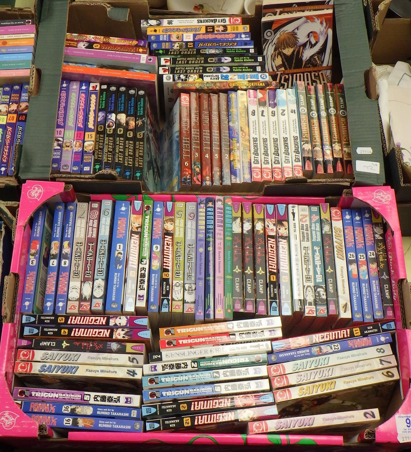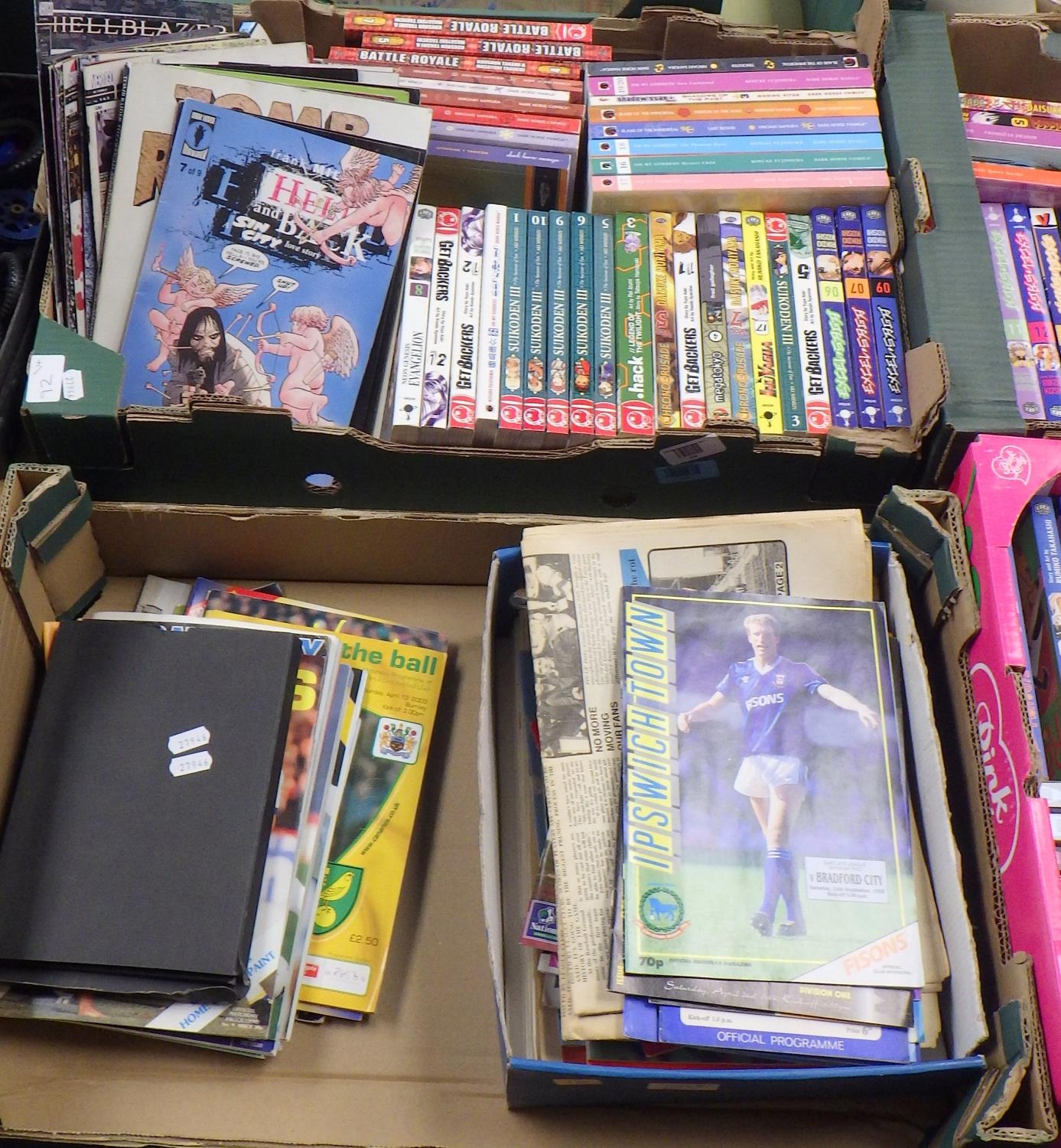 Three boxes of Japanese comic books to include Negimai etc together with a small amount of football programmes (4).