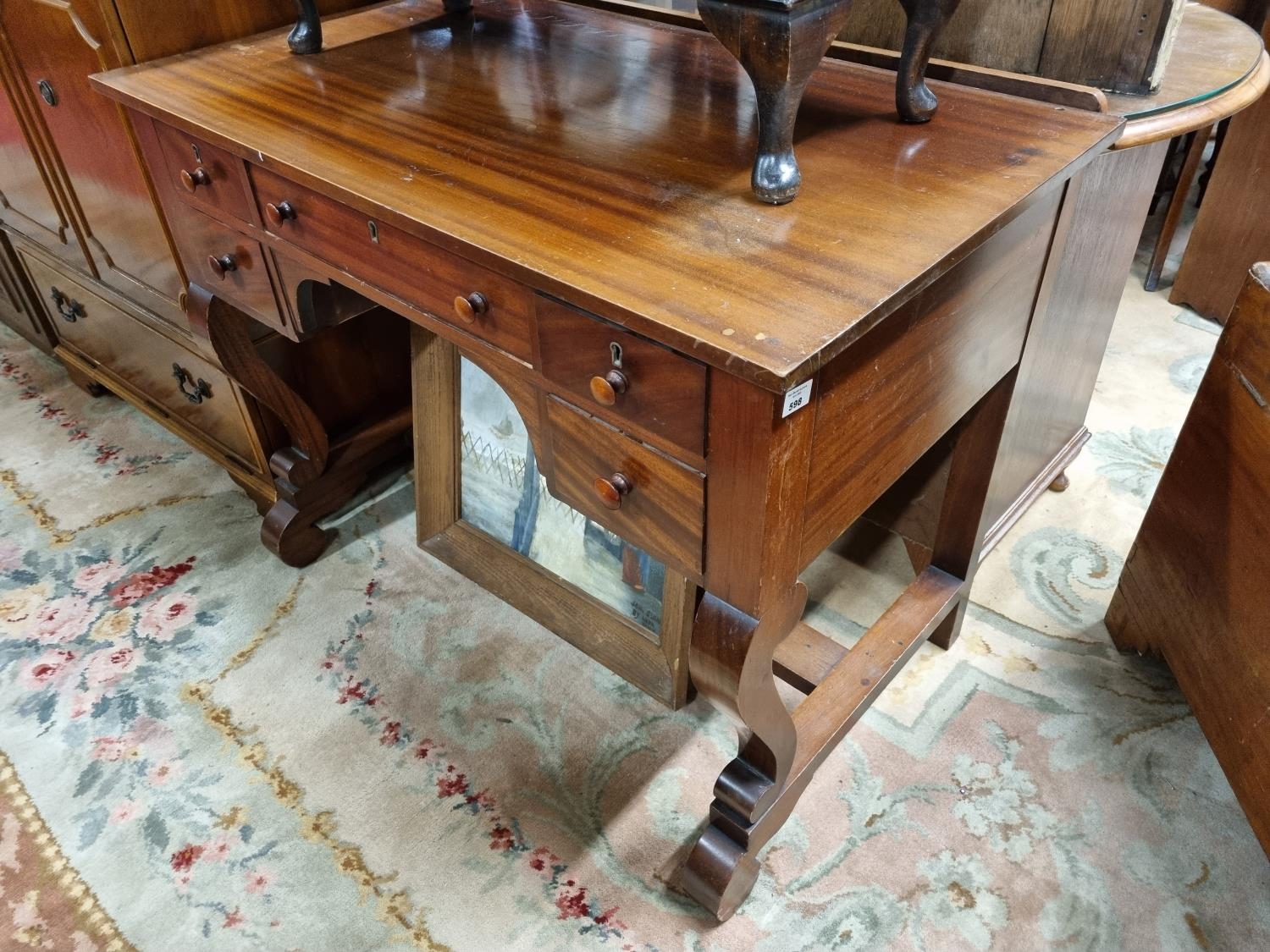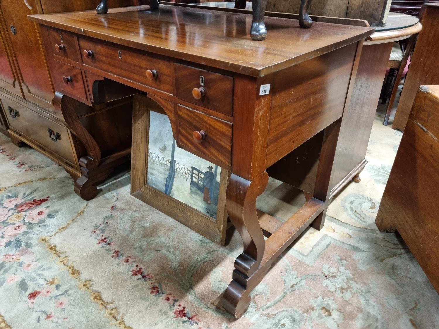 A 19th Century Mahogany kneehole writing Desk with 5 small drawers. 99 x 56 x H 76 cm approx.