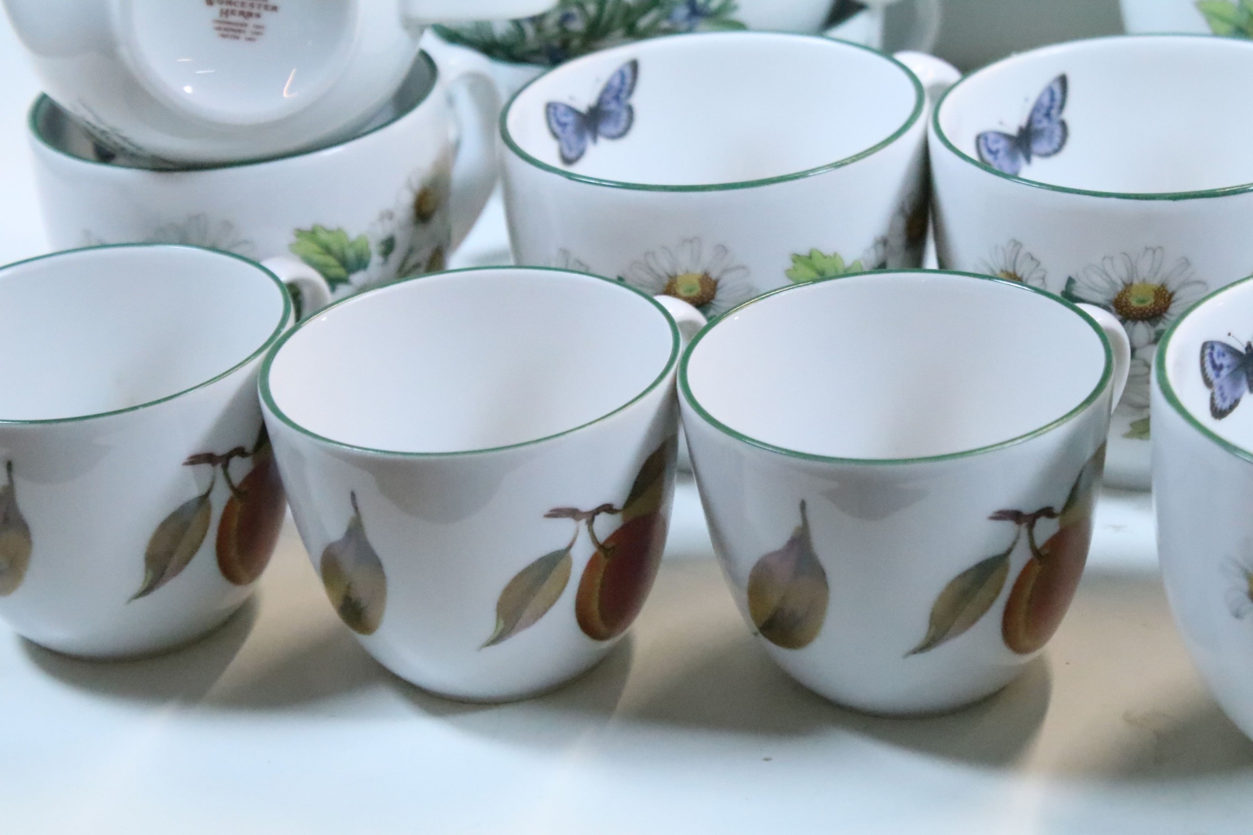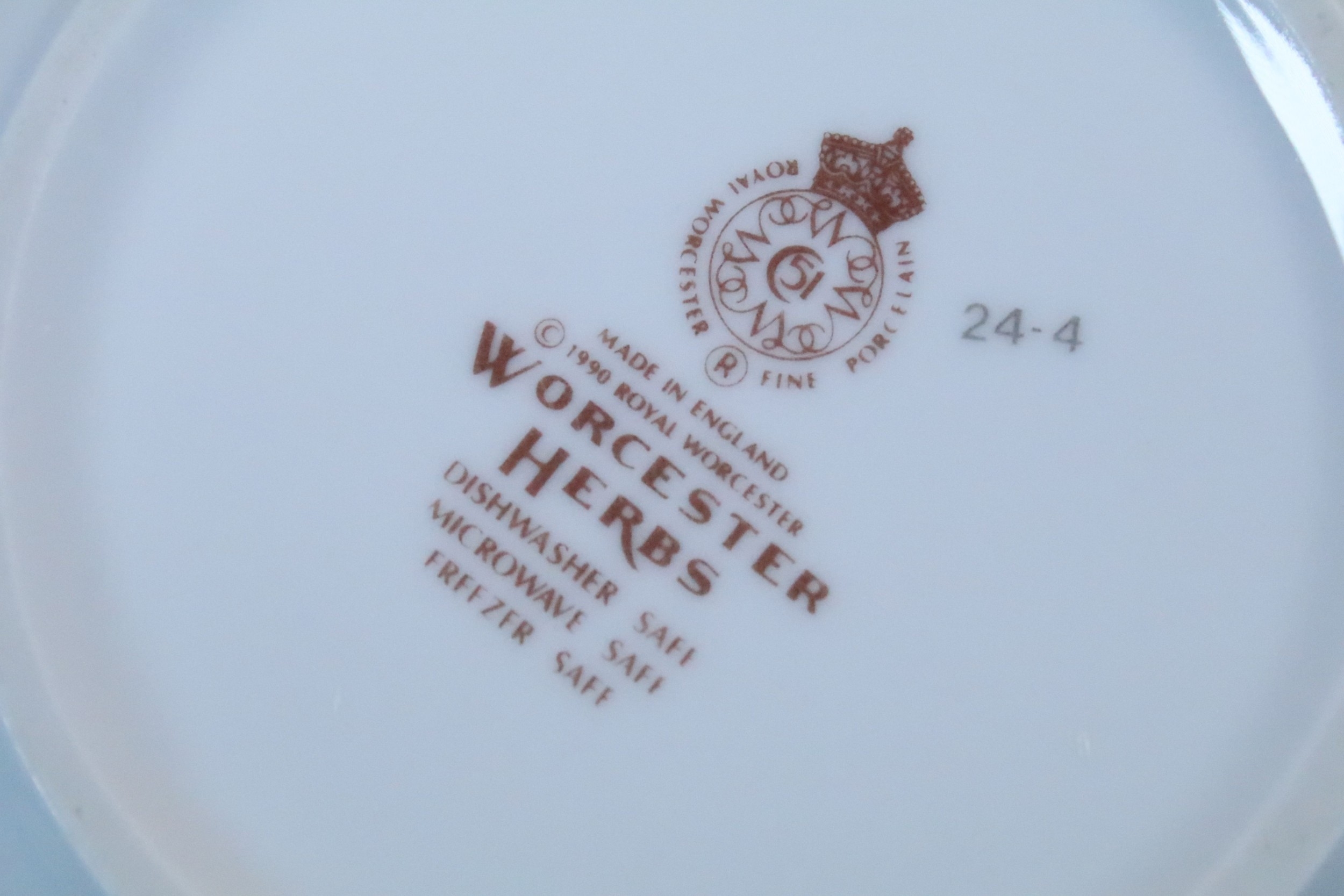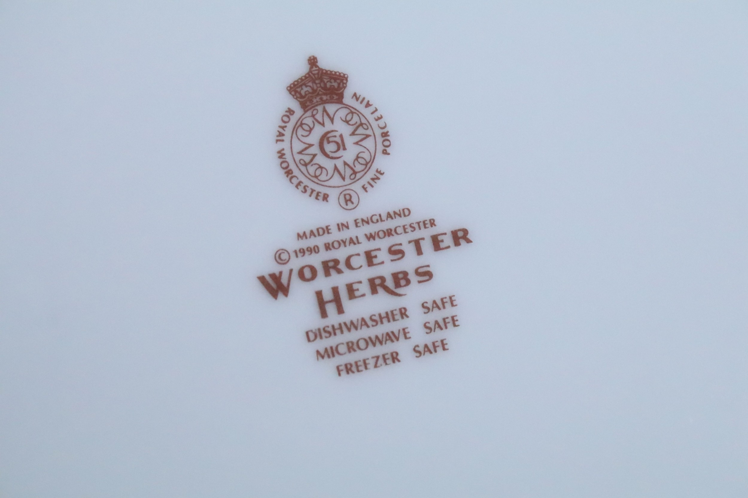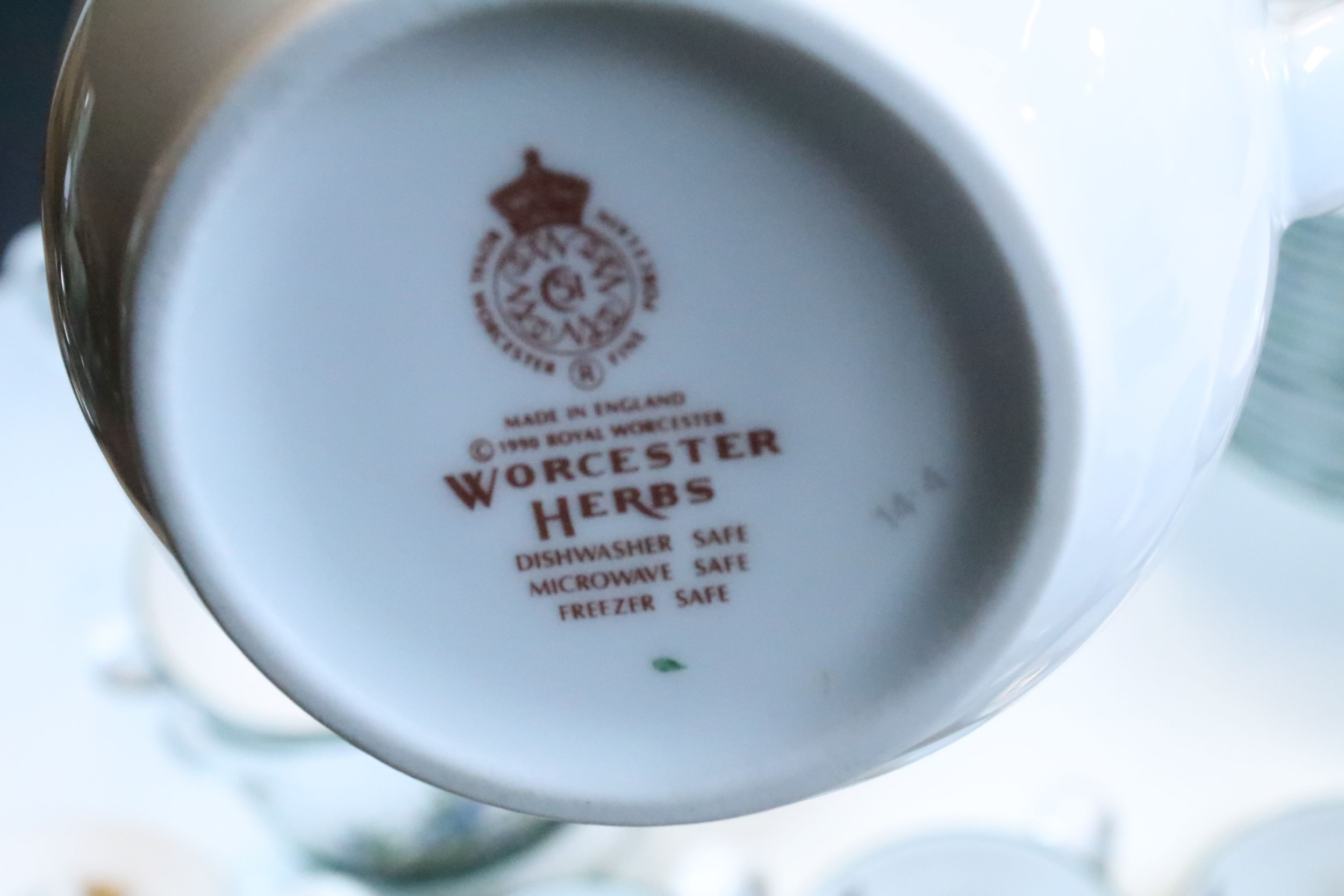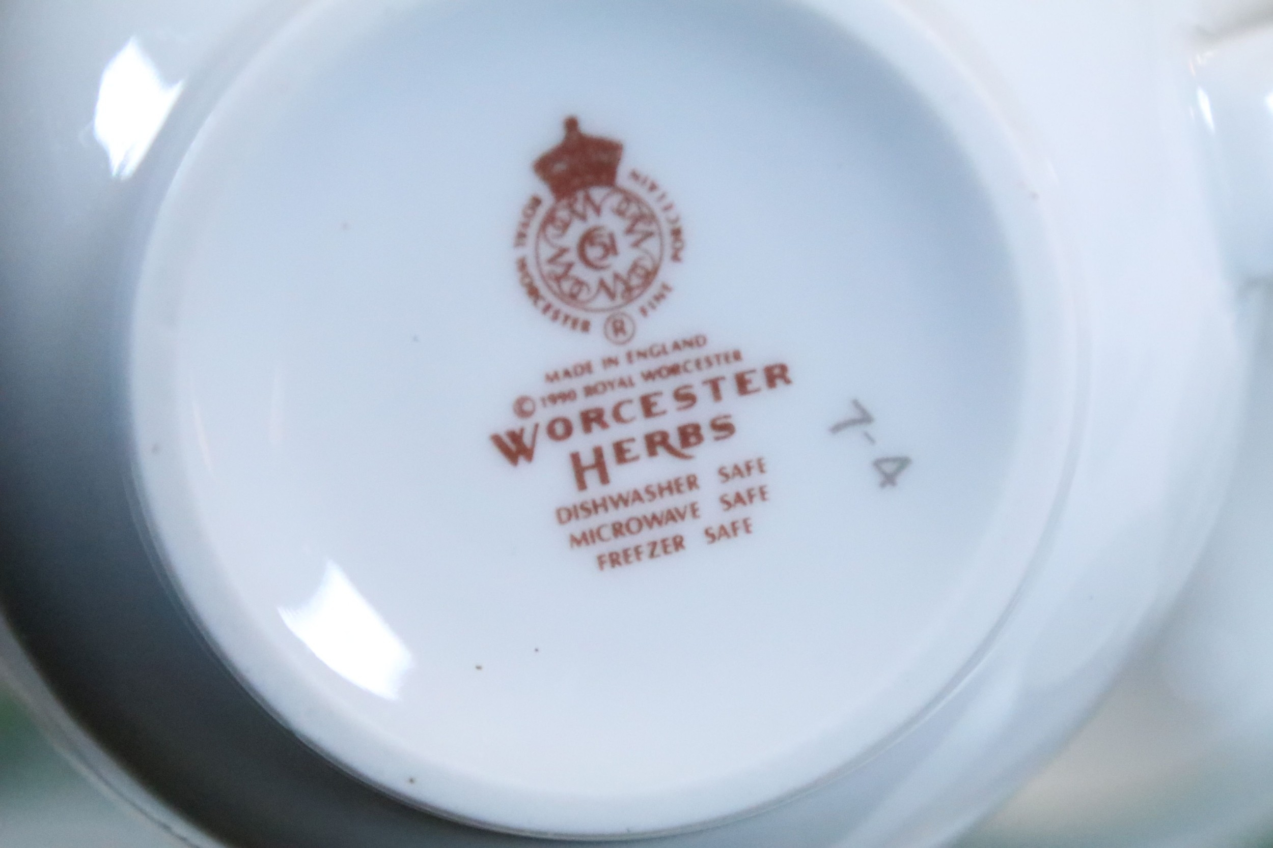 Quantity of Royal Worcester 'Worcester Herbs' pattern part tea set to include cups, saucers, teapot, etc together with a small selection of 'Evesham Vale' pattern items (1 box)