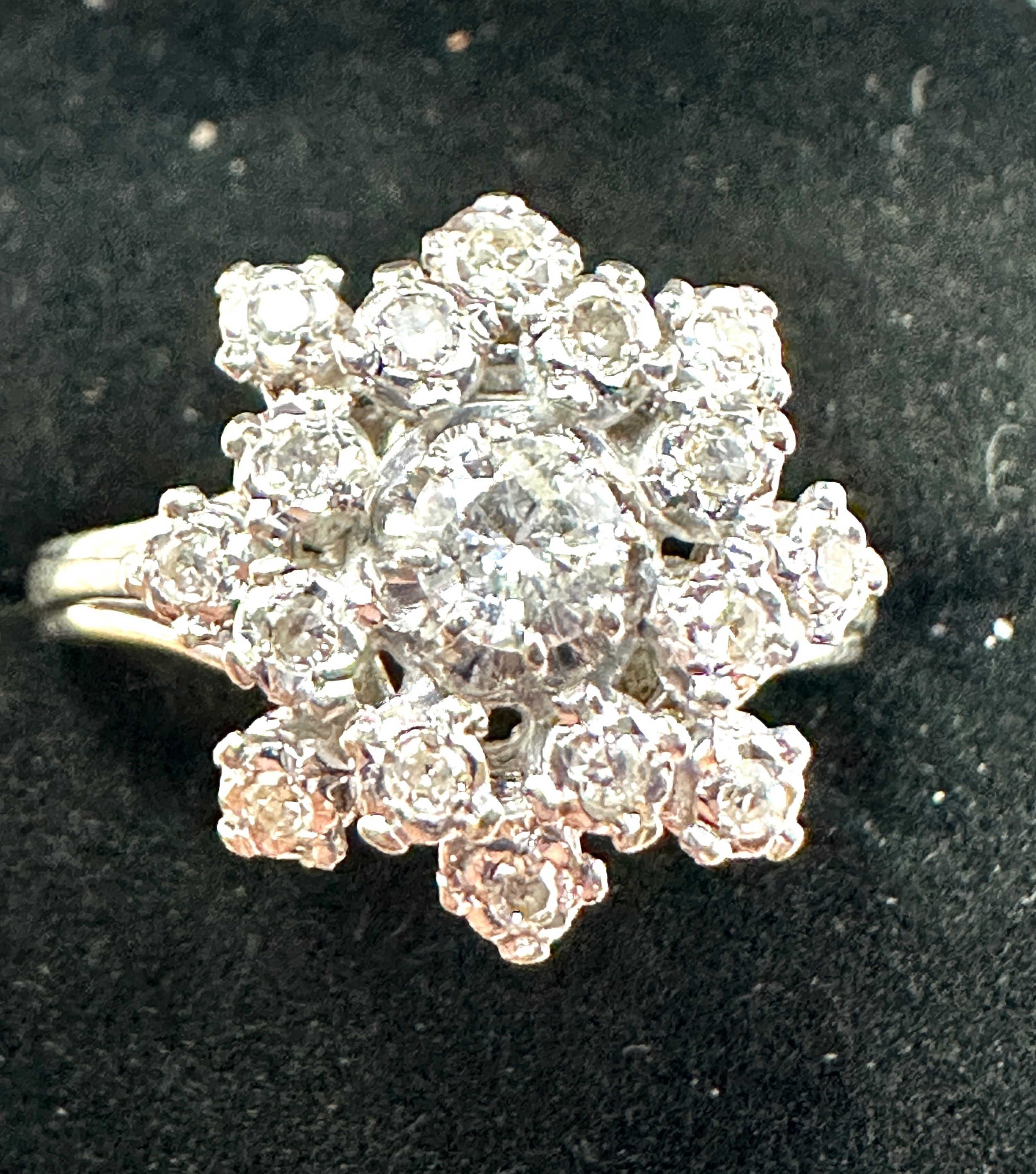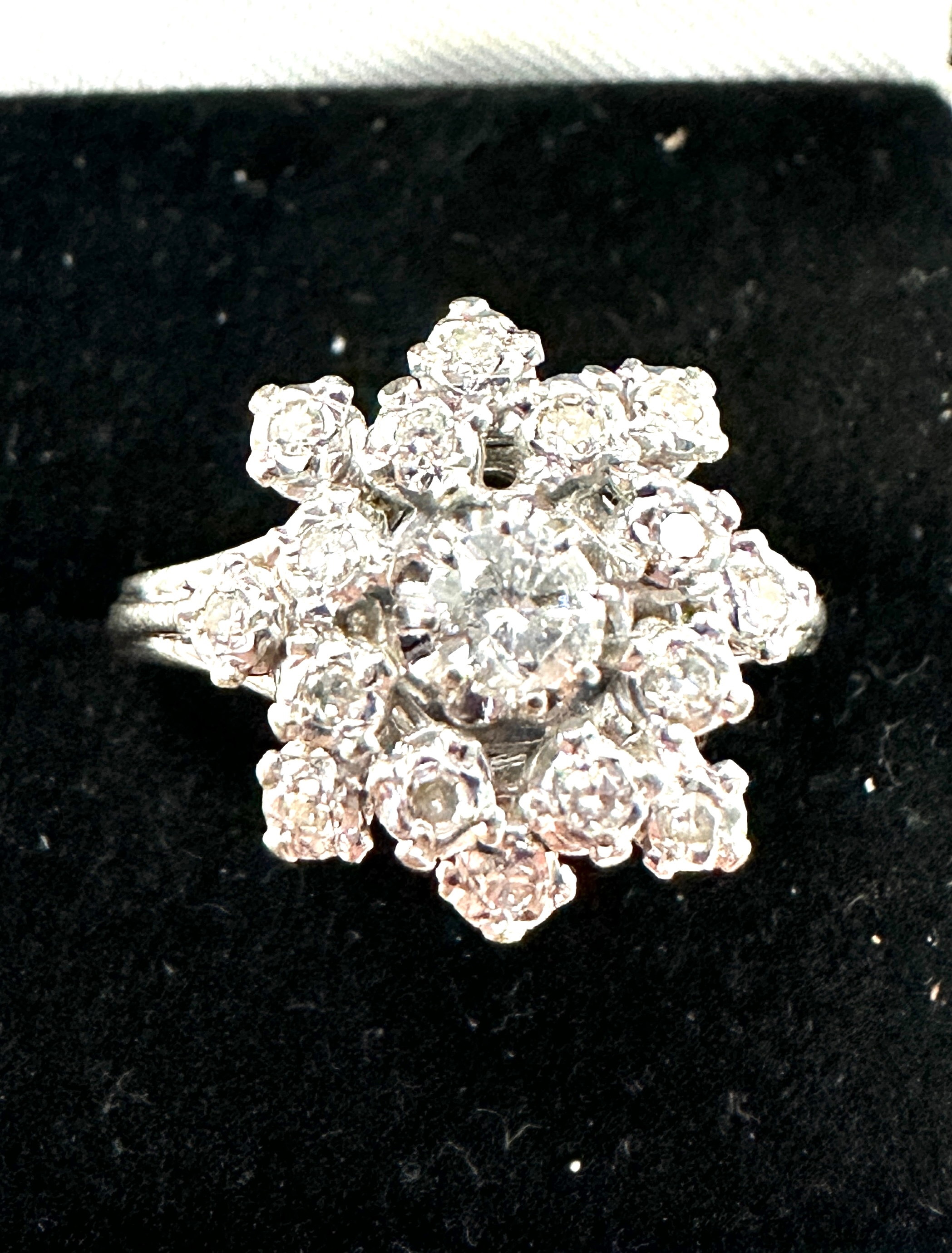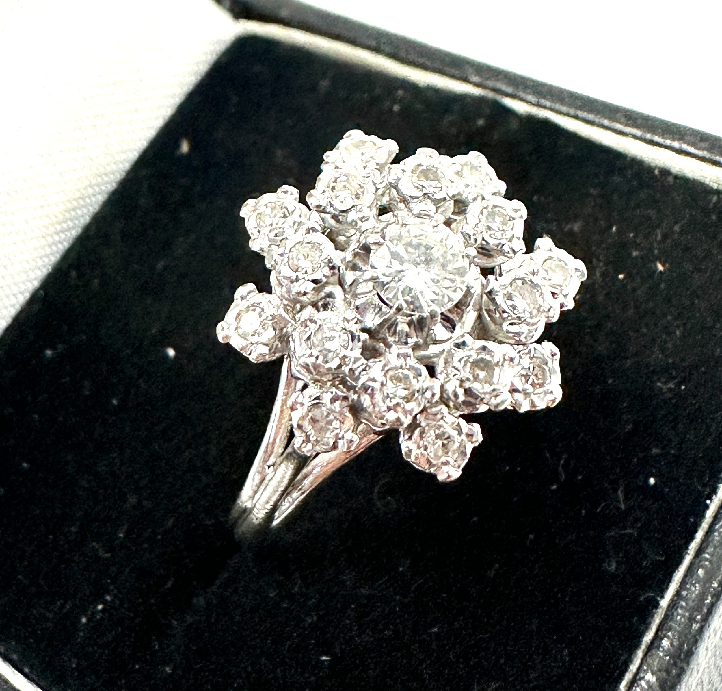 Vintage 18ct white gold Diamond cluster ring . weight 5.3g est 0.60 ct diamonds