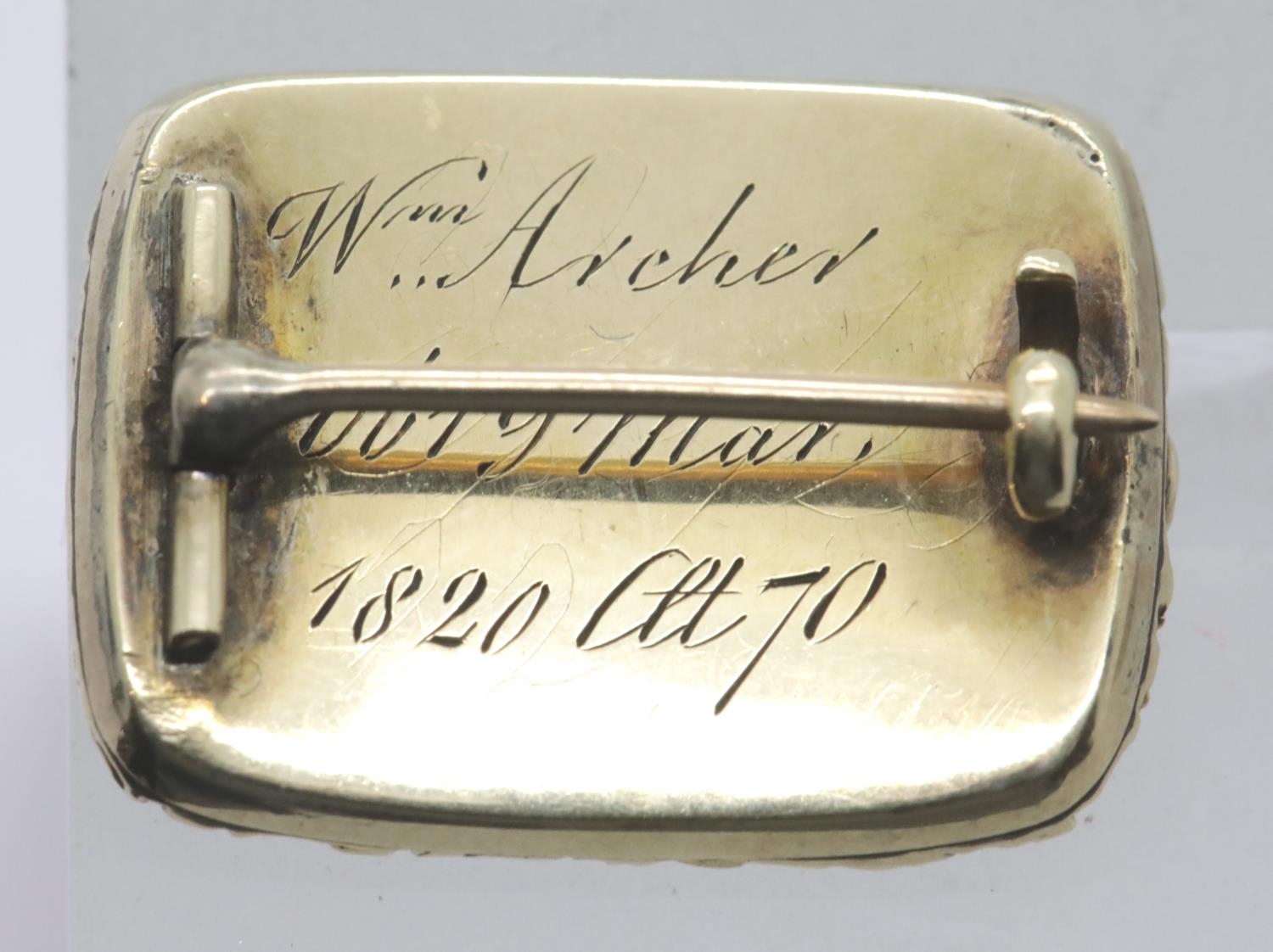 Antique Georgian gold (presumed 18ct) enamelled mourning brooch, dated 1820, 4.6g. P&P Group 1 (£14+VAT for the first lot and £1+VAT for subsequent lots)
