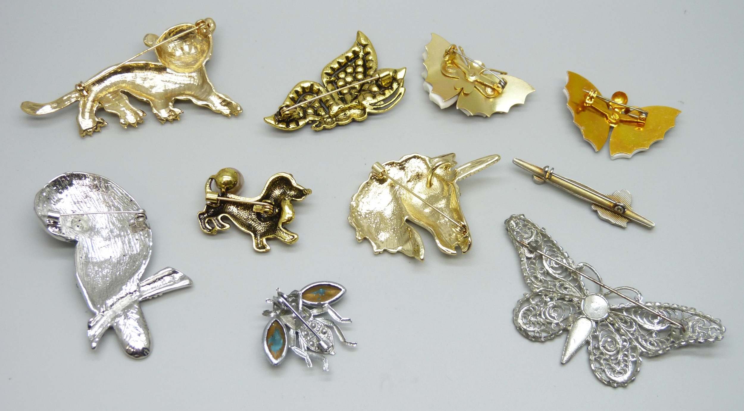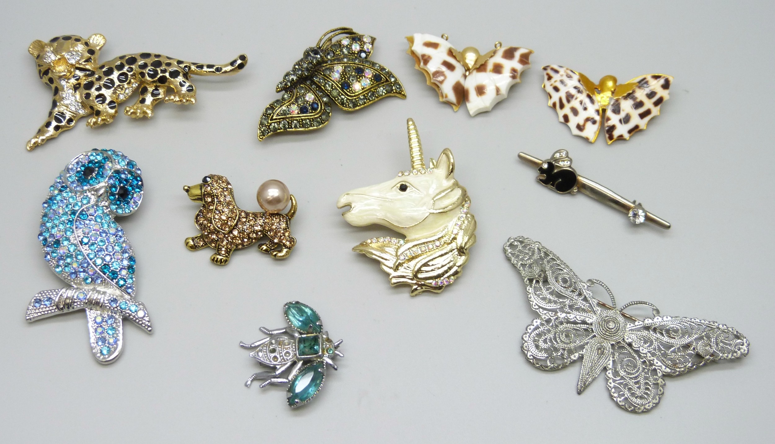 A collection of ten costume animal brooches