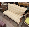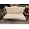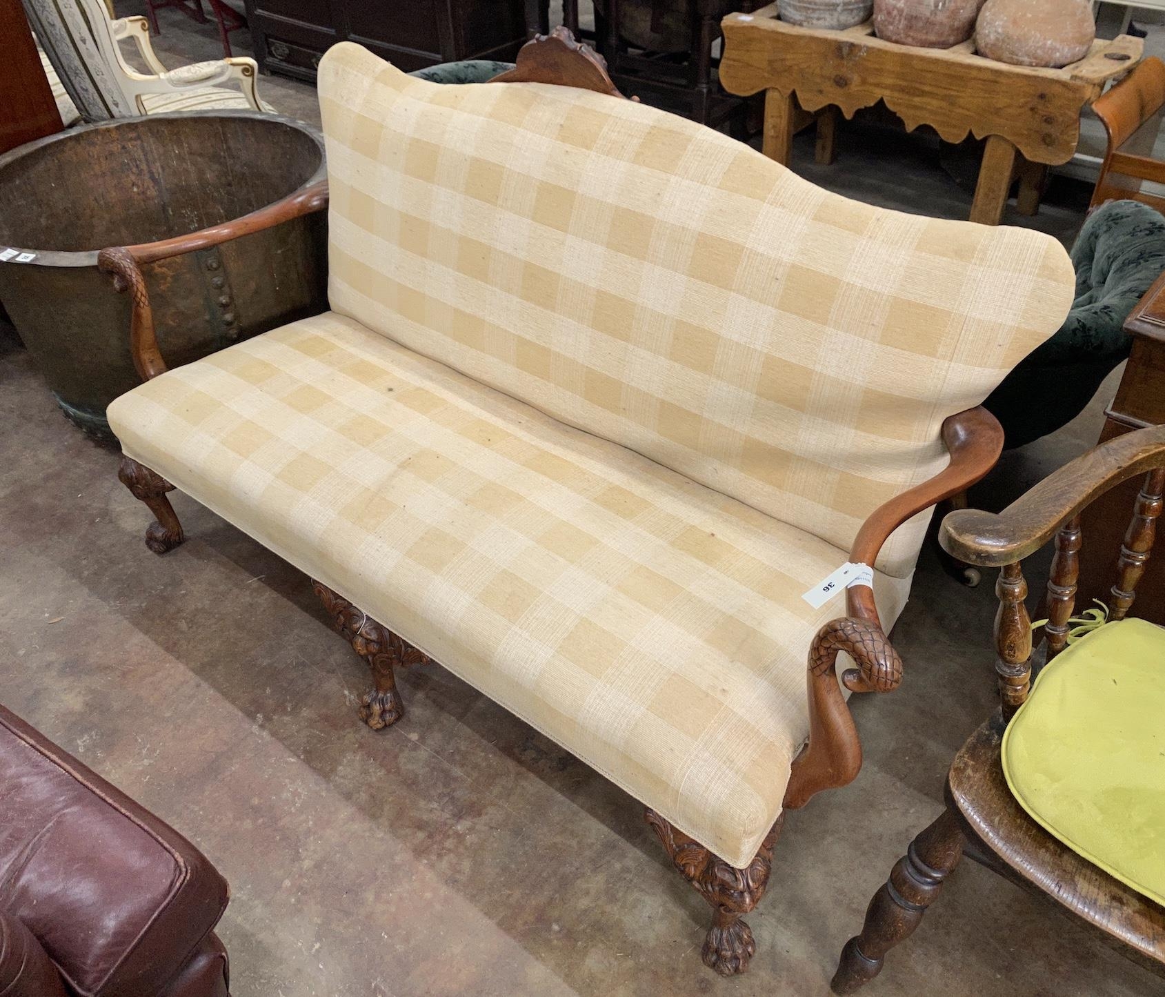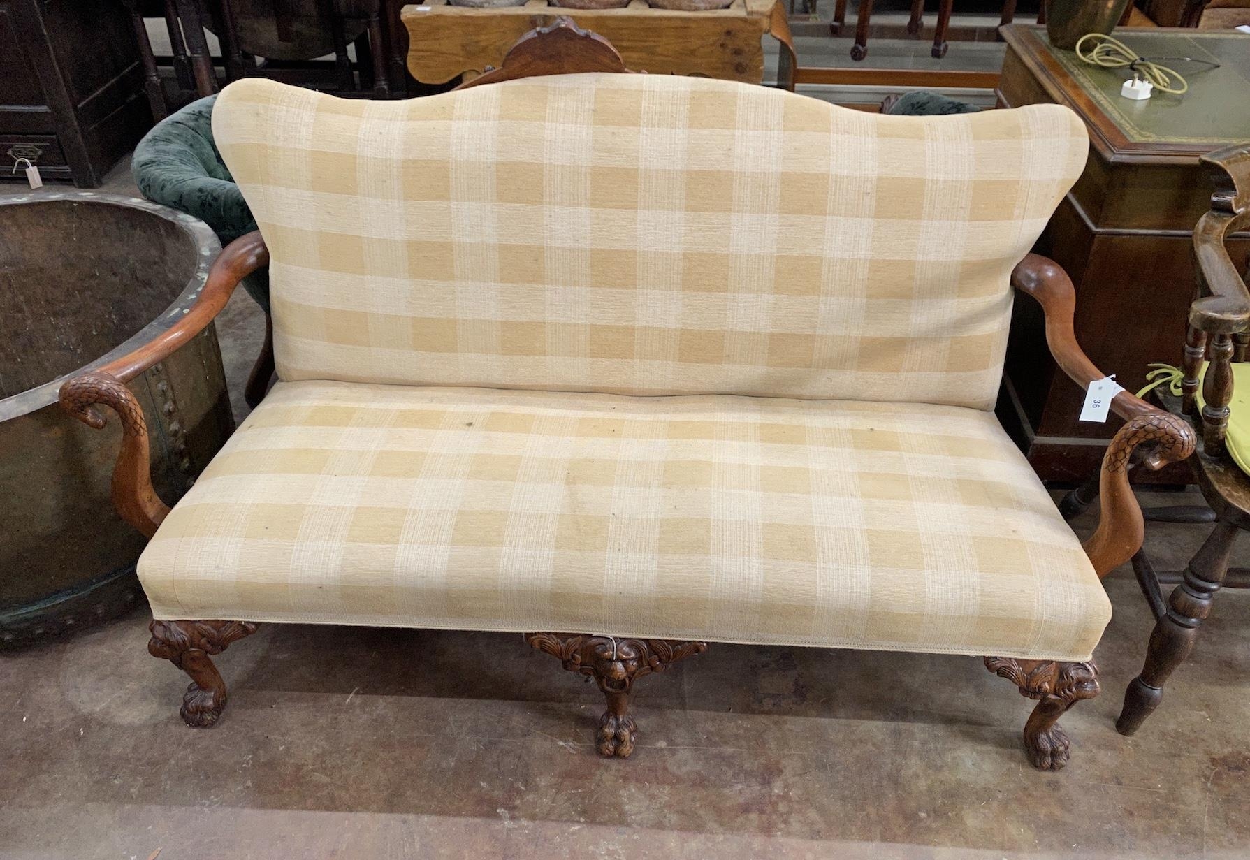 An 18th century style mahogany two seater settee with scroll swan neck arms, width 160cm, depth 60cm, height 86cm