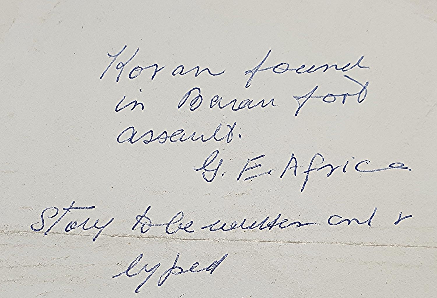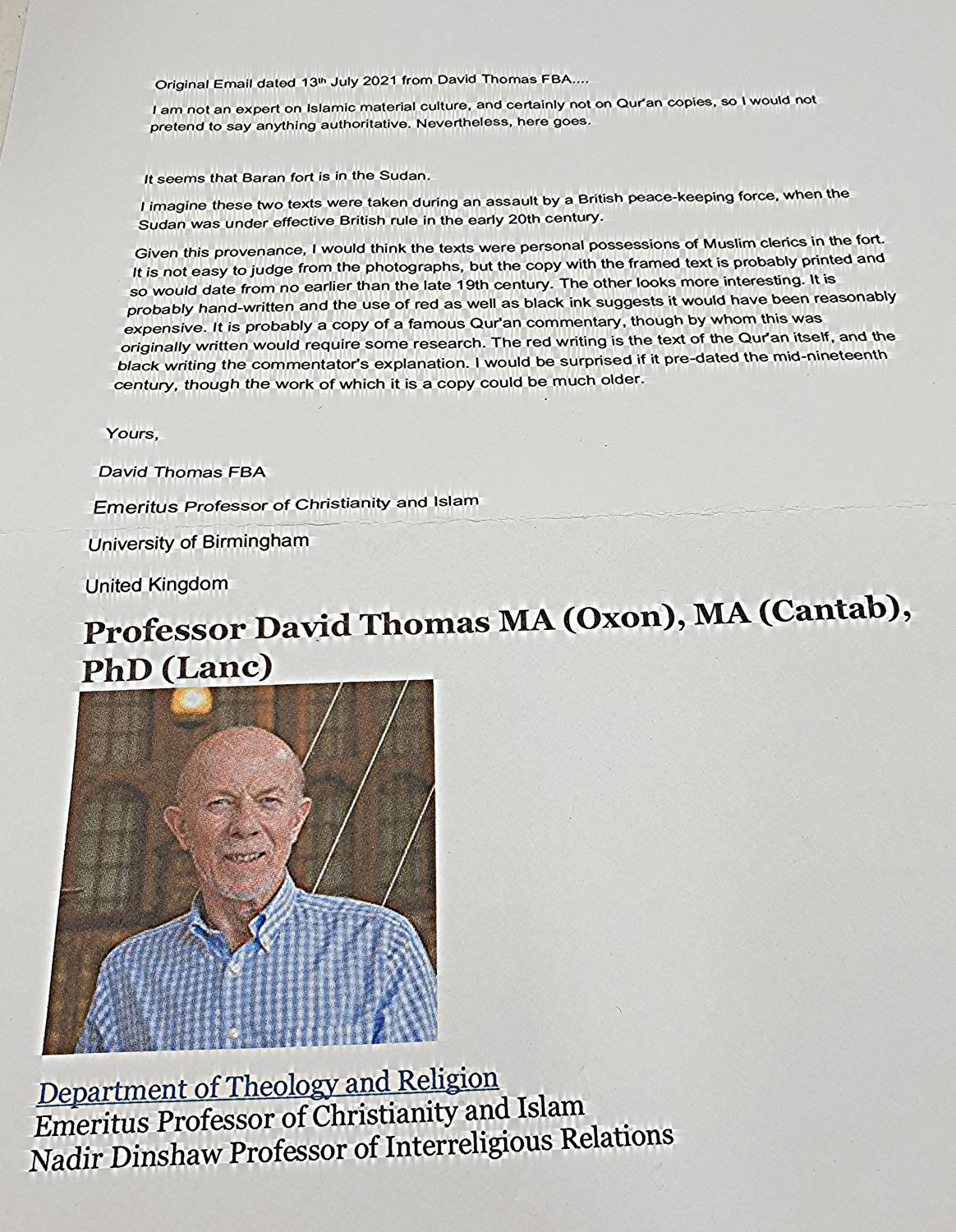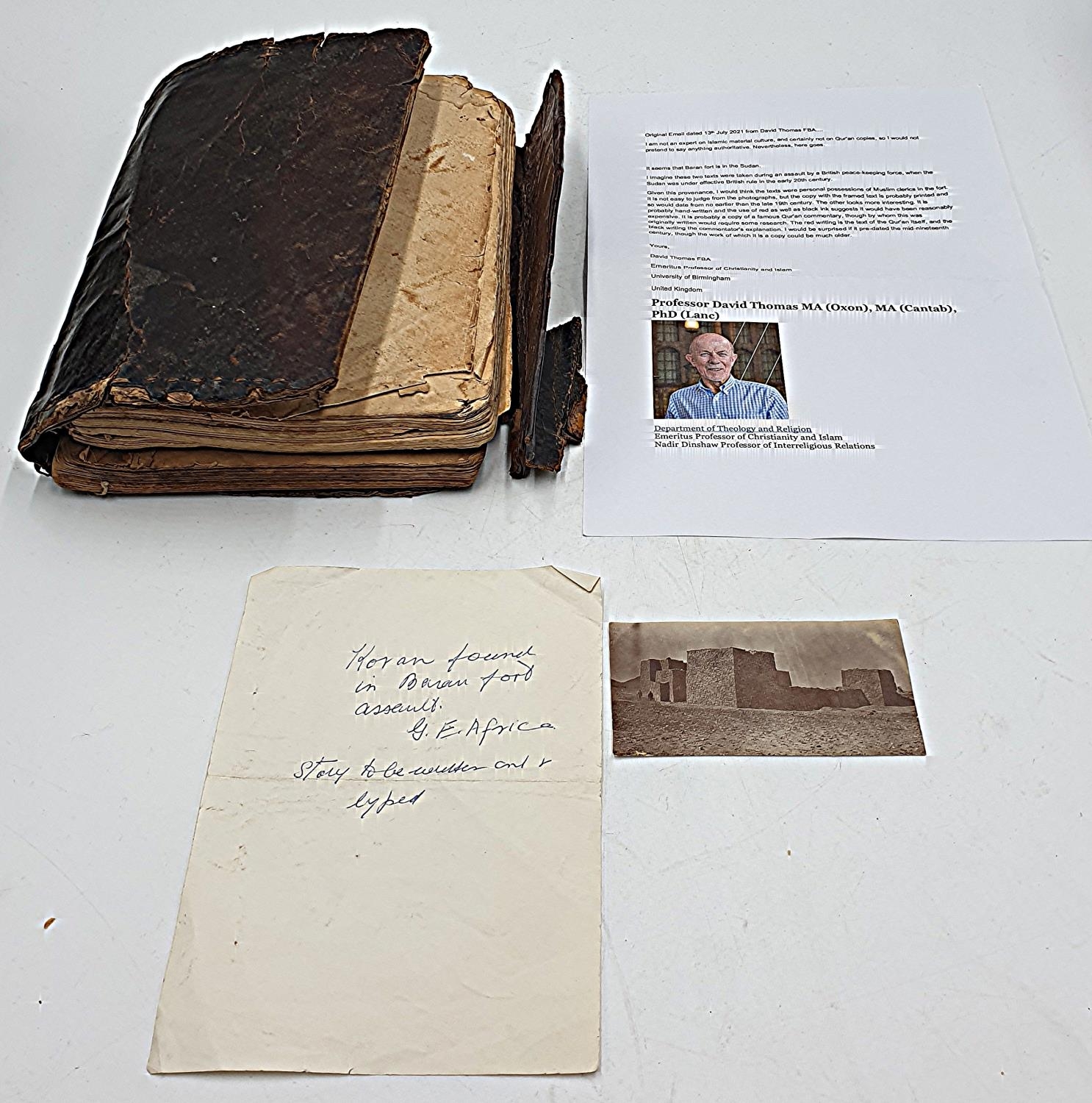 PRESENTED AS A QURAN With SOME VERY INTERESTING PROVENANCE WHICH STATES THE QURAN WAS BELIEVED TO HAVE BEEN TAKEN IN THE ASSUALT ON FORT BARAN BY A BRITISH PEACE-KEEPING FORCE,WHEN THE SUDAN WAS UNDER EFFECTIVE BRITISH RULE IN THE EARLY 20th CENTURY. (Please Note This Lot WILL NOT BE PACKED OR SHIPPED...PICK UP ONLY !!!!)