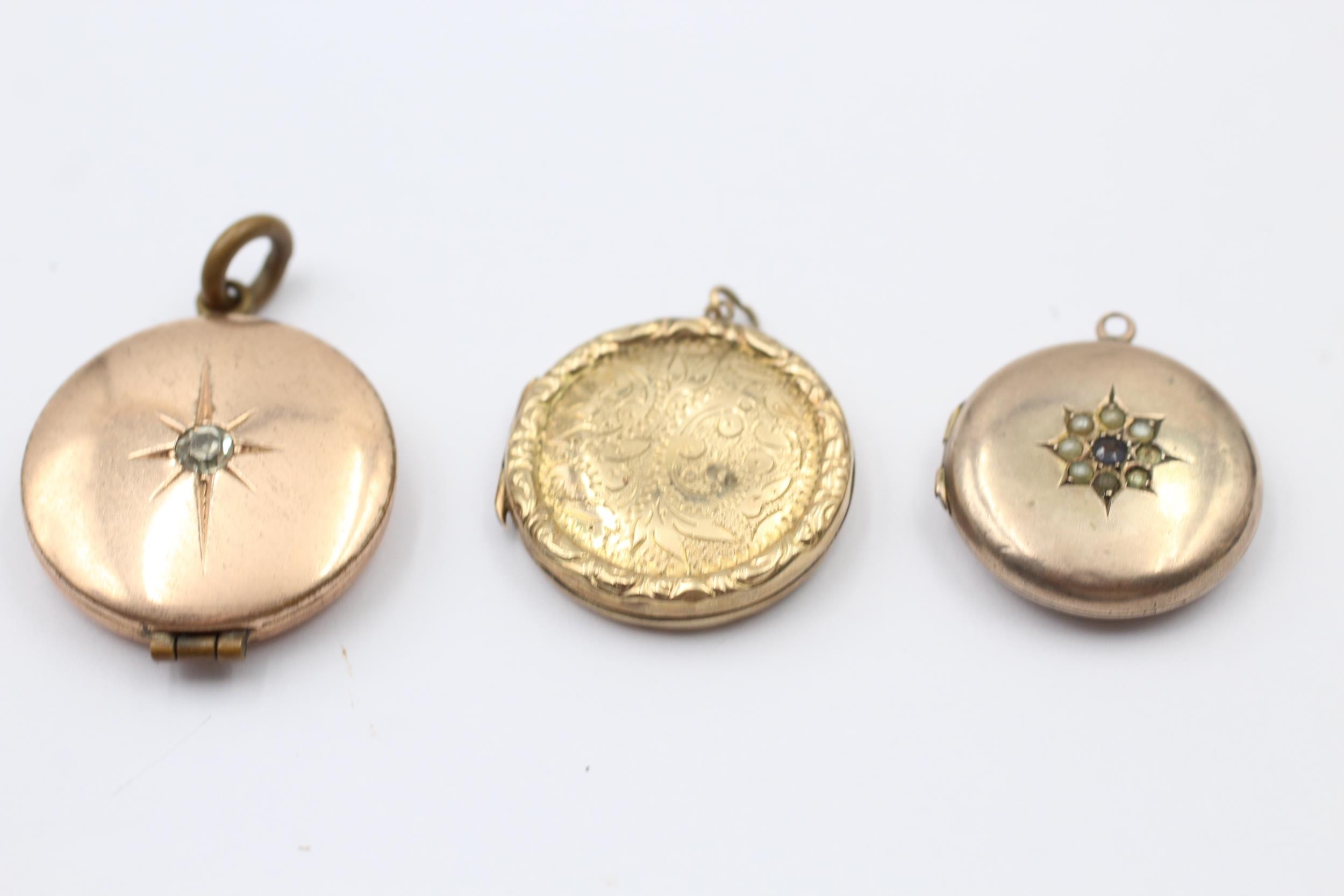 3 X 9ct Back & Front Gold Vintage Round Lockets Inc. Seed Pearls & Paste - As Seen (17.6g)