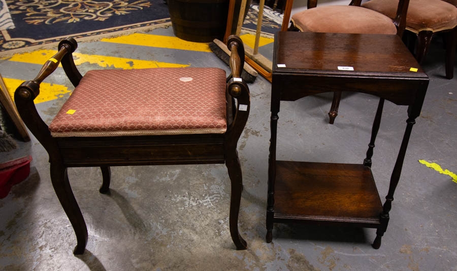 2 TIER OAK TABLE & PIANO STOOL