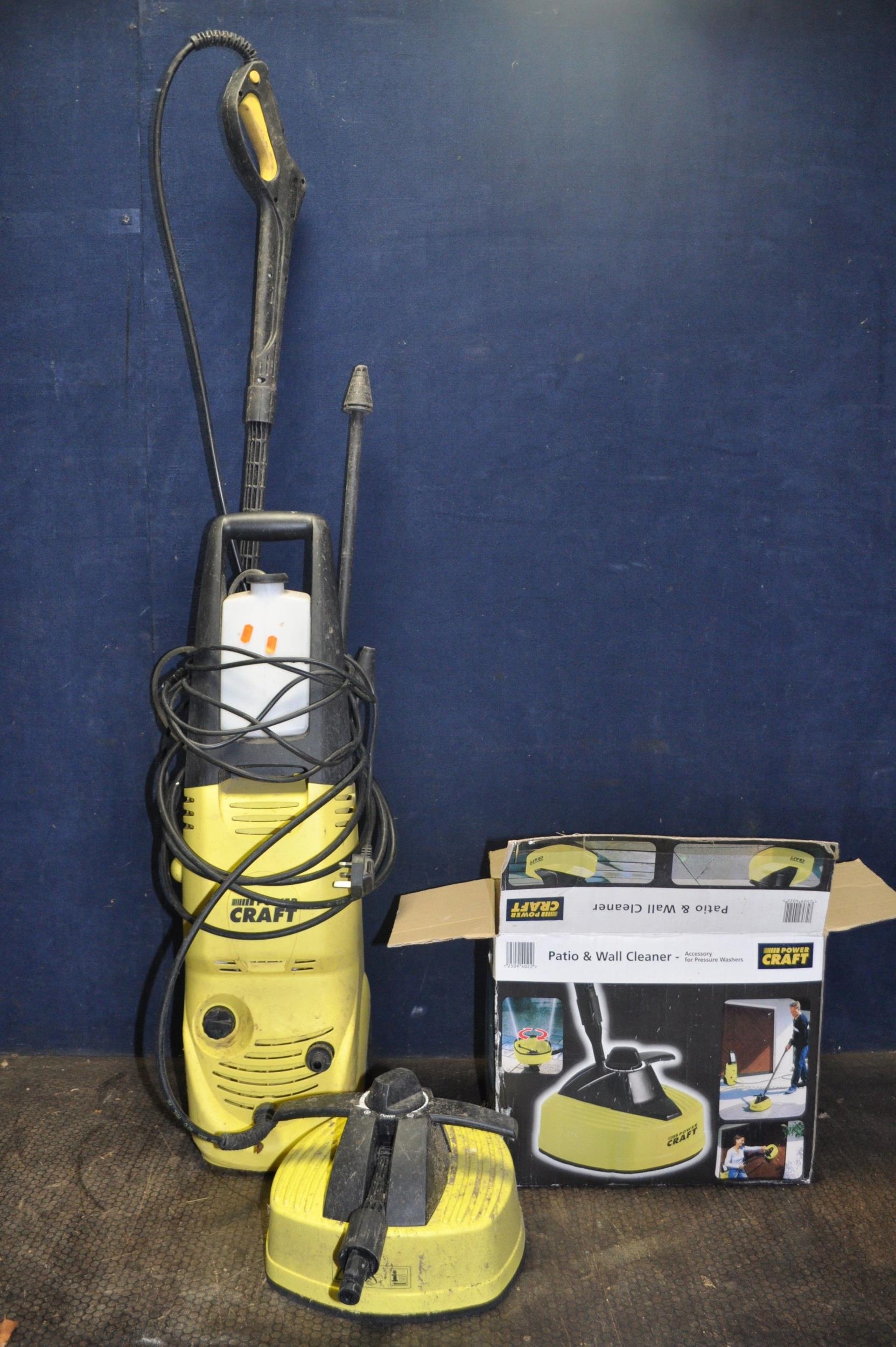 A POWERCRAFT PRESSURE WASHER with one lance, three extension, car brush, four nozzles and a patio head (PAT pass and working)