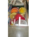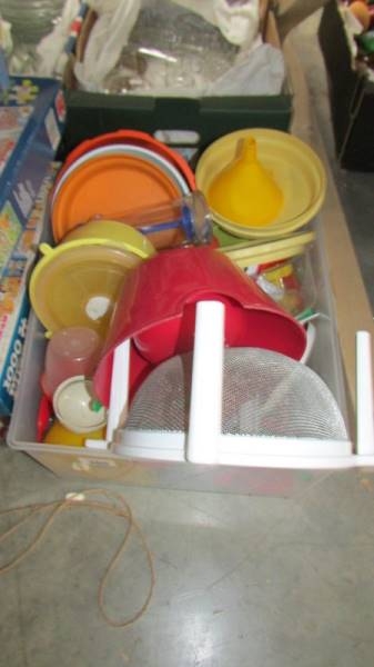 A box of plastic kitchen ware. (Collect only)