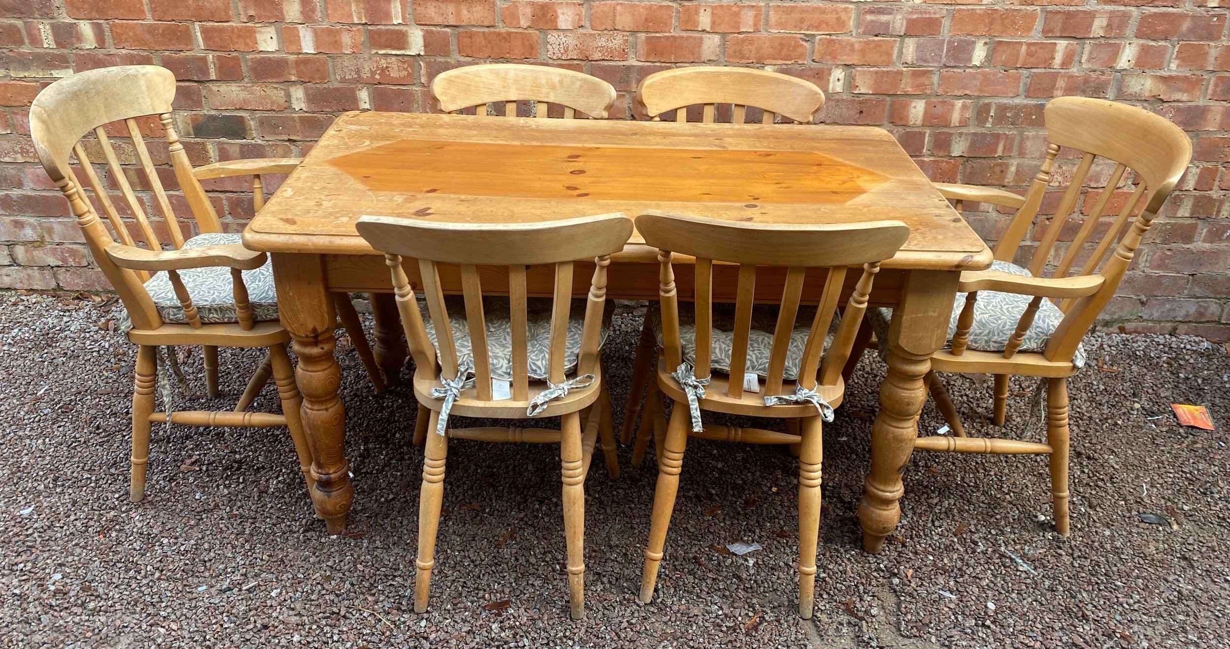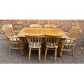 VICTORIAN STYLE PINE FARMHOUSE KITCHEN TABLE AND SLATBACK DINING CHAIRS