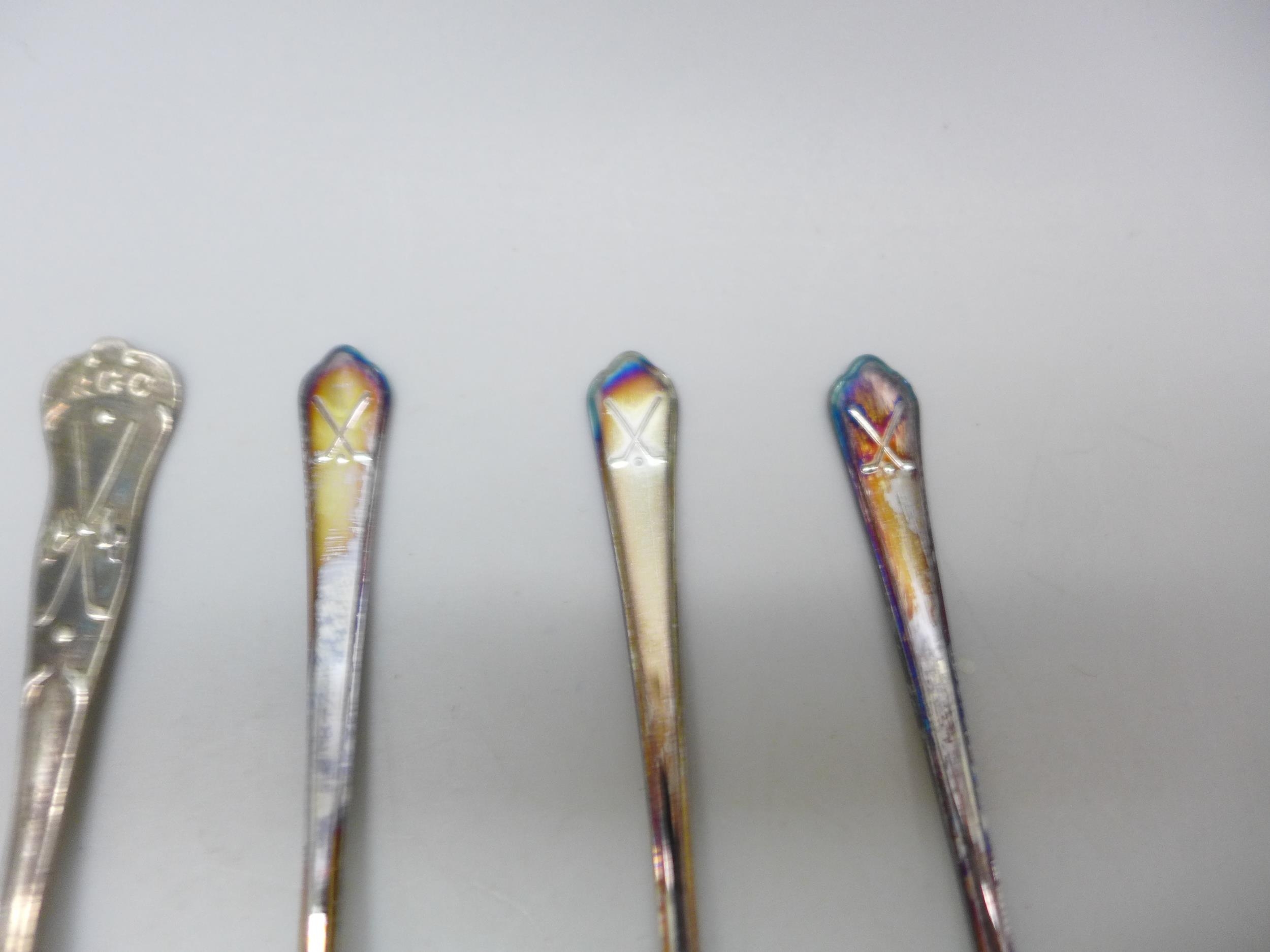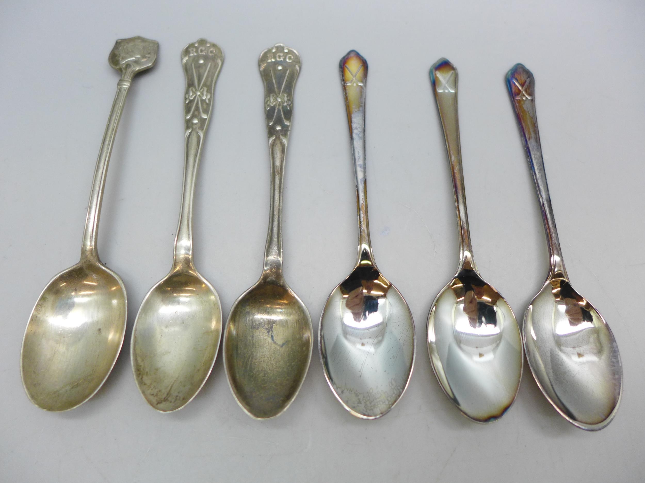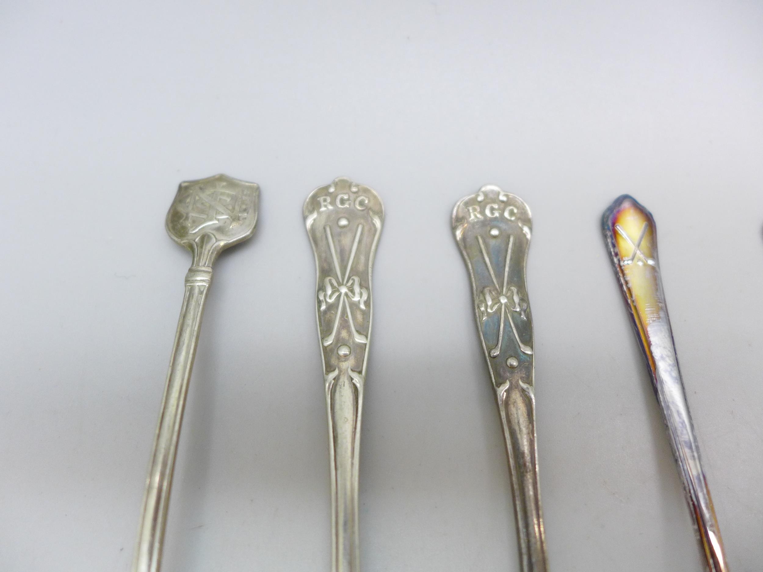 A collection of silver golf related spoons, 76g