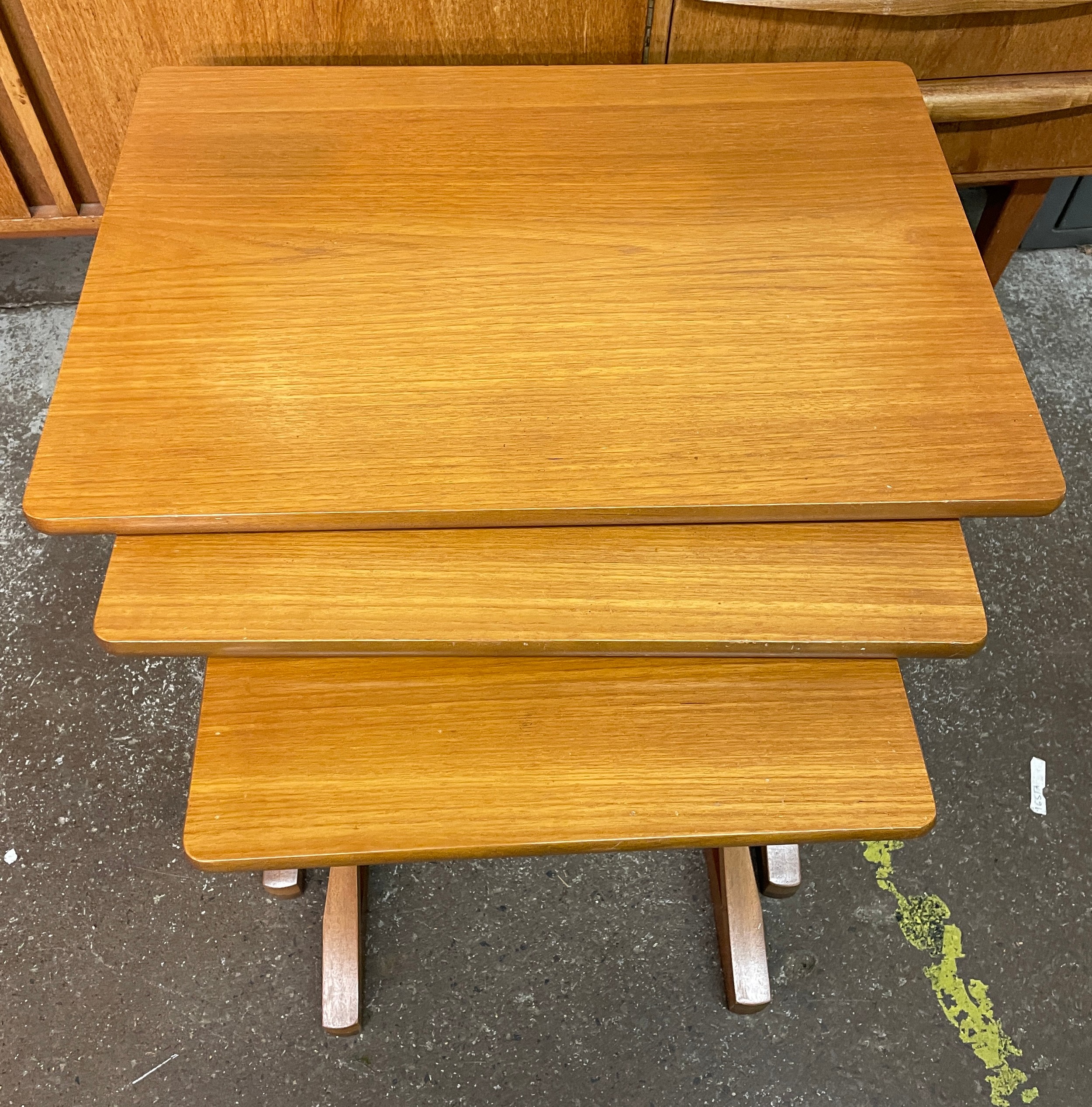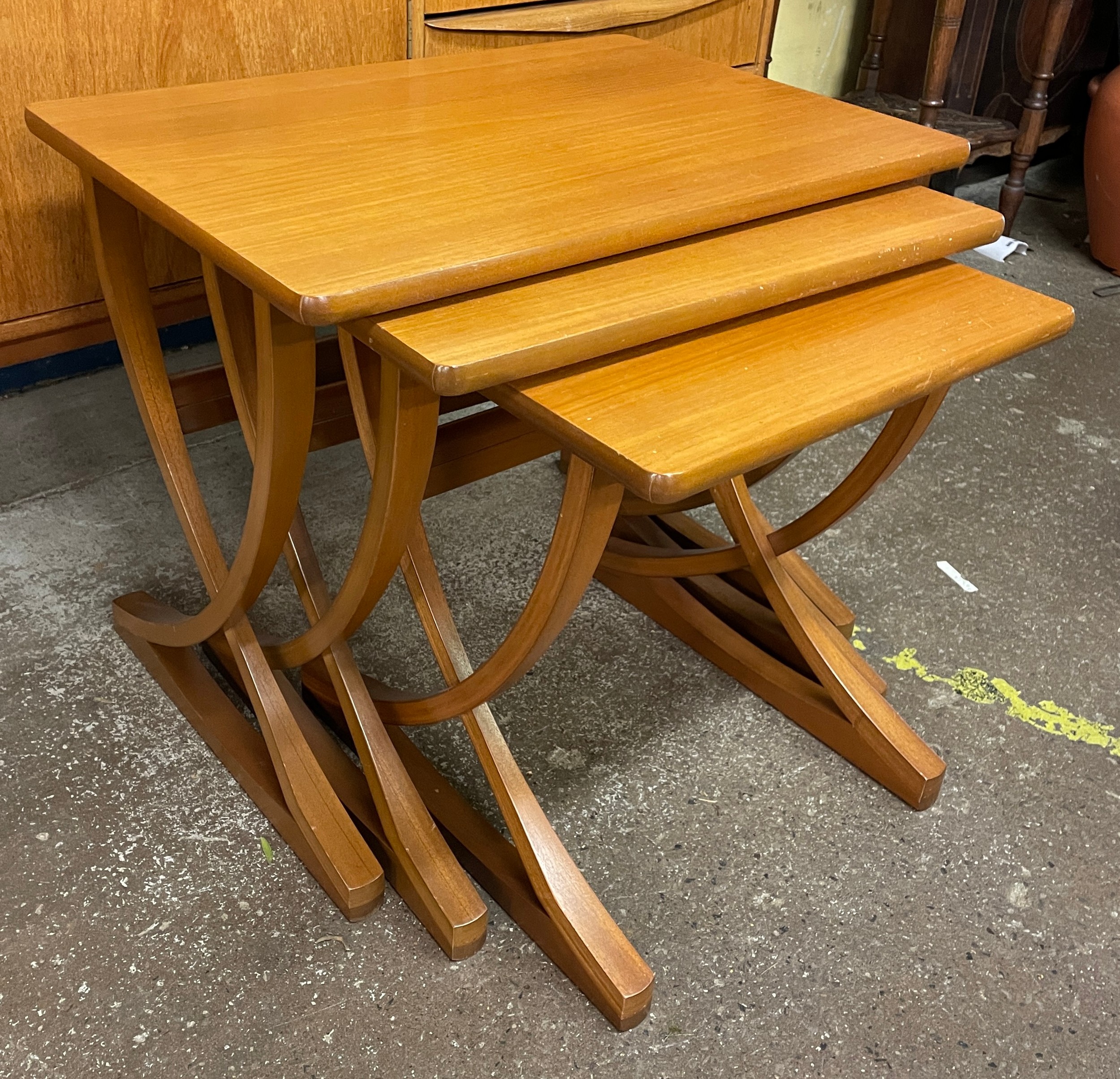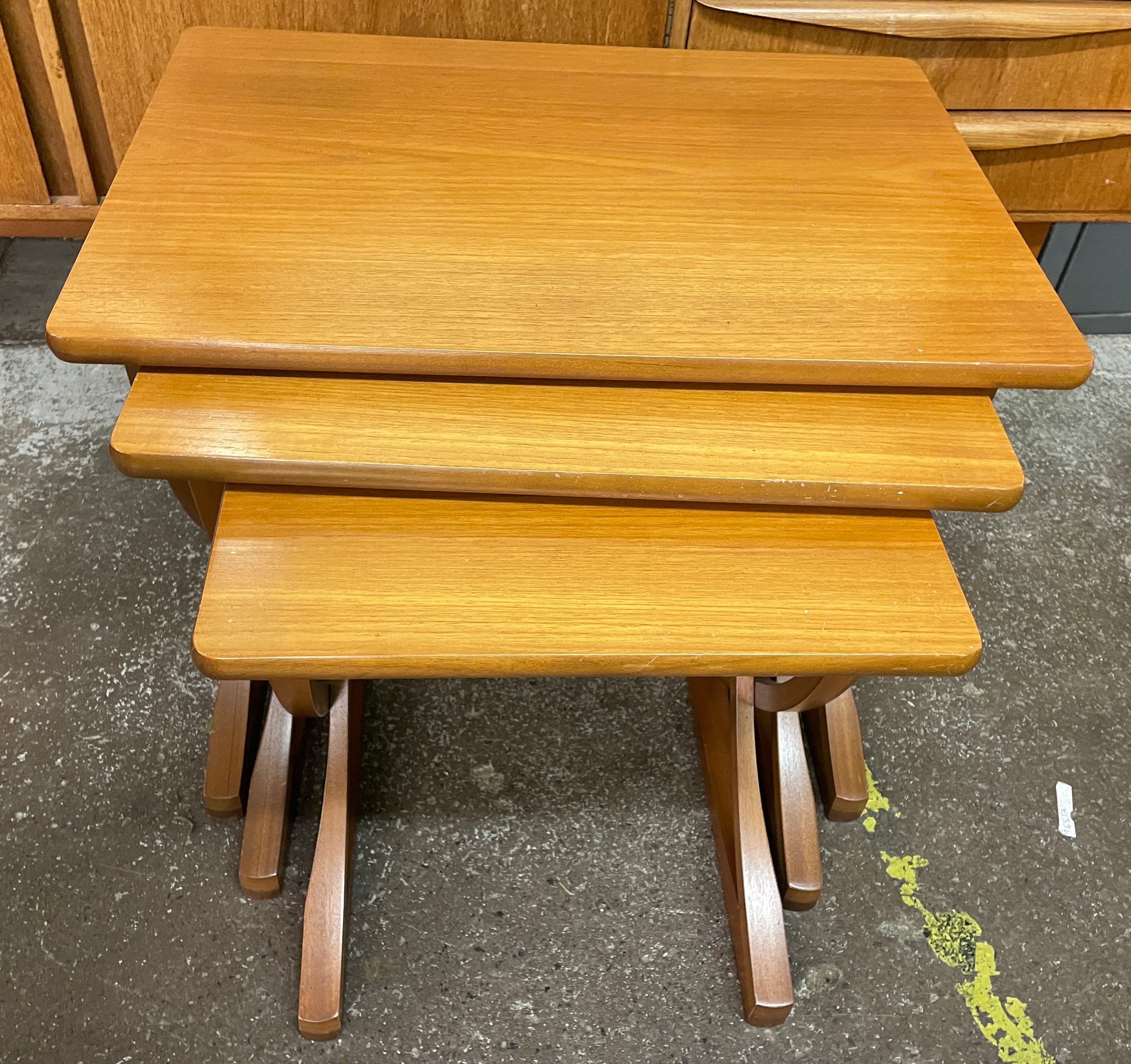 NEST OF THREE NATHAN TEAK “CITADEL” TABLES