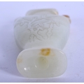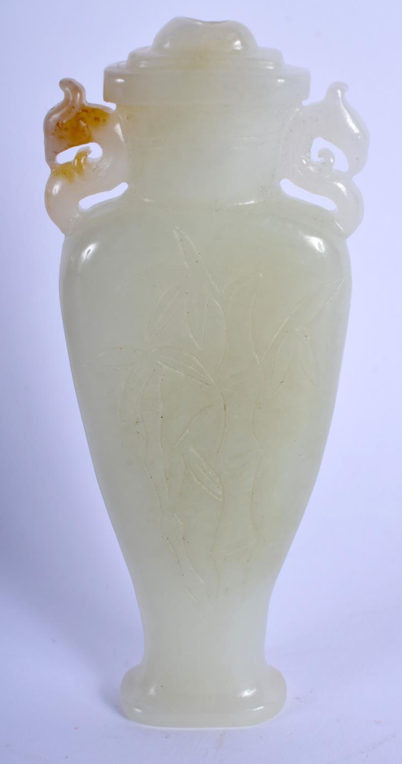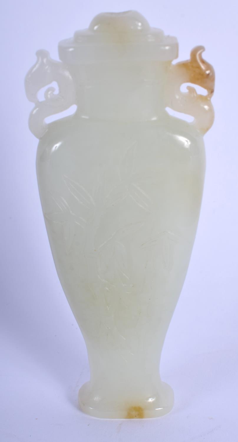 AN UNUSUAL EARLY 20TH CENTURY CHINESE CARVED JADE VASE Late Qing/Republic, decorated with foliage. 8.5 cm x 3.5 cm.