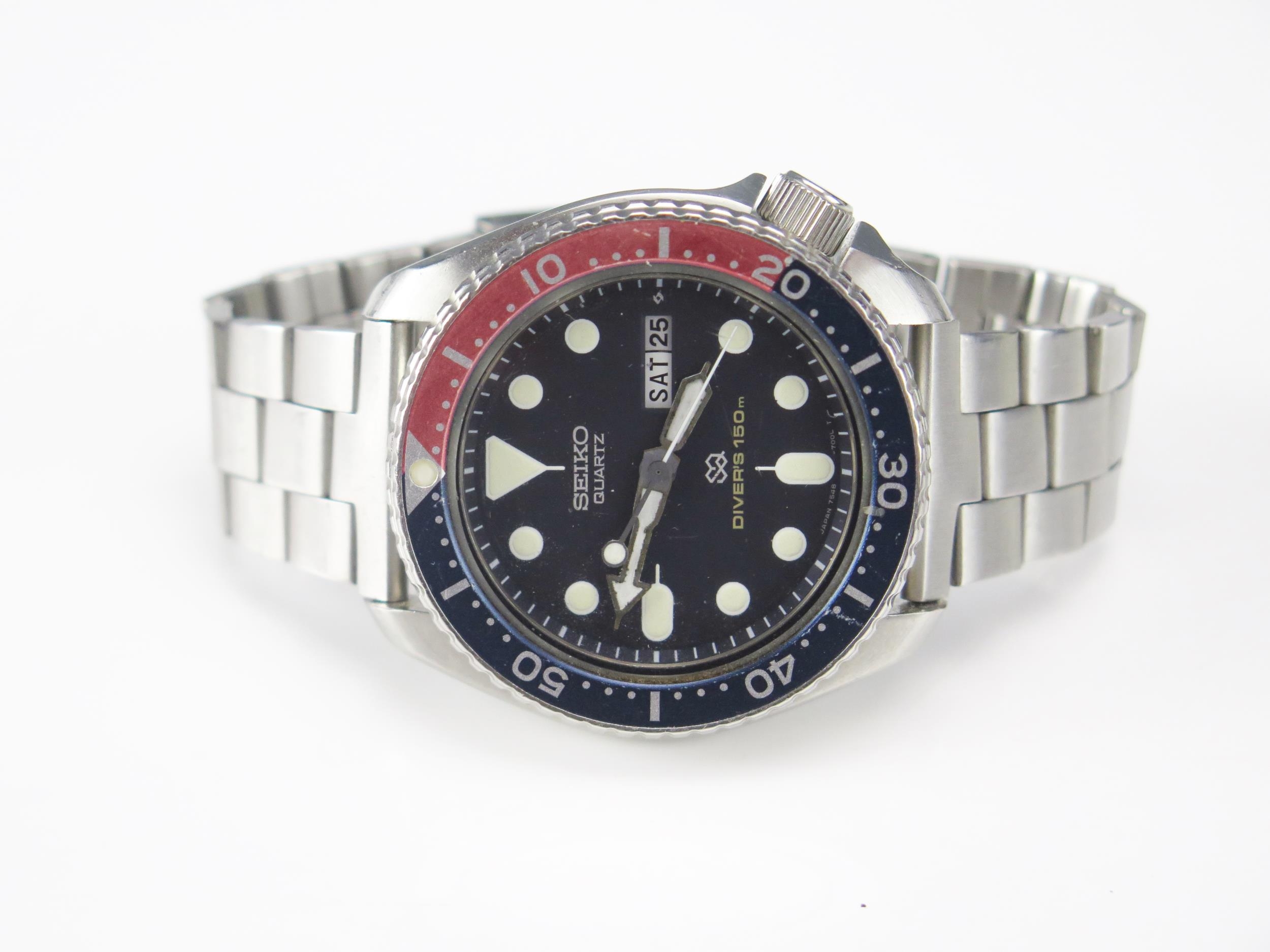 A SEIKO 'Pepsi' 150M Diver's Watch, 42.2mm stainless steel case. Needs battery