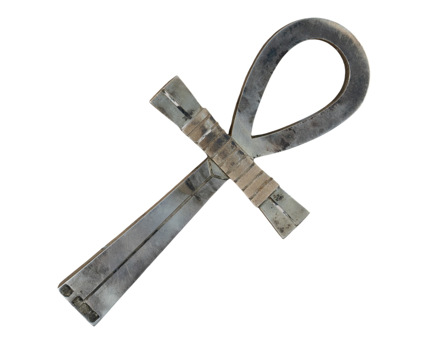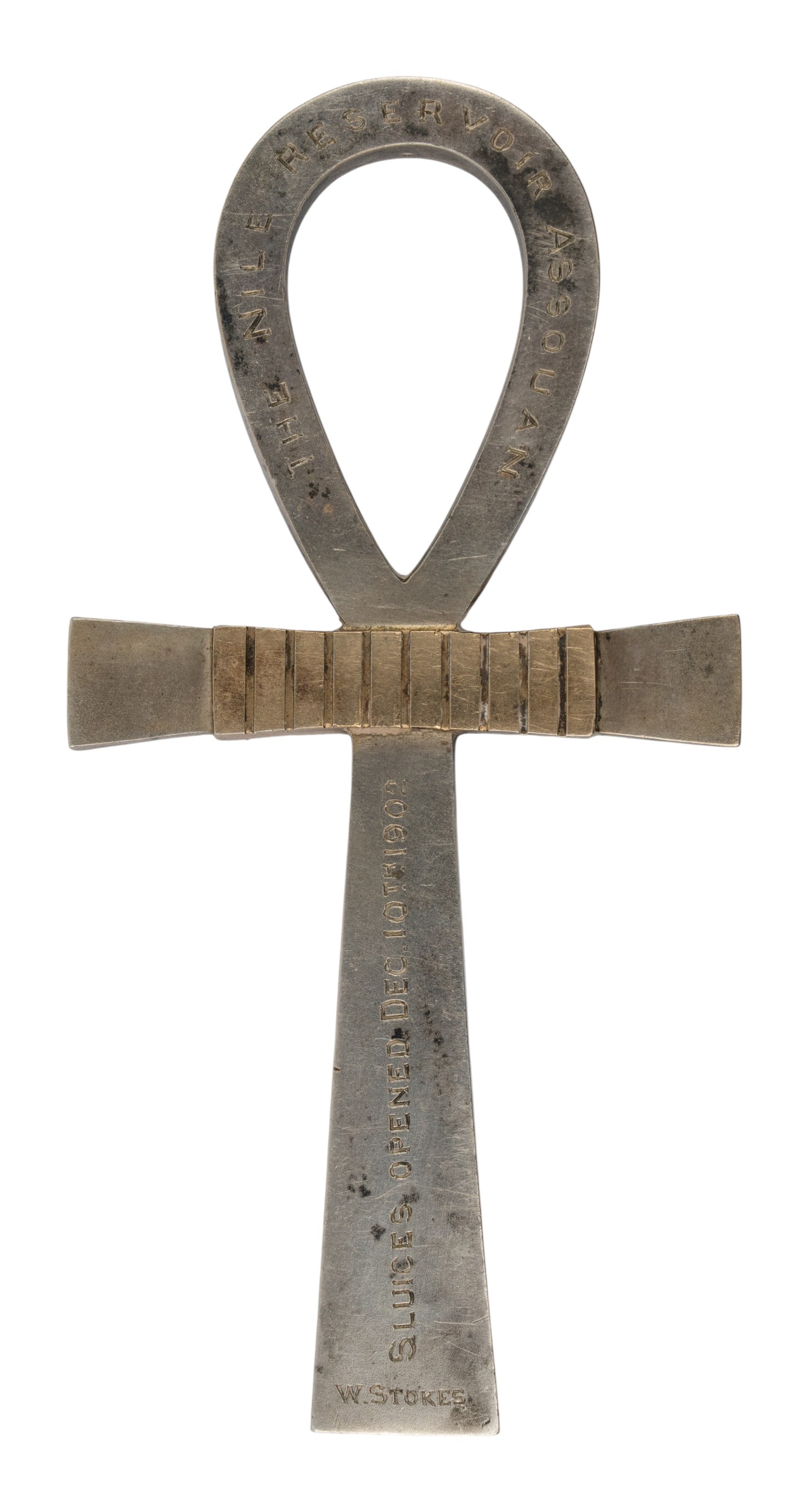 An unusual ankh silver pendant commemorating the opening of the Aswan Low Dam, 1902, by Lambert & Co.