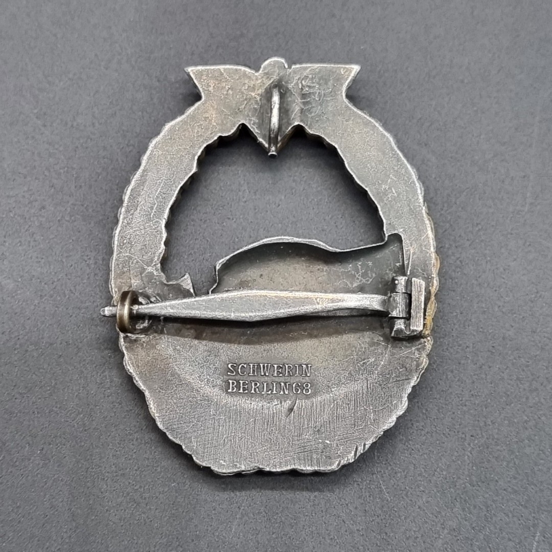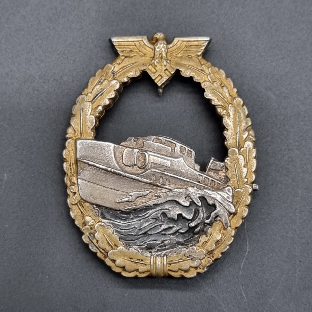 A WWII German Kriegsmarine E-Boat badge, first pattern, by Schwerin, Berlin 68, 57mm high.