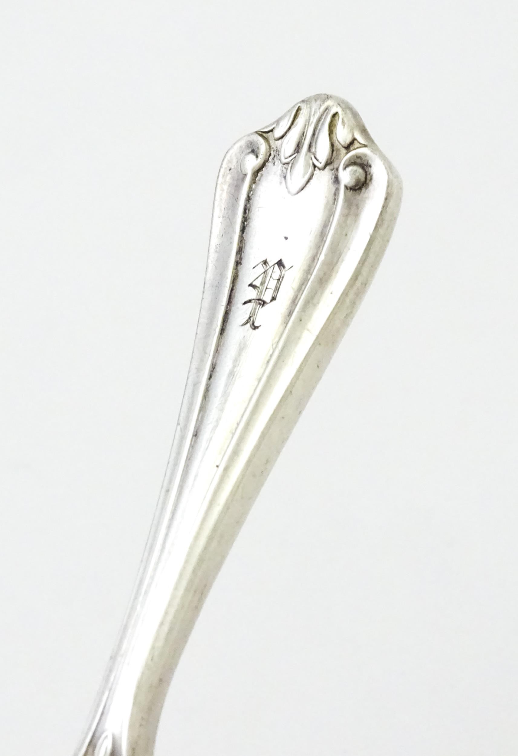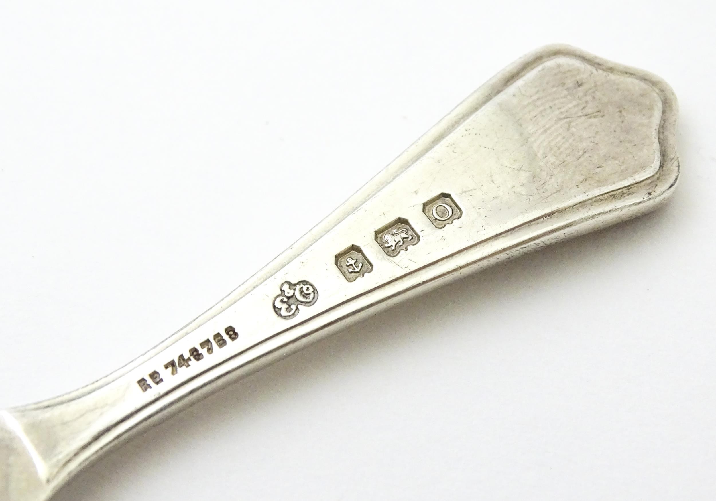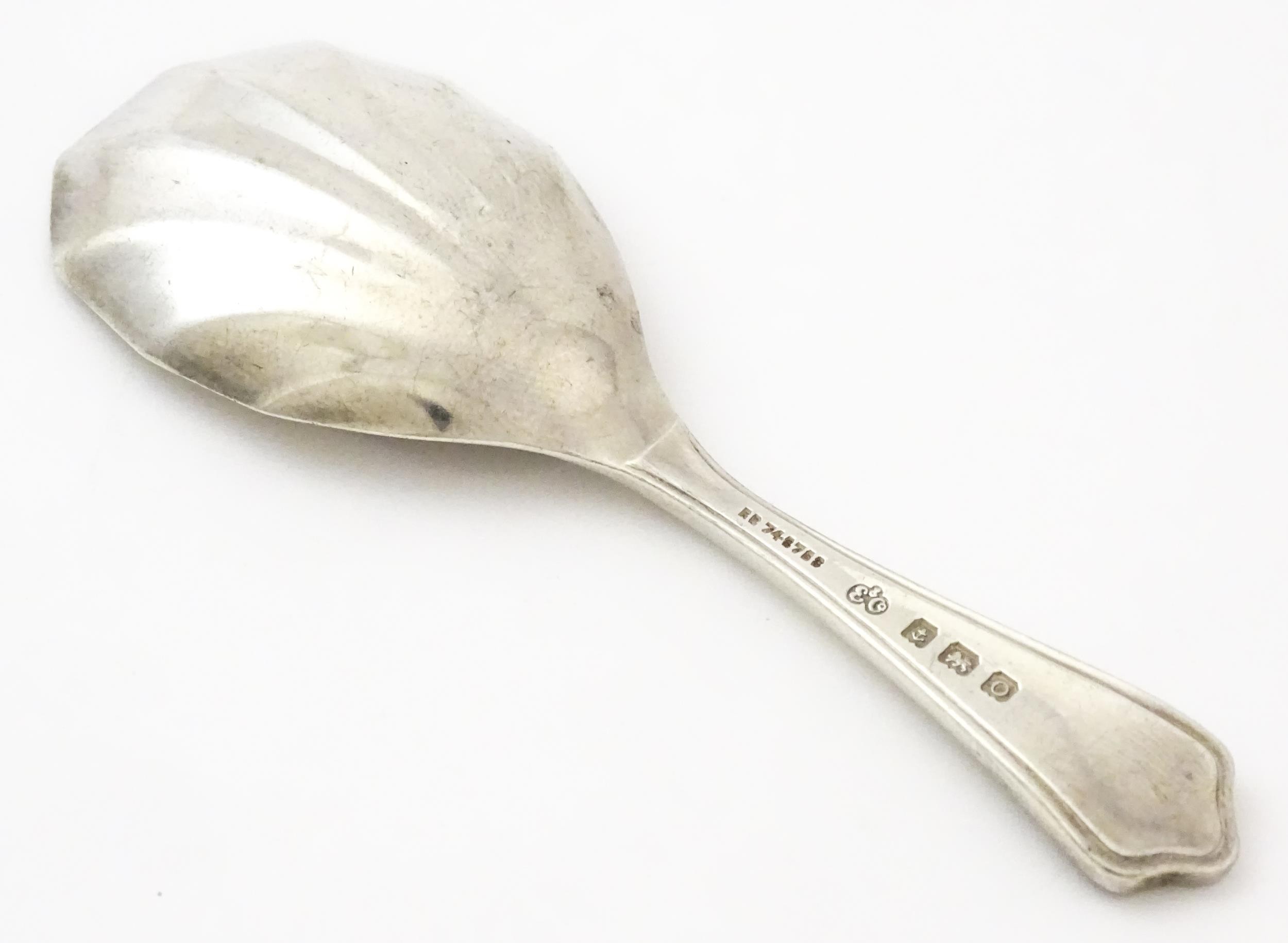 A silver caddy spoon with shell formed bowl, hallmarked Birmingham 1913, maker Elkington & Co Ltd. Approx. 4" long