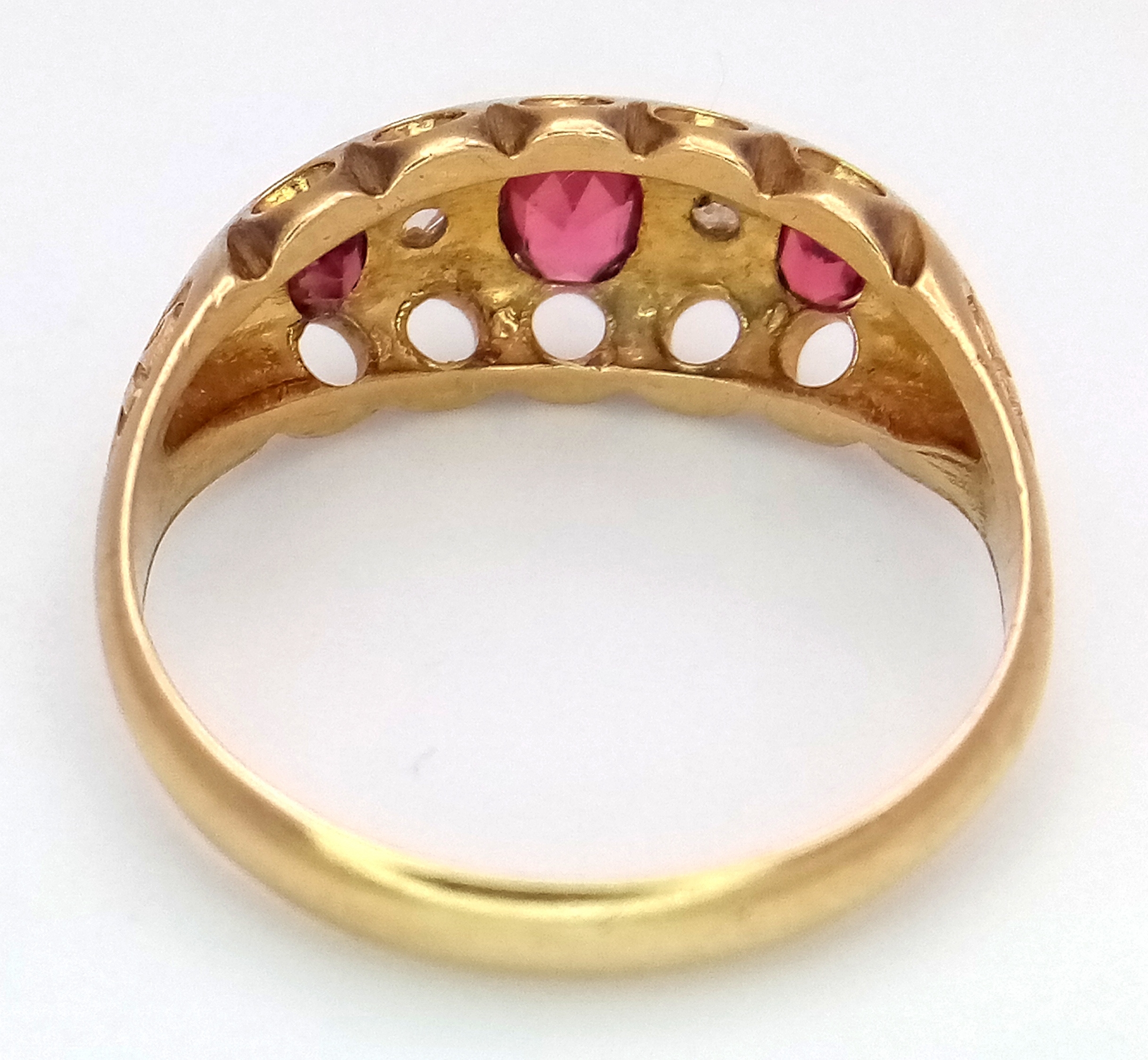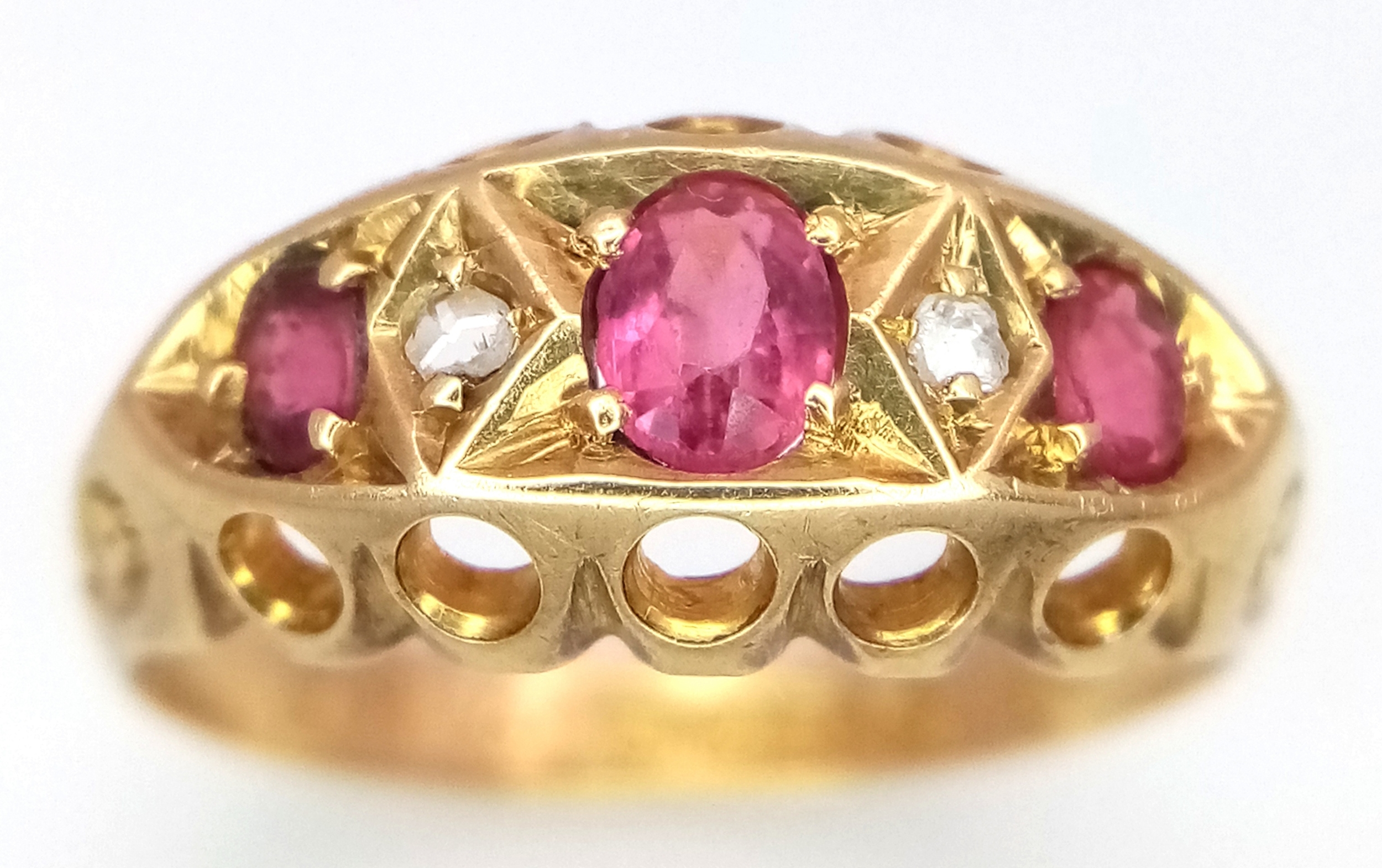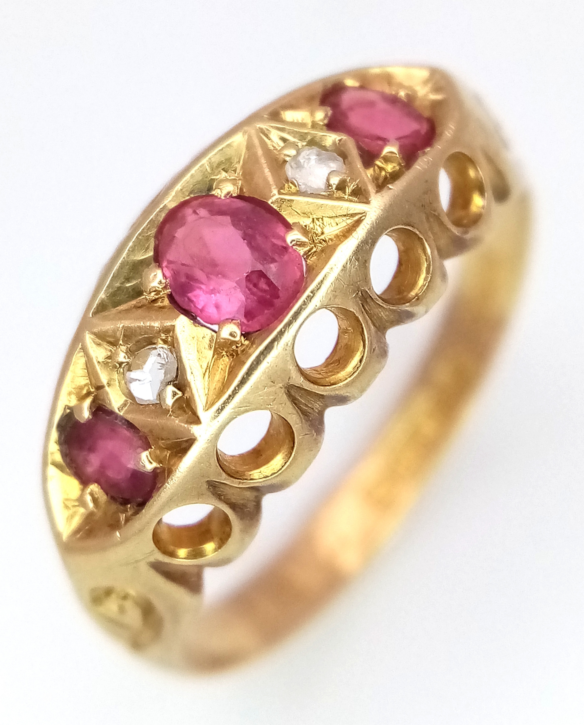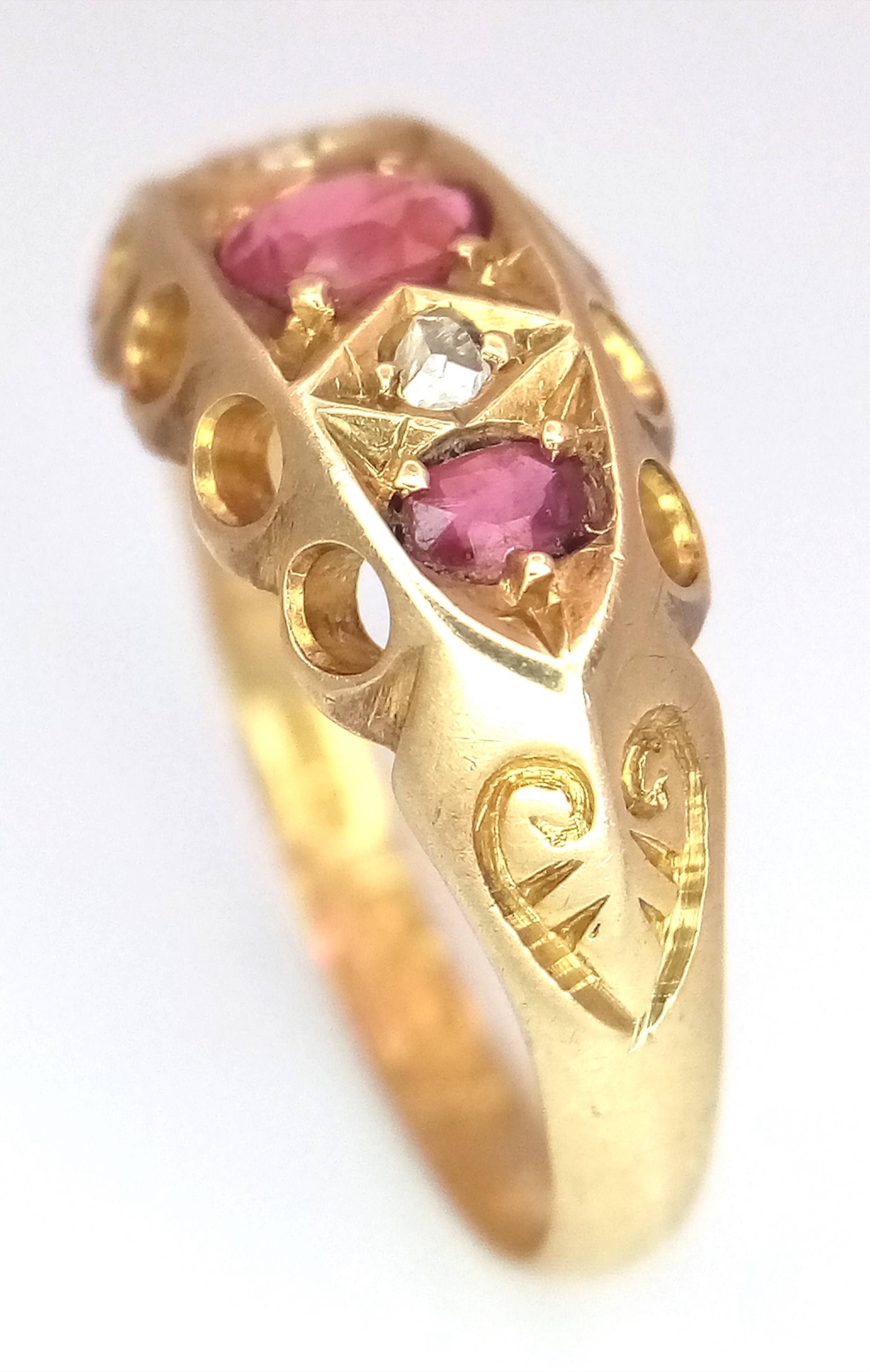 AN 18K YELLOW GOLD ANTIQUE DIAMOND AND RUBY RING. 3G. SIZE L. HALLMARKED BIRMINGHAM 1918. SC6080.