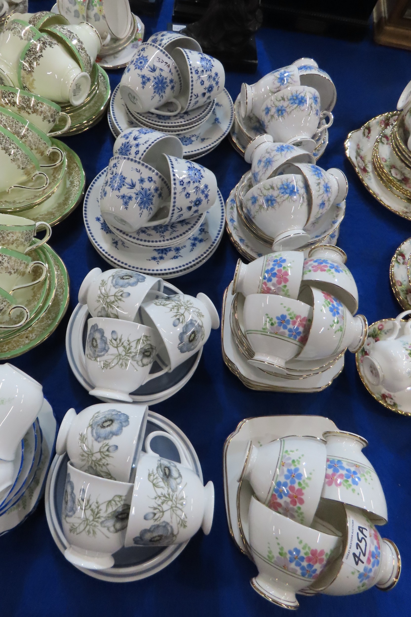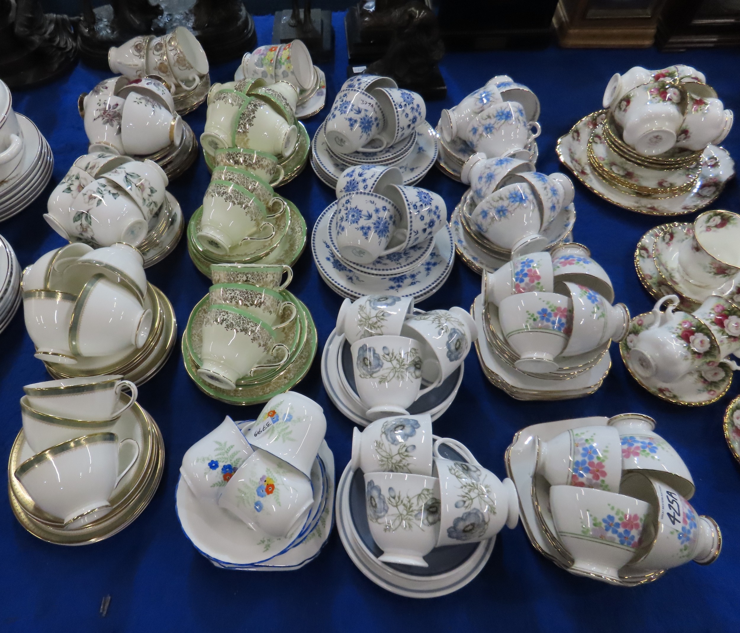 Assorted tea wares including Tuscan Love in the Mist, Susie Cooper Glen Mist, Royal Doulton Clarendon etc