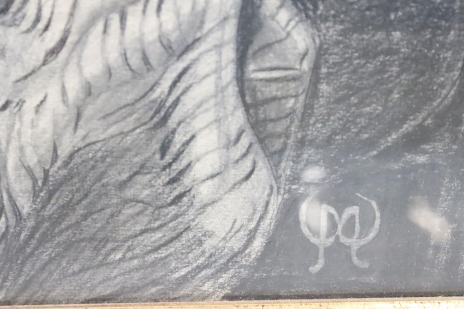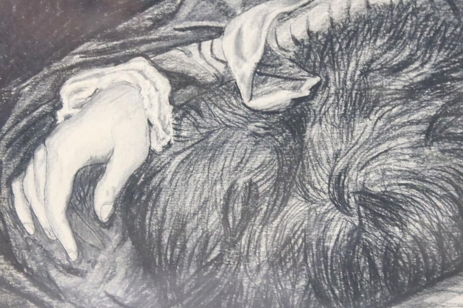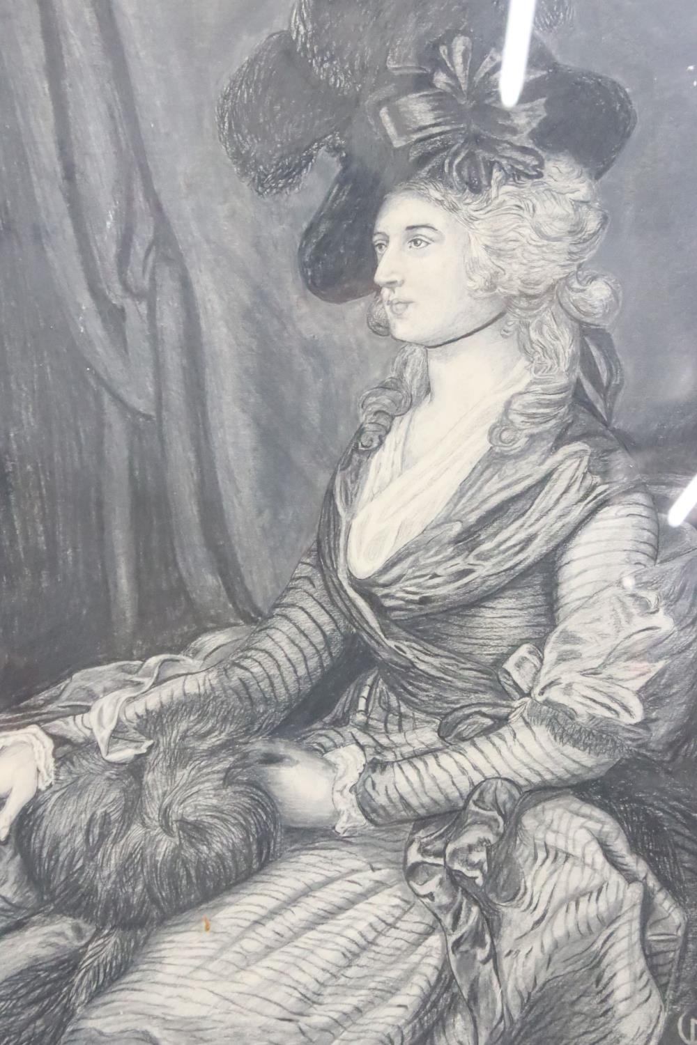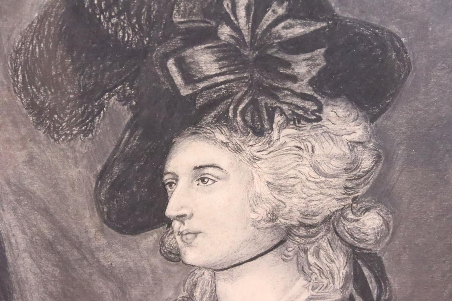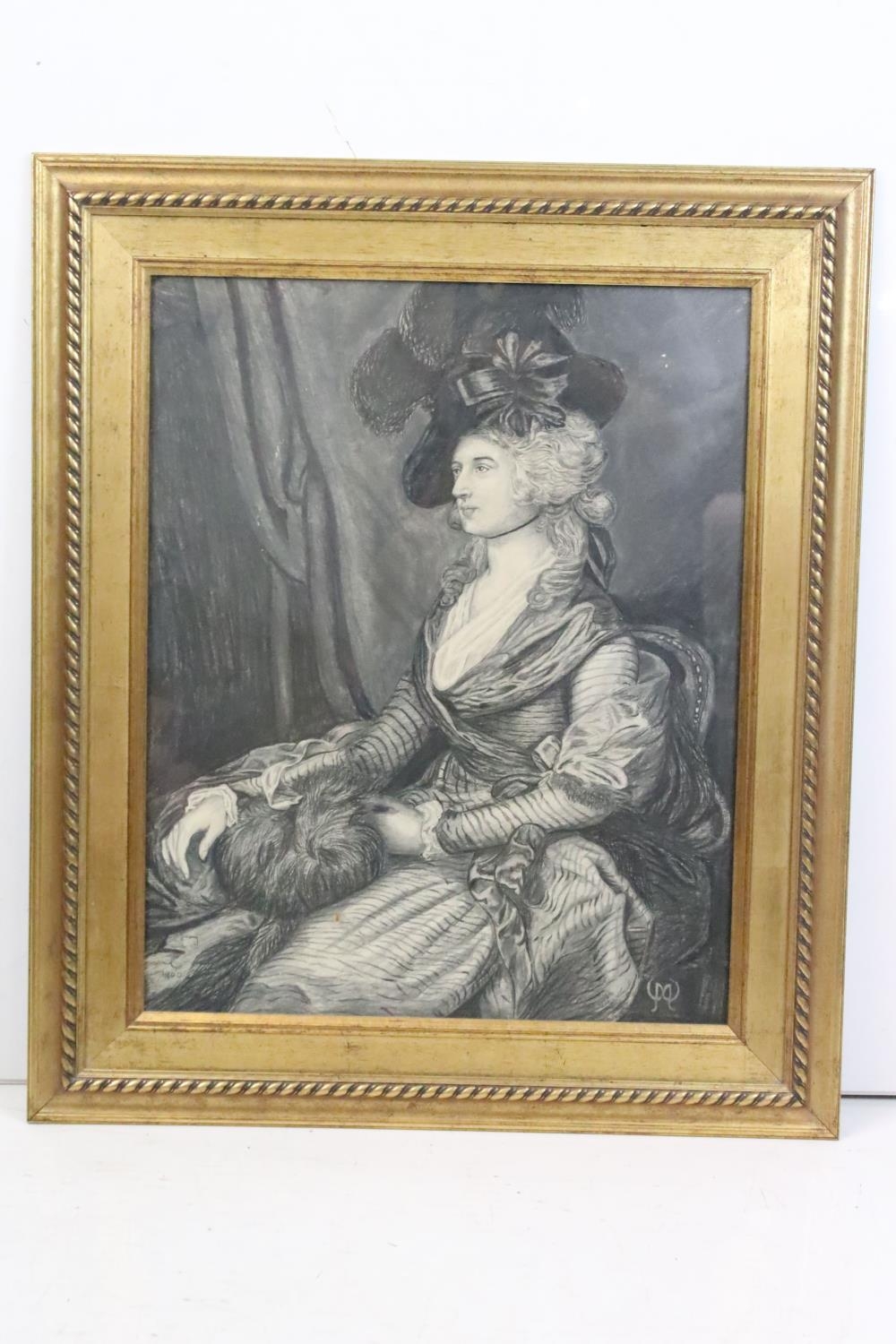 After Thomas Gainsborough, ' Mrs Siddons ', three quarter length portrait of Sarah Siddons, charcoal, monogrammed lower right, 55 x 44cm, gilt framed, Provenance: by repute property of Frank Maddox, Theatre Royal Bath