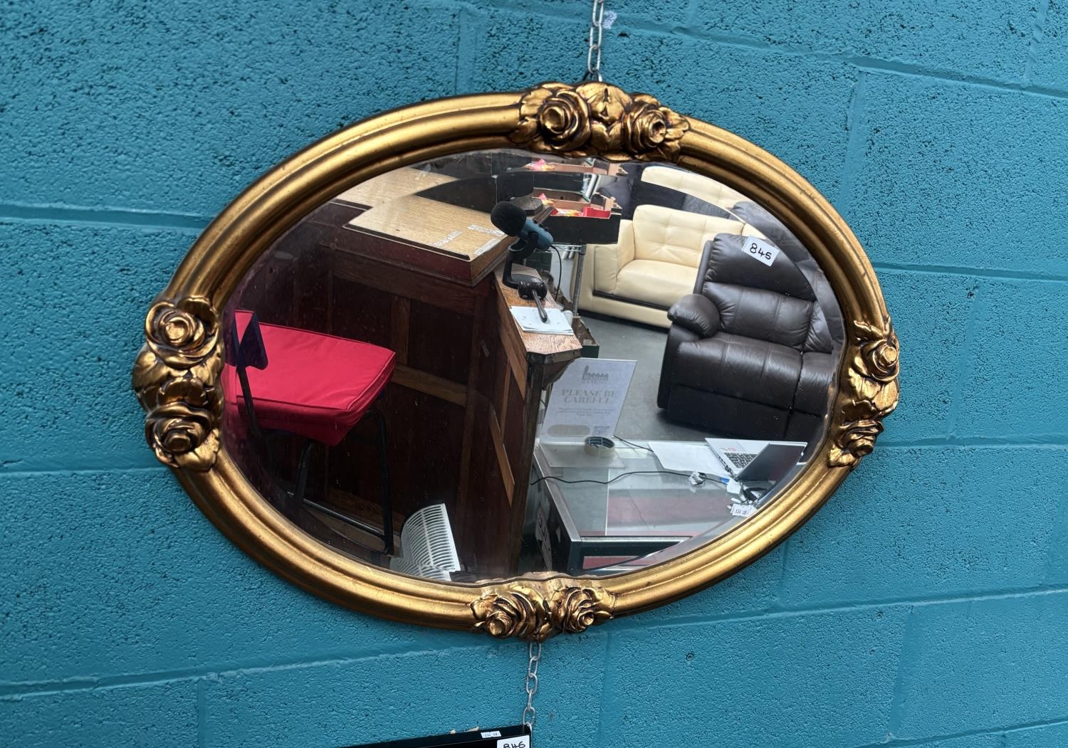 Ornately framed oval bevel edge mirror (80x60cm)