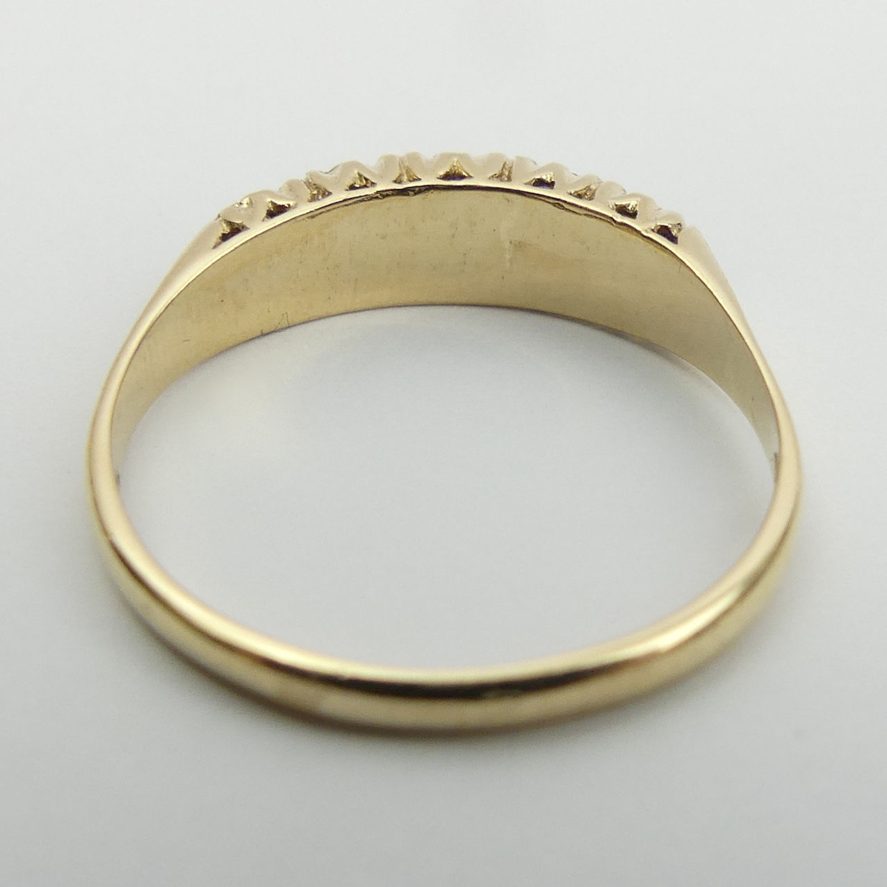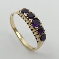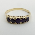 9ct gold amethyst five stone ring, 2.4 grams. Size U, 5.2 mm wide. UK Postage £12.