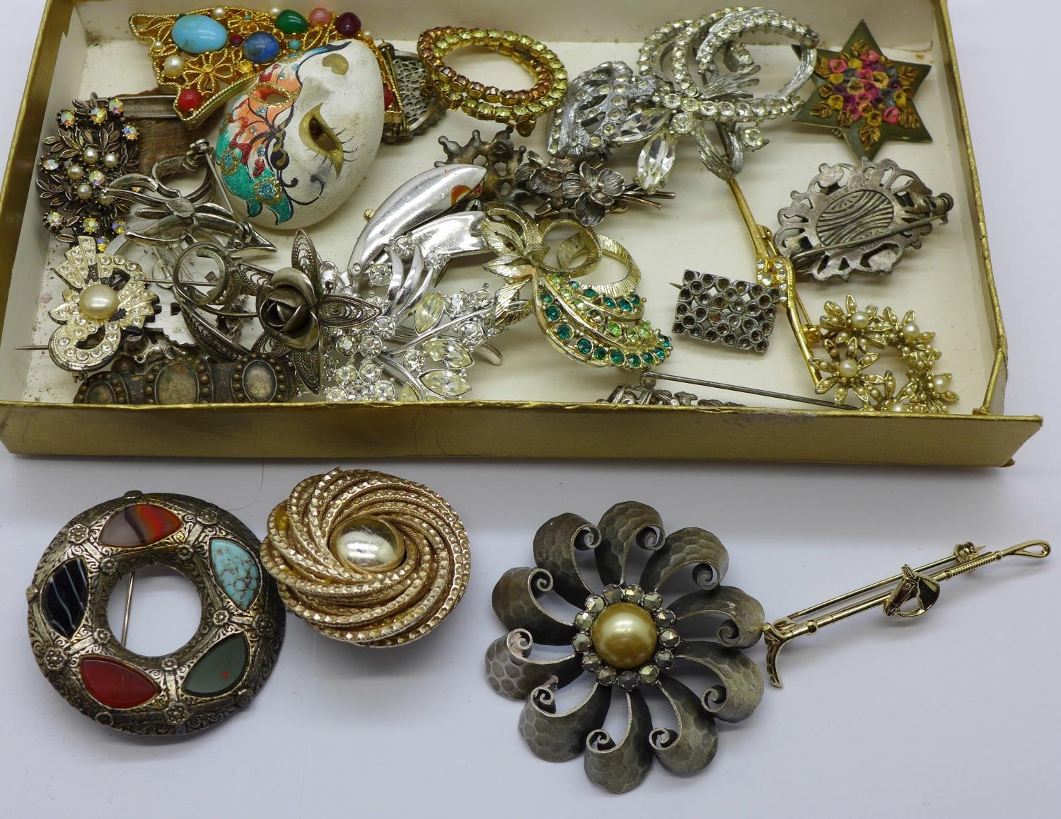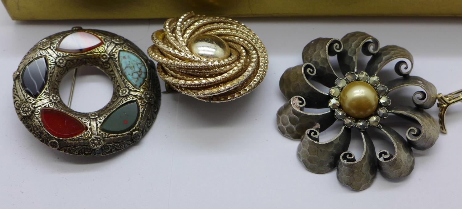 Thirty costume brooches, some a/f