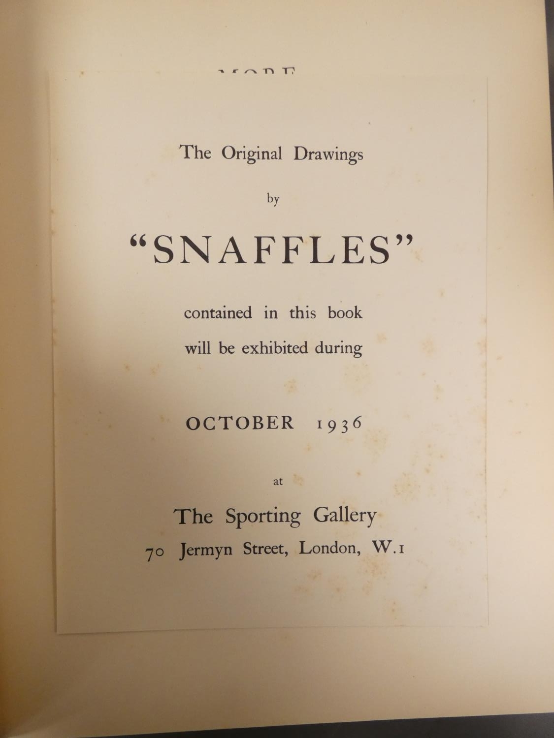 "SNAFFLES". More Bandobast. Tipped in col. plates & other illus. Quarto. Orig. cloth (soiling) in torn d.w. 1936; also 2 vols. re. Kashmir. (3).
