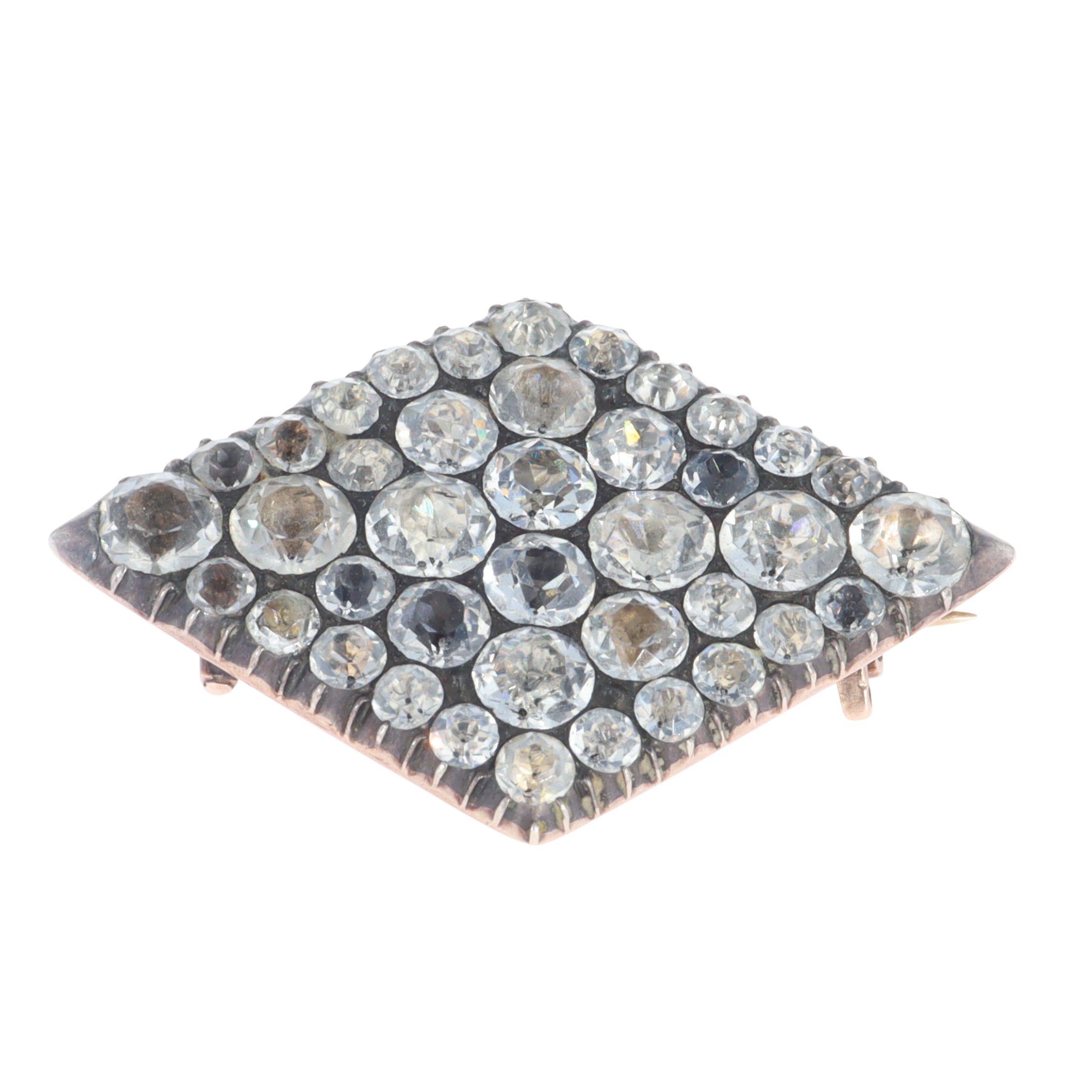 Antique Gold Back Brooch Set with Paste. The back of the brooch has been tested as 9ct. Minor surface wear due to age. Measures approximately 3.3 x 2.3cm. Weighs in total 5g.