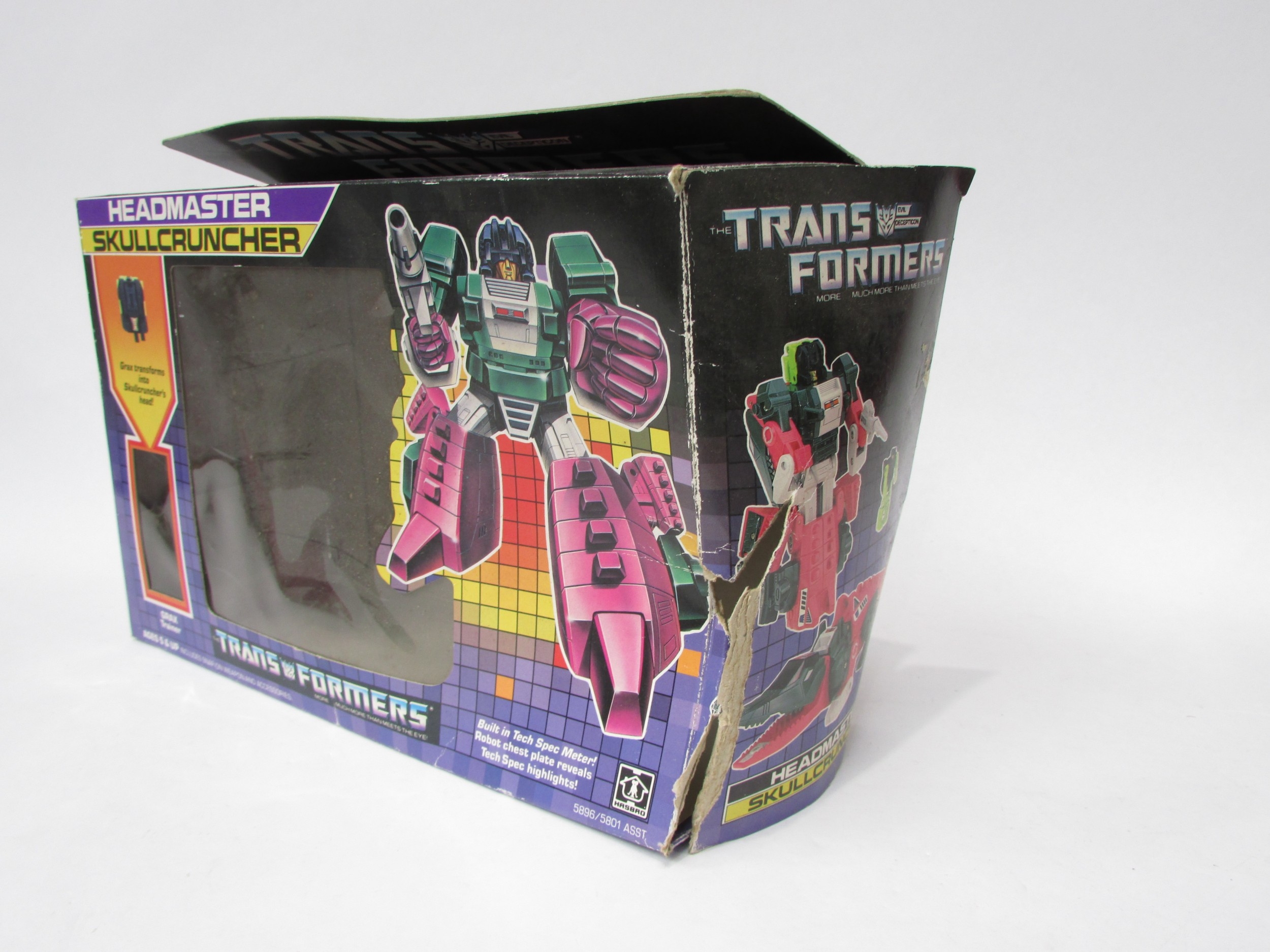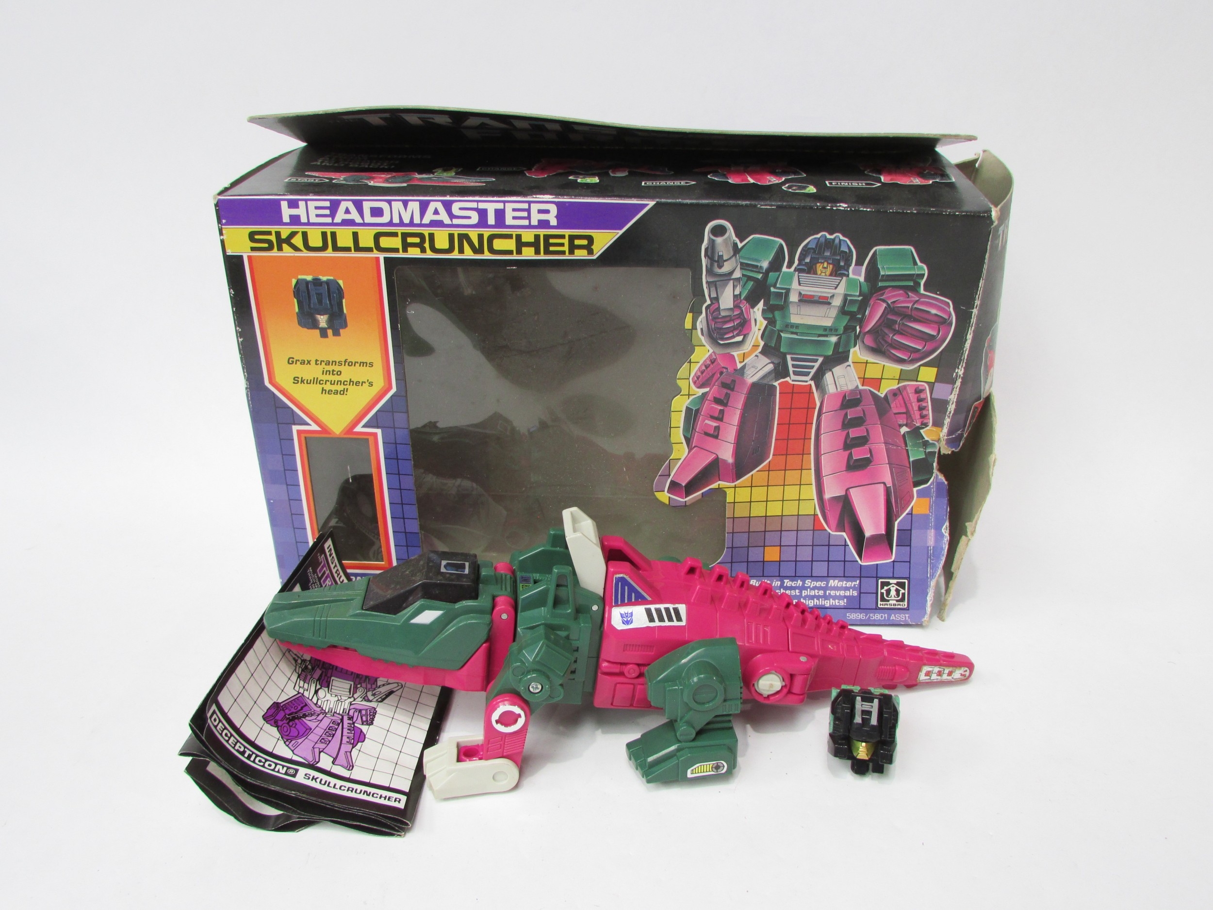 Hasbro Takara Transformers 1980s First Generation (G1) boxed Decepticon 'Headmaster Skullcruncher', with "Grax" and instruction booklet, in original box a/f