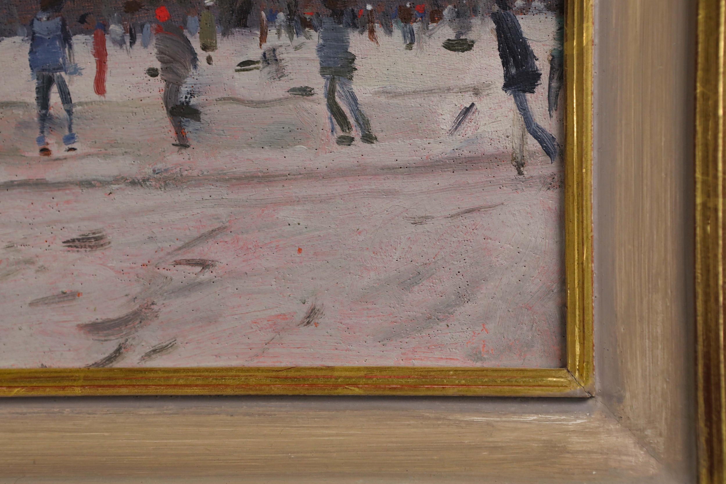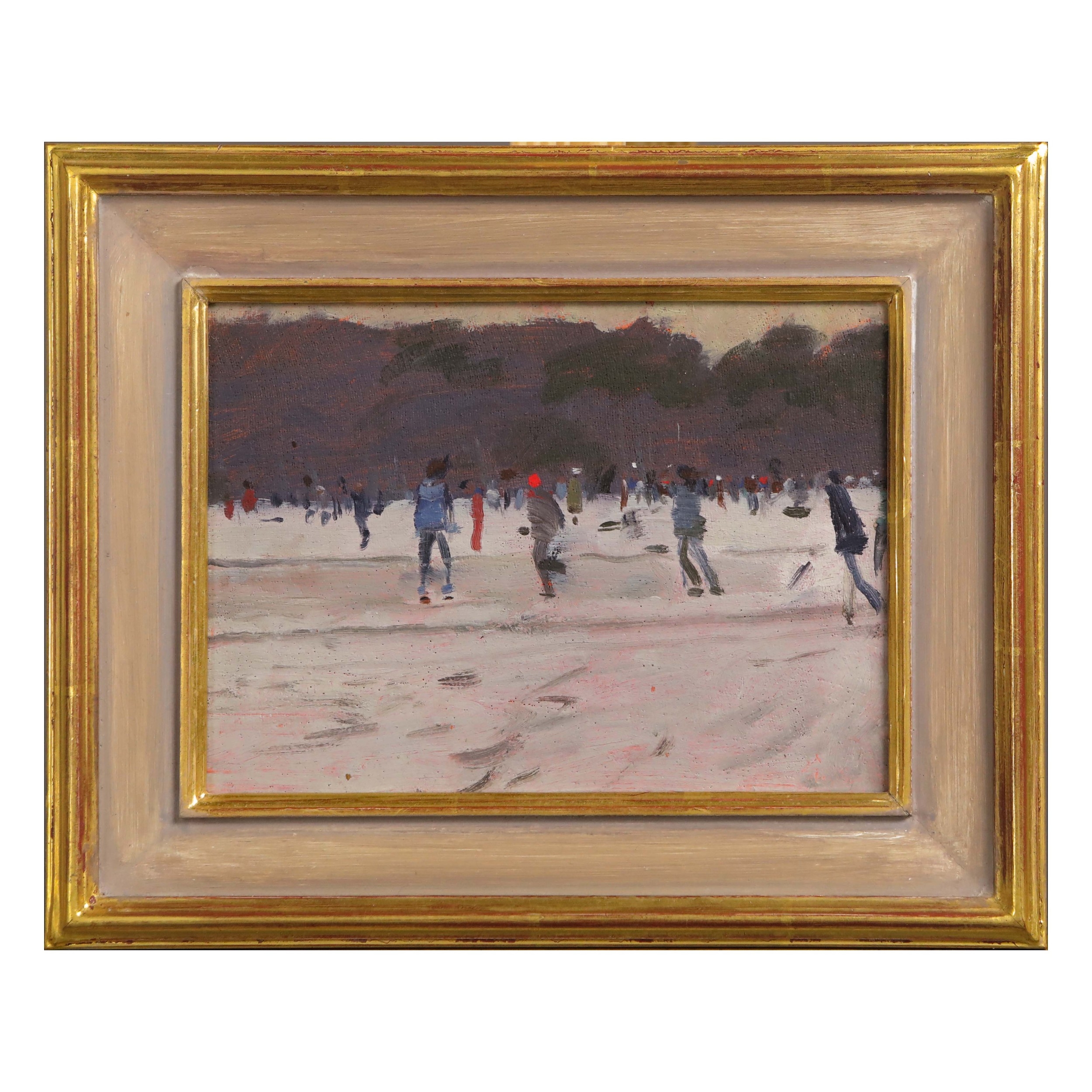 KEN HOWARD (1932-2022). SKATERS. oil on panel, 16cm x 22cm, ...