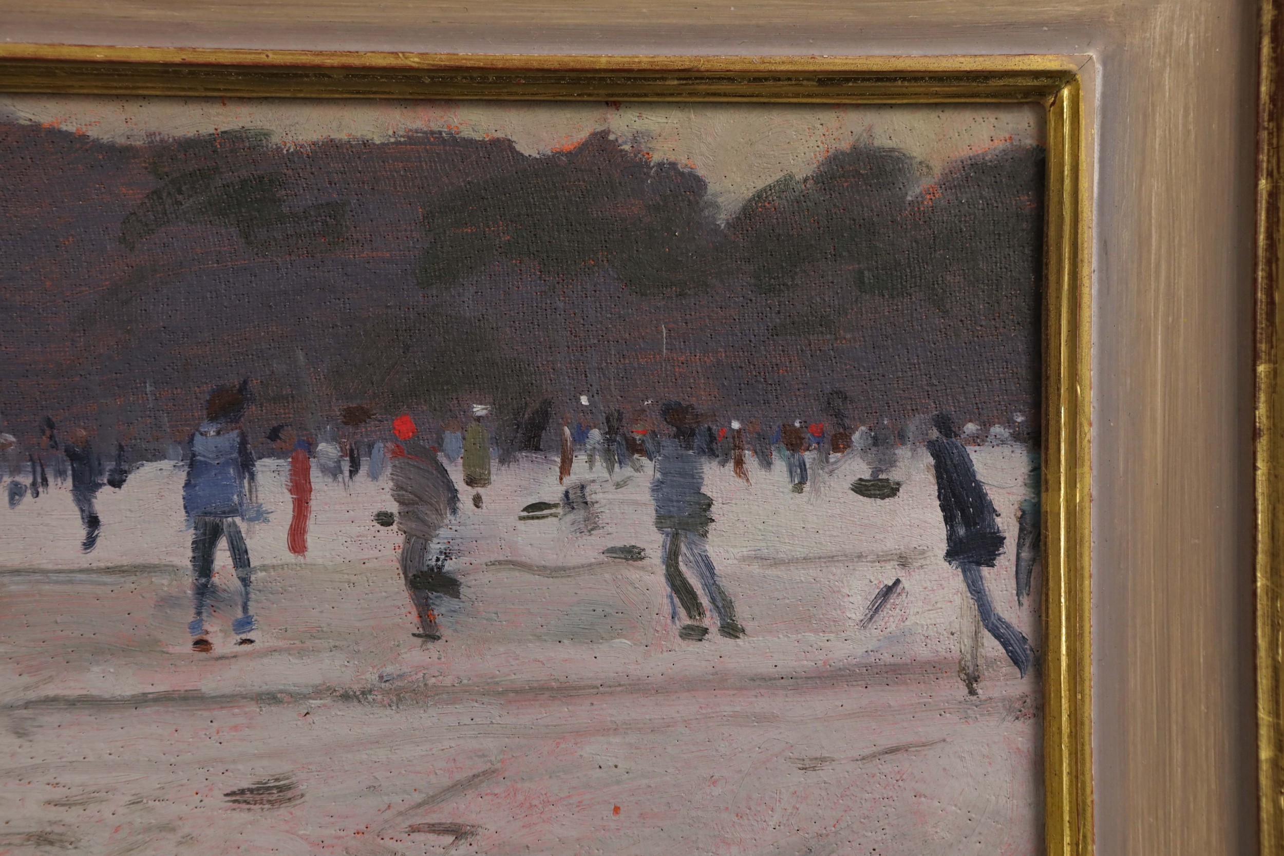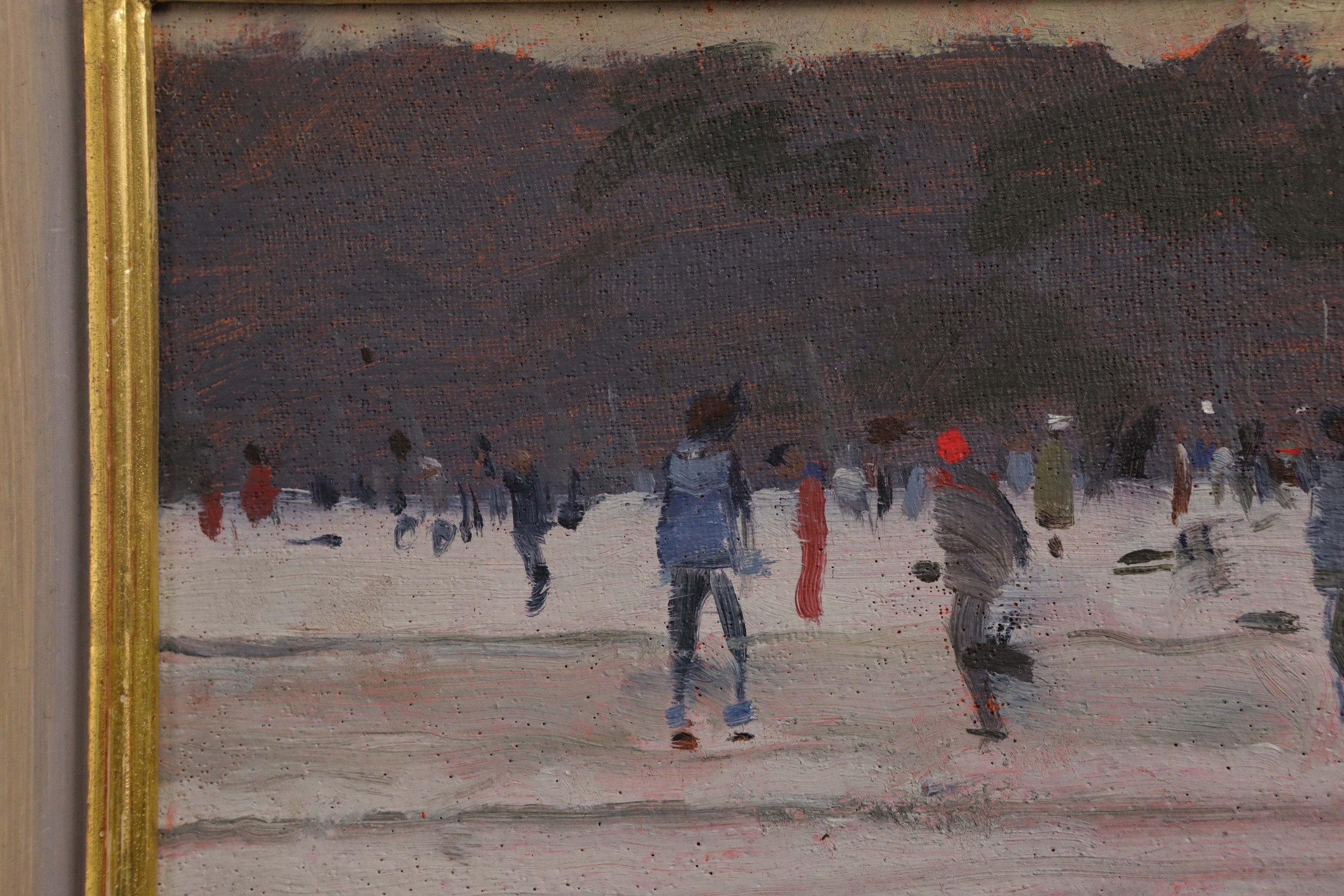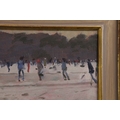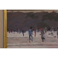 KEN HOWARD (1932-2022). SKATERS. oil on panel, 16cm x 22cm, framed.