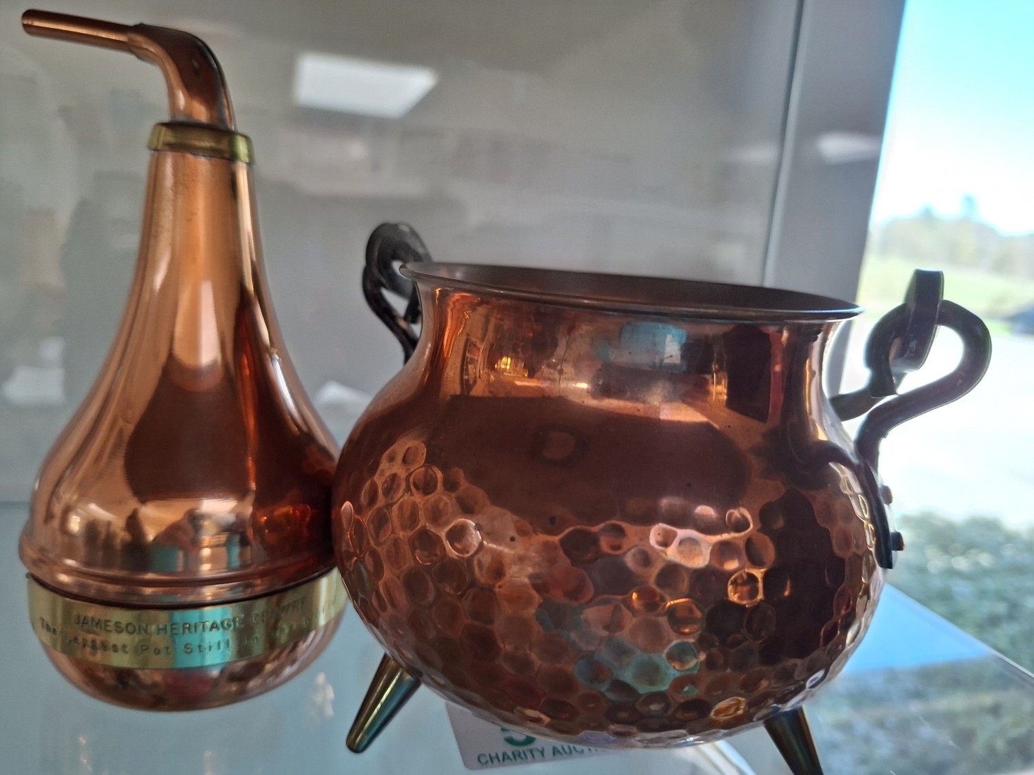 Jameson Heritage Centre copper model of the largest pot still in the world (sits in grounds of distillery) & copper Irish cauldron from Jameson Heritage Centre