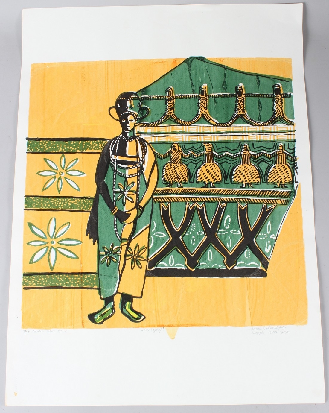 BRUCE ONOBRAKPEYA (1932 NIGERIA) 'Okuku (Hair Dress)' serigraph / screenprint 8/75 signed and inscribed dated Lagos November 2011 unframed 51.5 x 51cm image