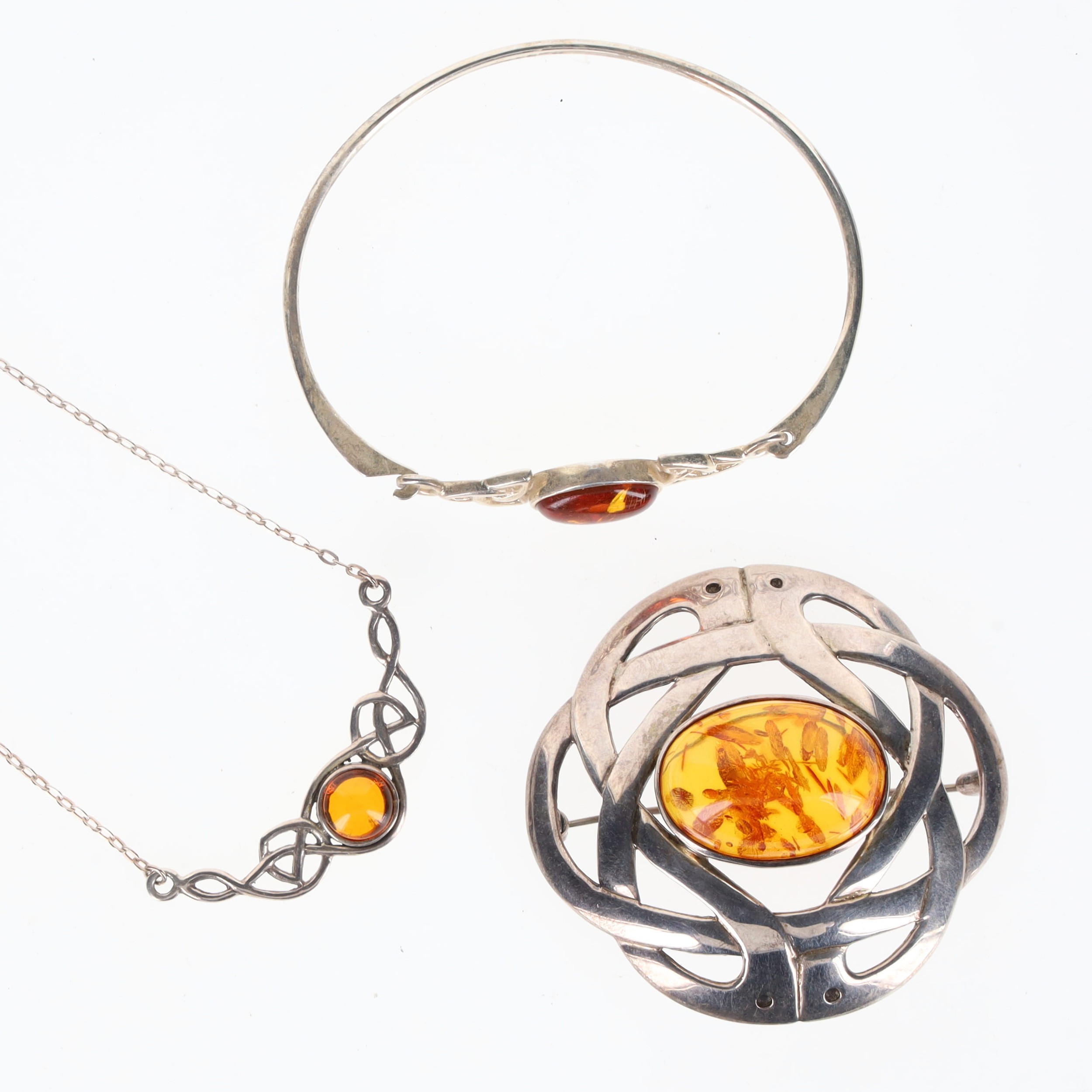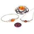Celtic Amber Silver Jewellery Collection incl. Baltic, Kit Heath. Each piece is stamped sterling silver. All stones are intact with minor surface wear, clasps are in working order. Weighs in total 33g.