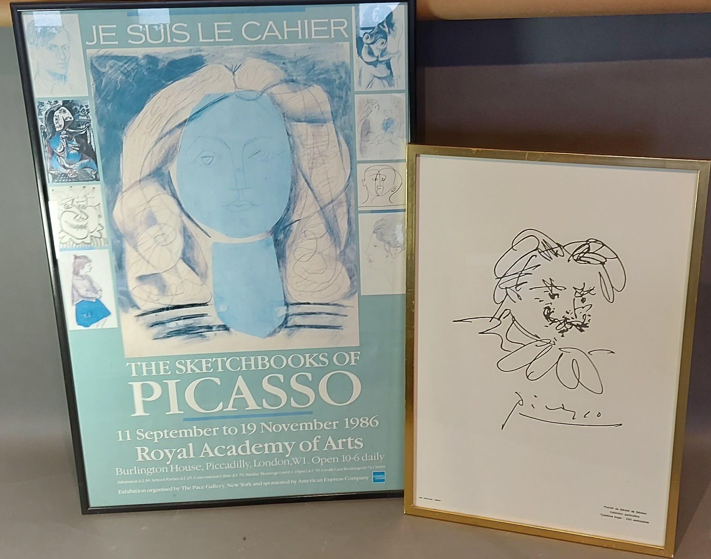 Pablo Picasso, Portrait de Deodat de Severac, limited edition print, collection particuliere, Troisieme tirage, 250 exemplaires, IMP Richard, Ceret, 55cms x 37cms togther with a poster for, The Sketchbooks of Picasso, dated 1986