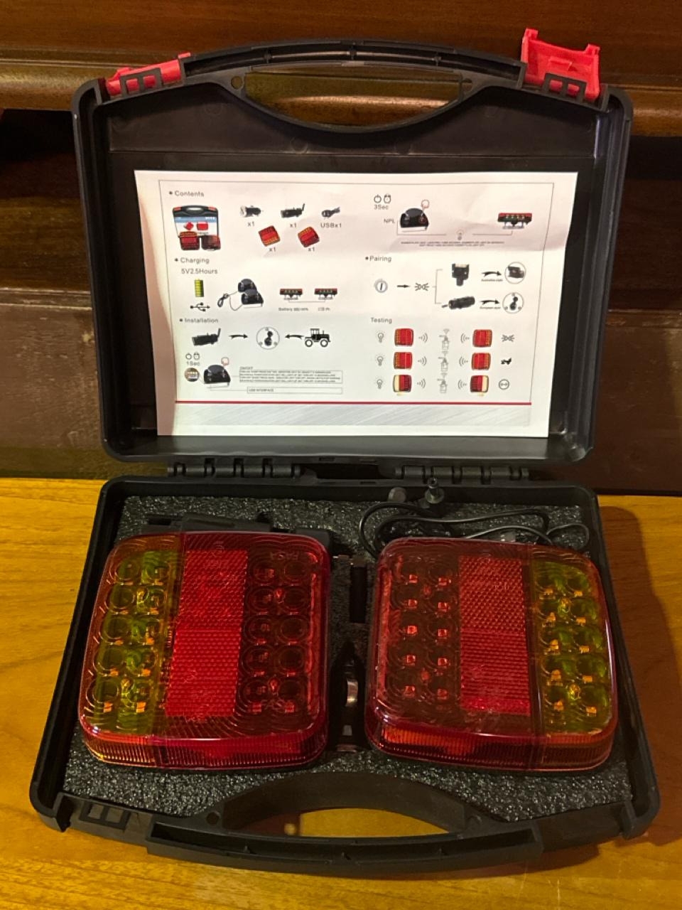 Cased wireless LED work lamps.