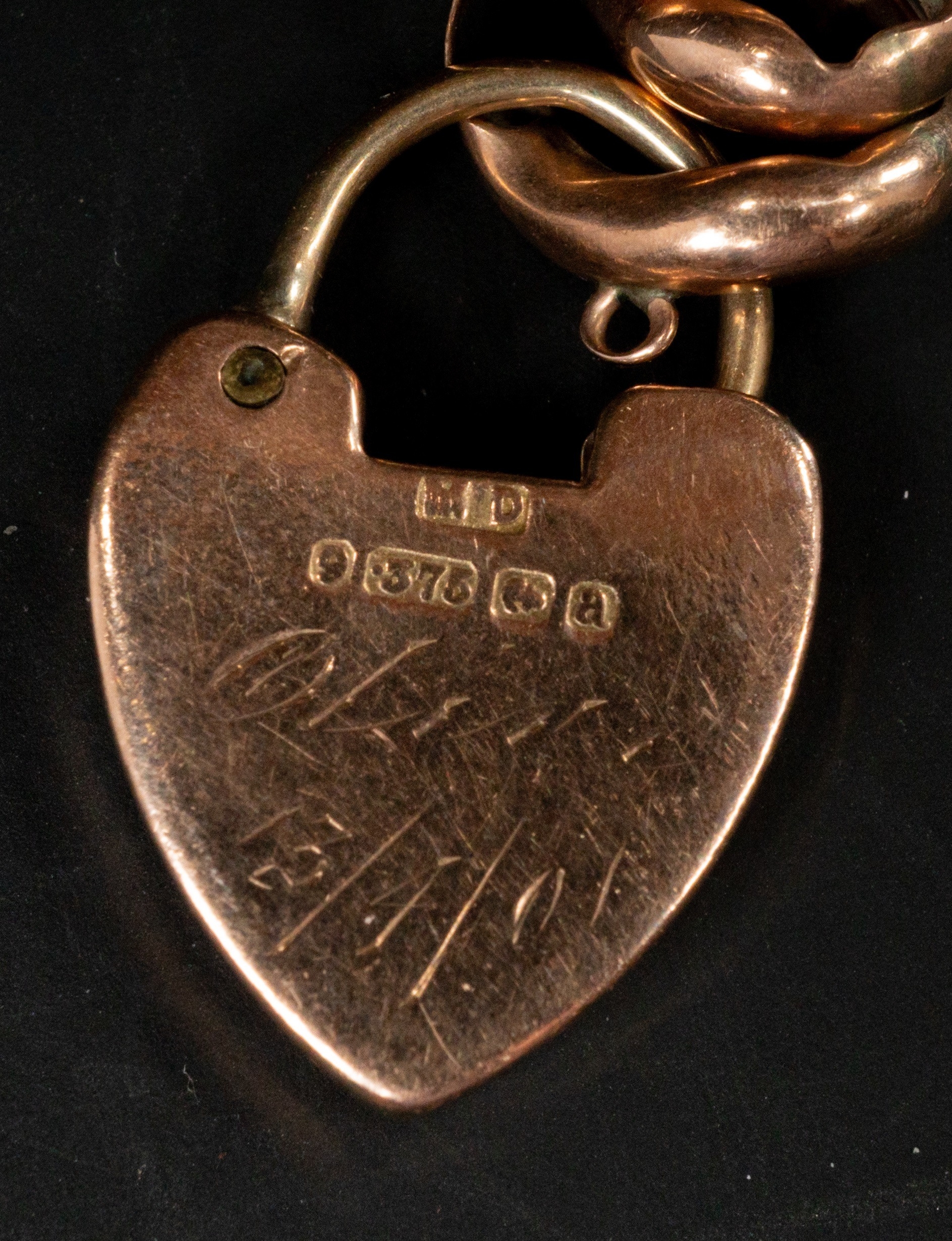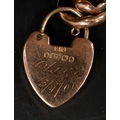 Jewellery: 9ct gold curb link bracelet with padlock fastener, width of bracelet 9mm, length 18.5cm, 14.10g.