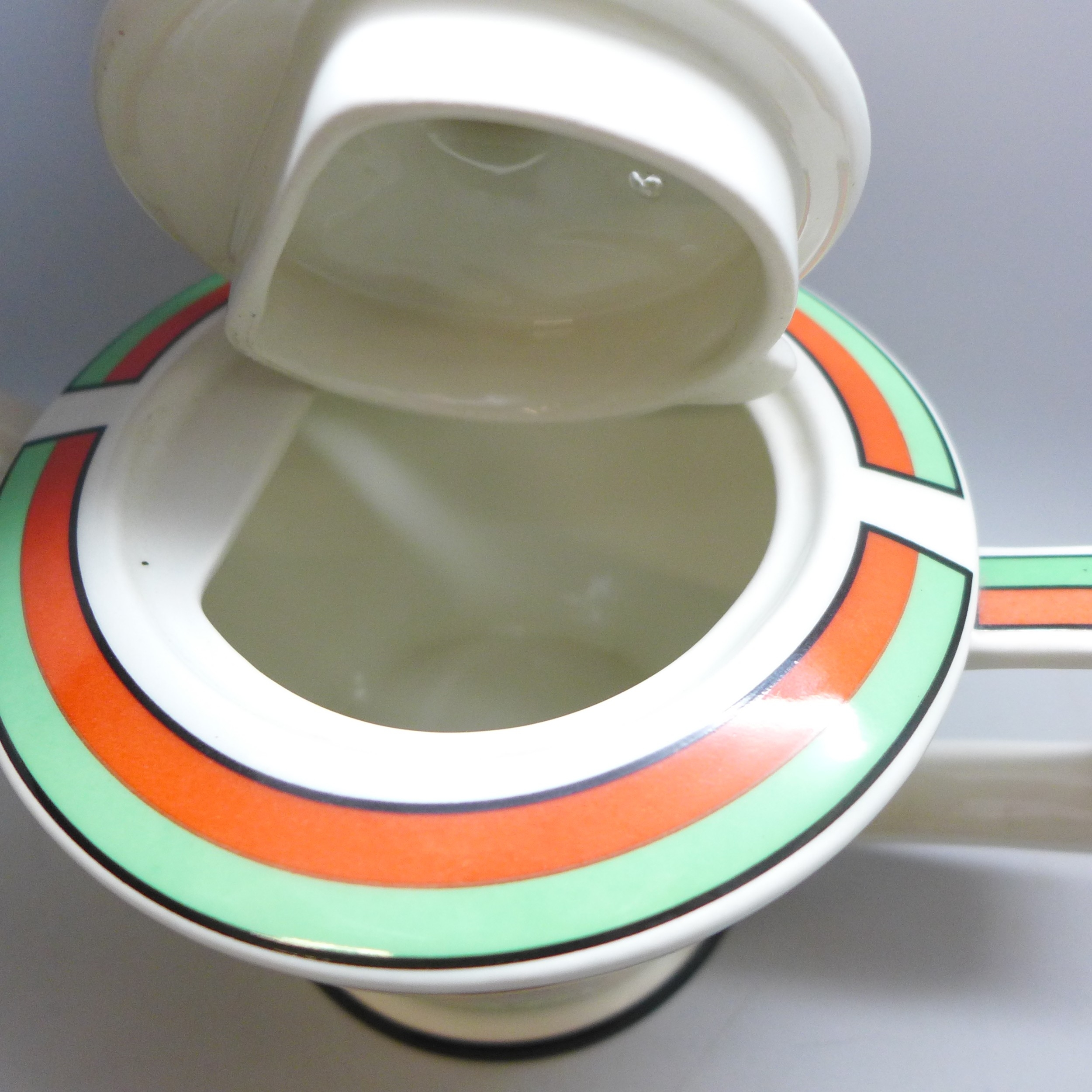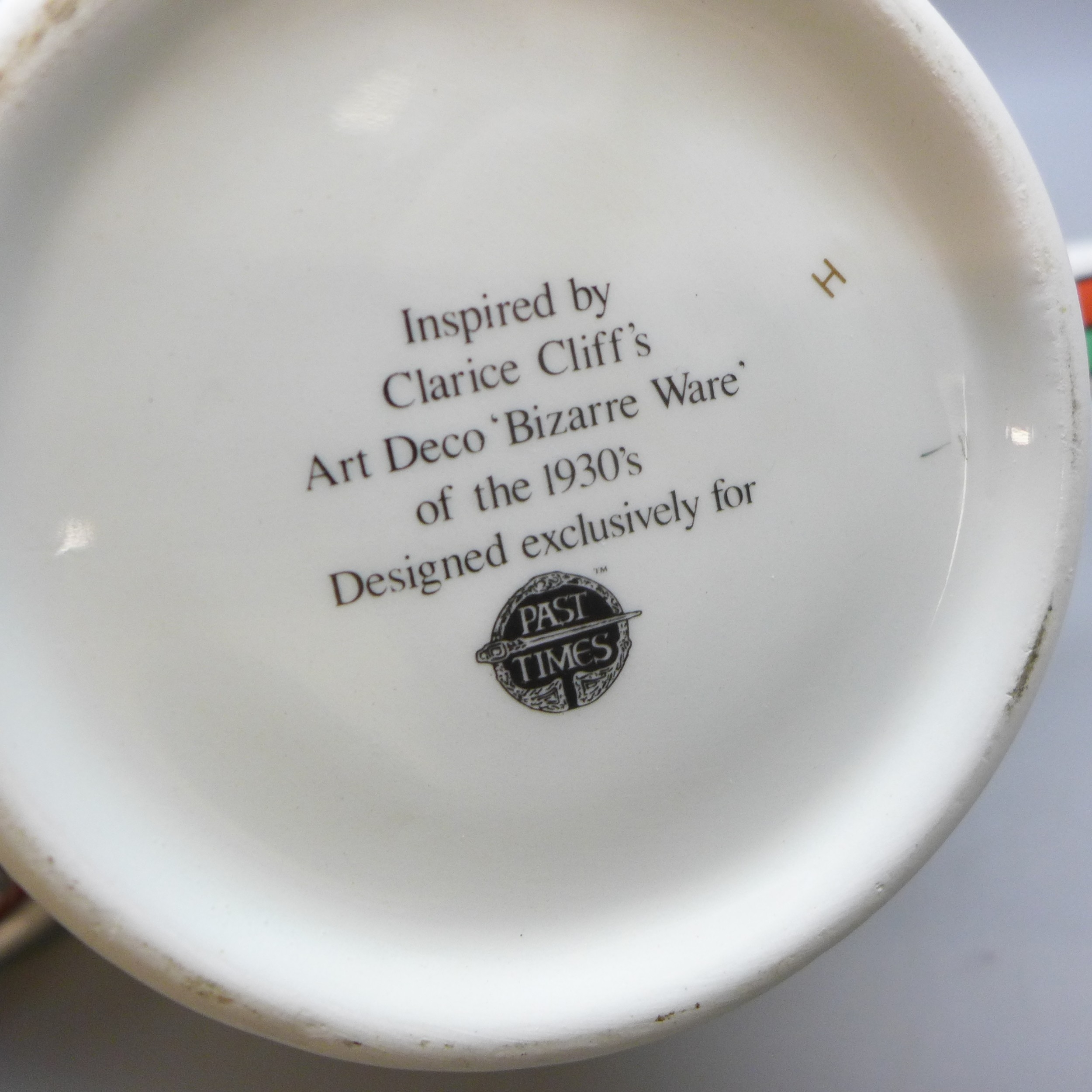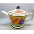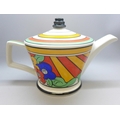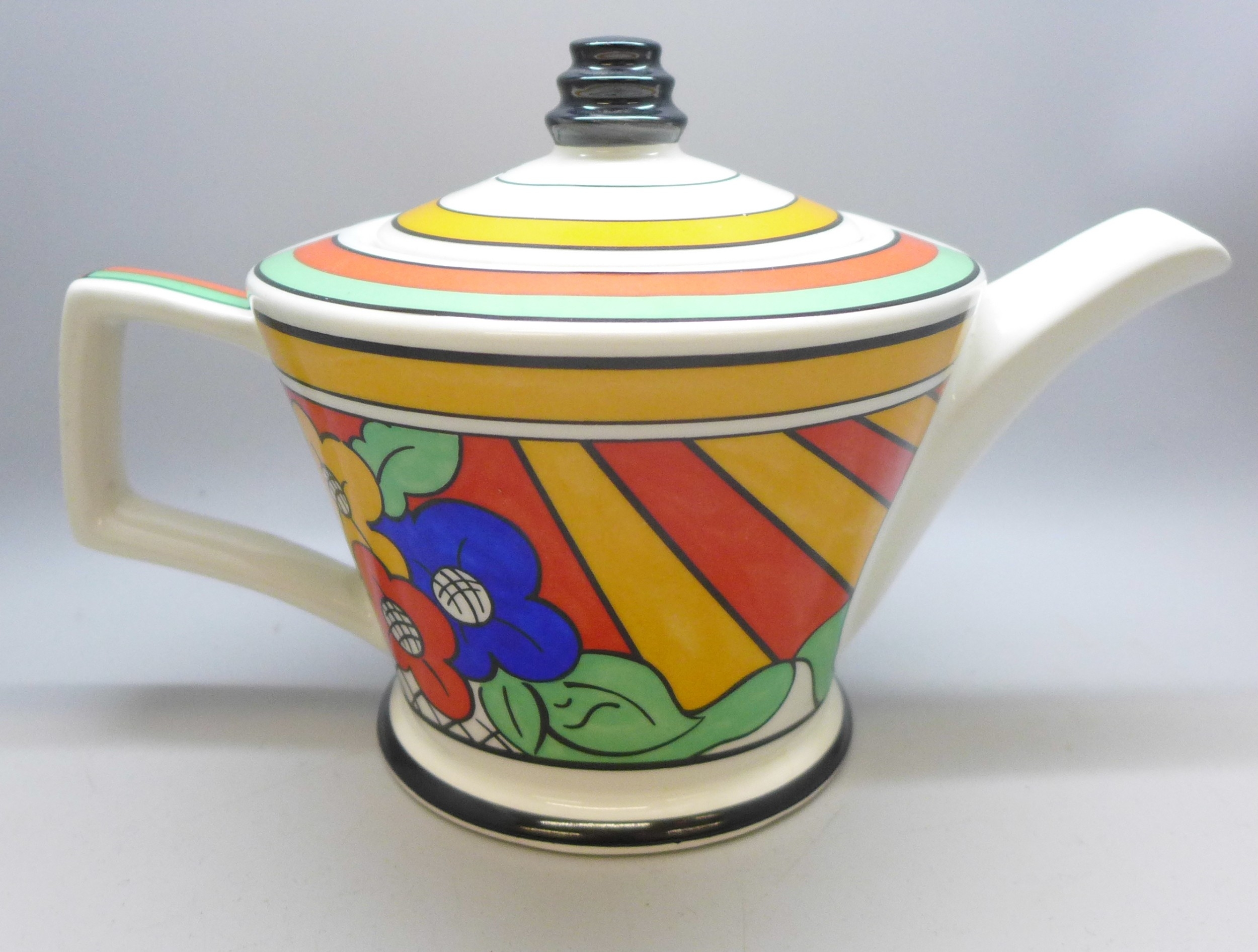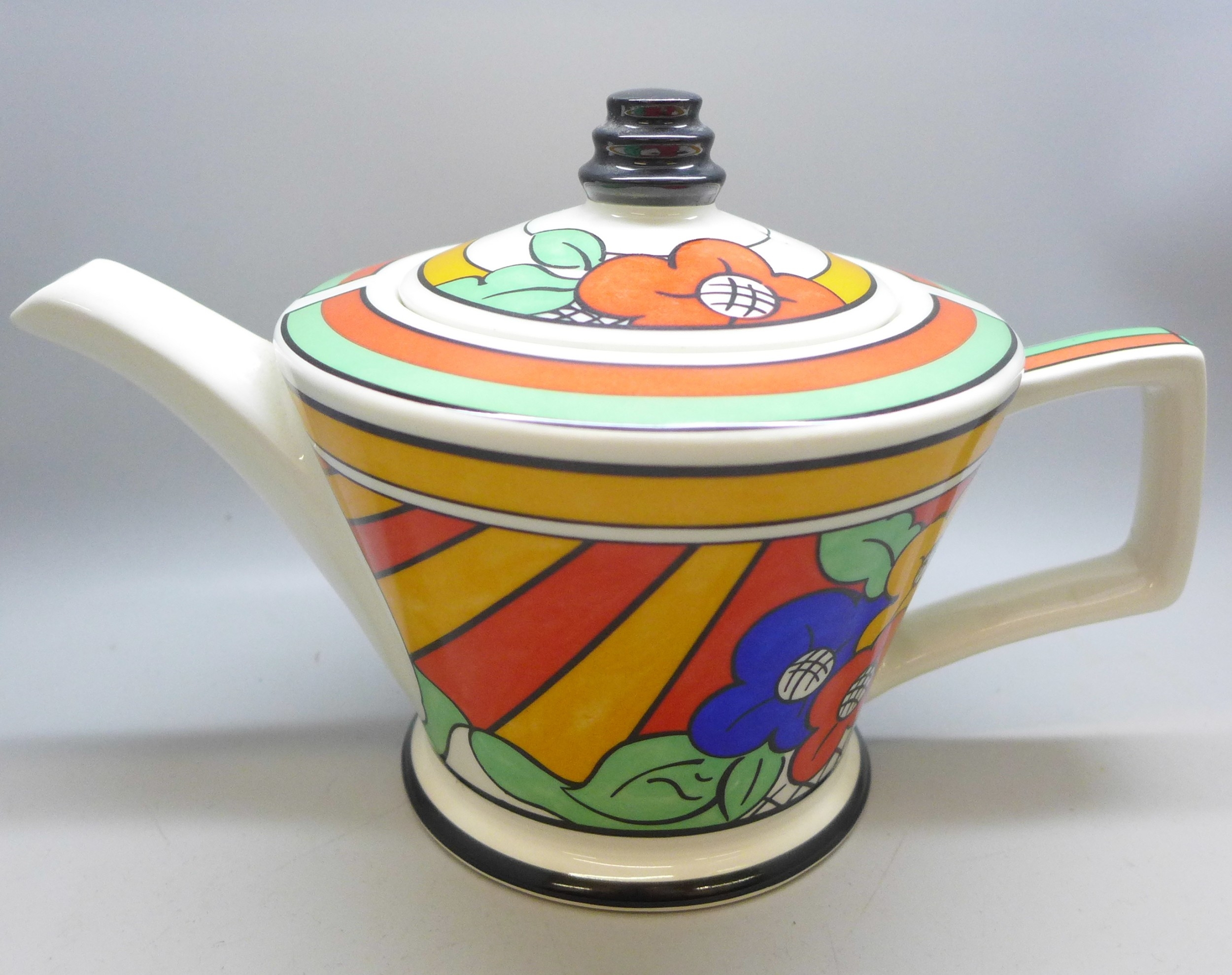 A Past Times Art Deco style porcelain teapot, inspired by Clarice Cliff's Bizarre Ware