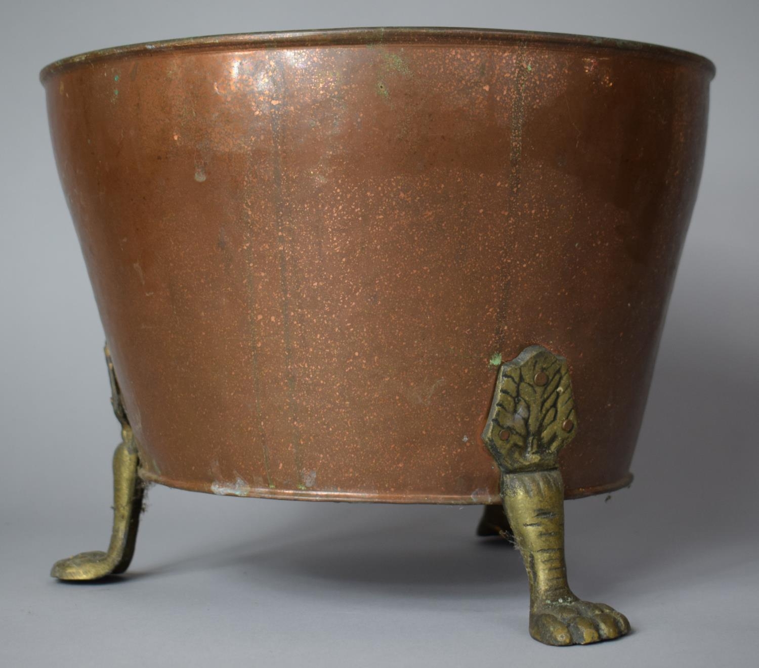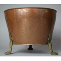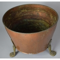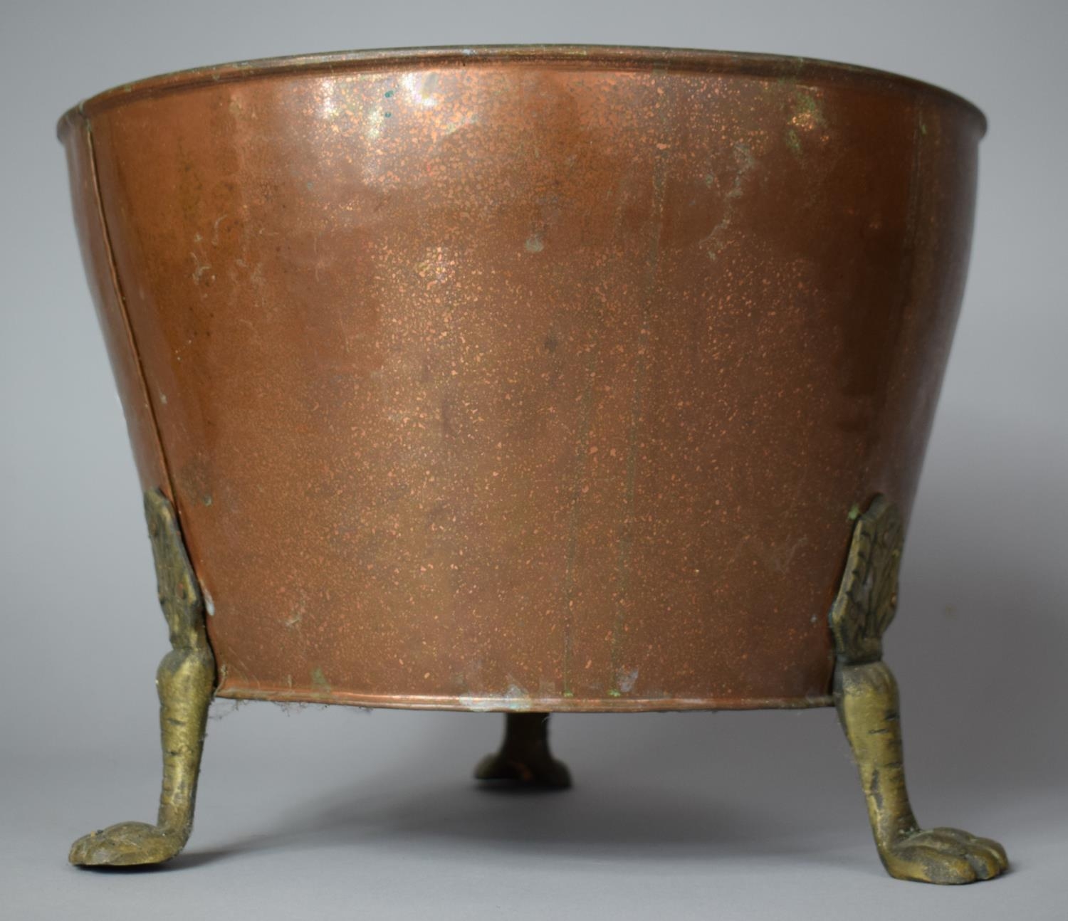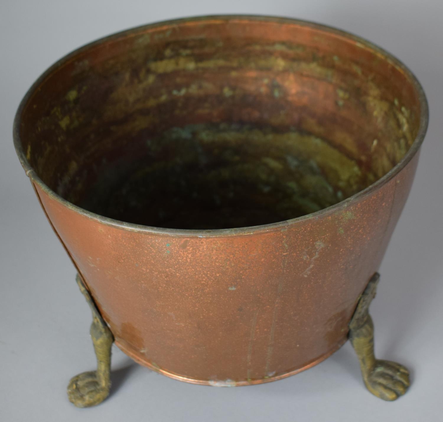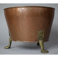 A Circular Copper Planter with Three Brass Claw Feet, 28cm Diameter
