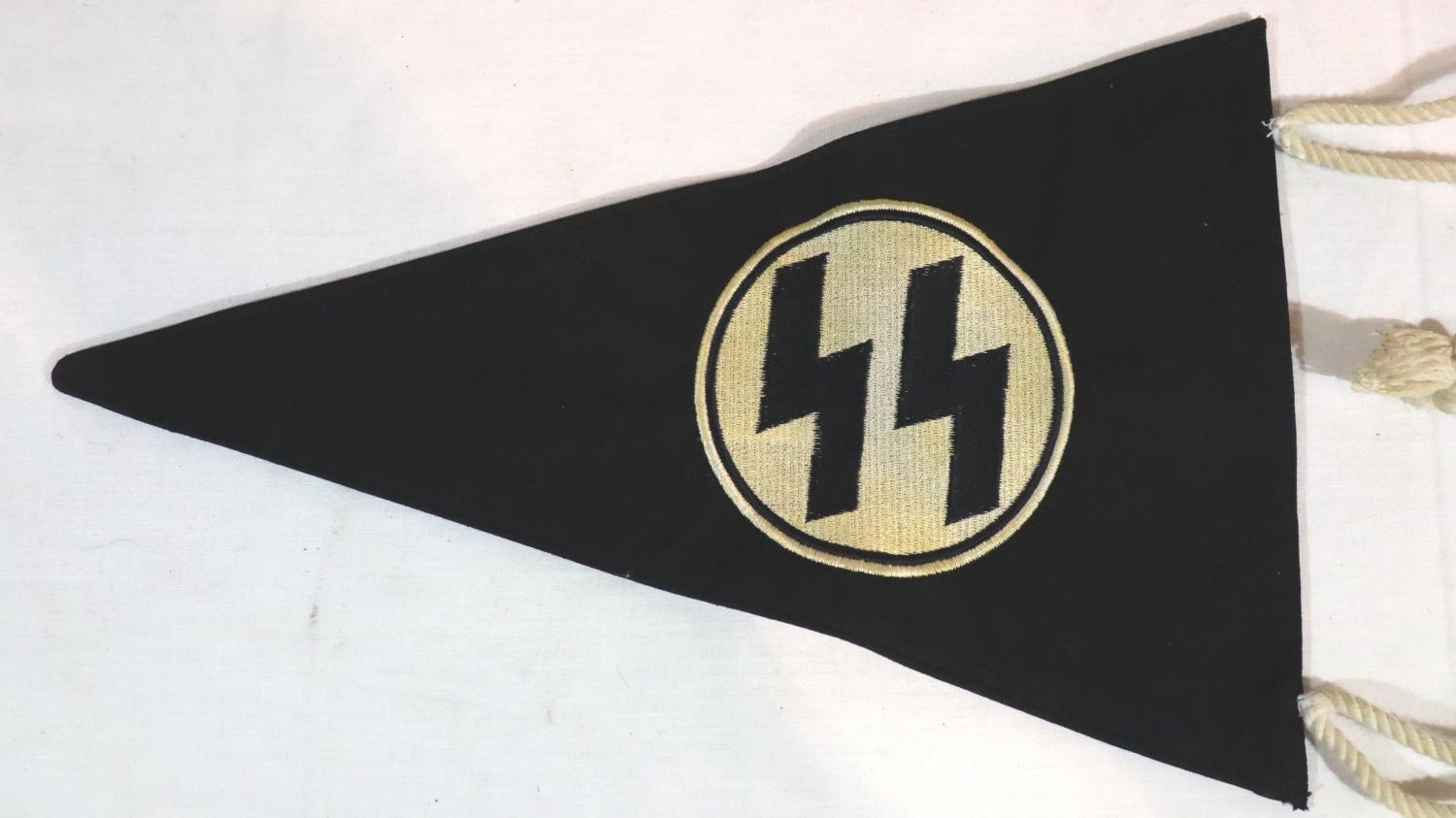 German WWII aged replica SS pennant, L: 32 cm. P&P Group 1 (£14+VAT for the first lot and £1+VAT for subsequent lots)