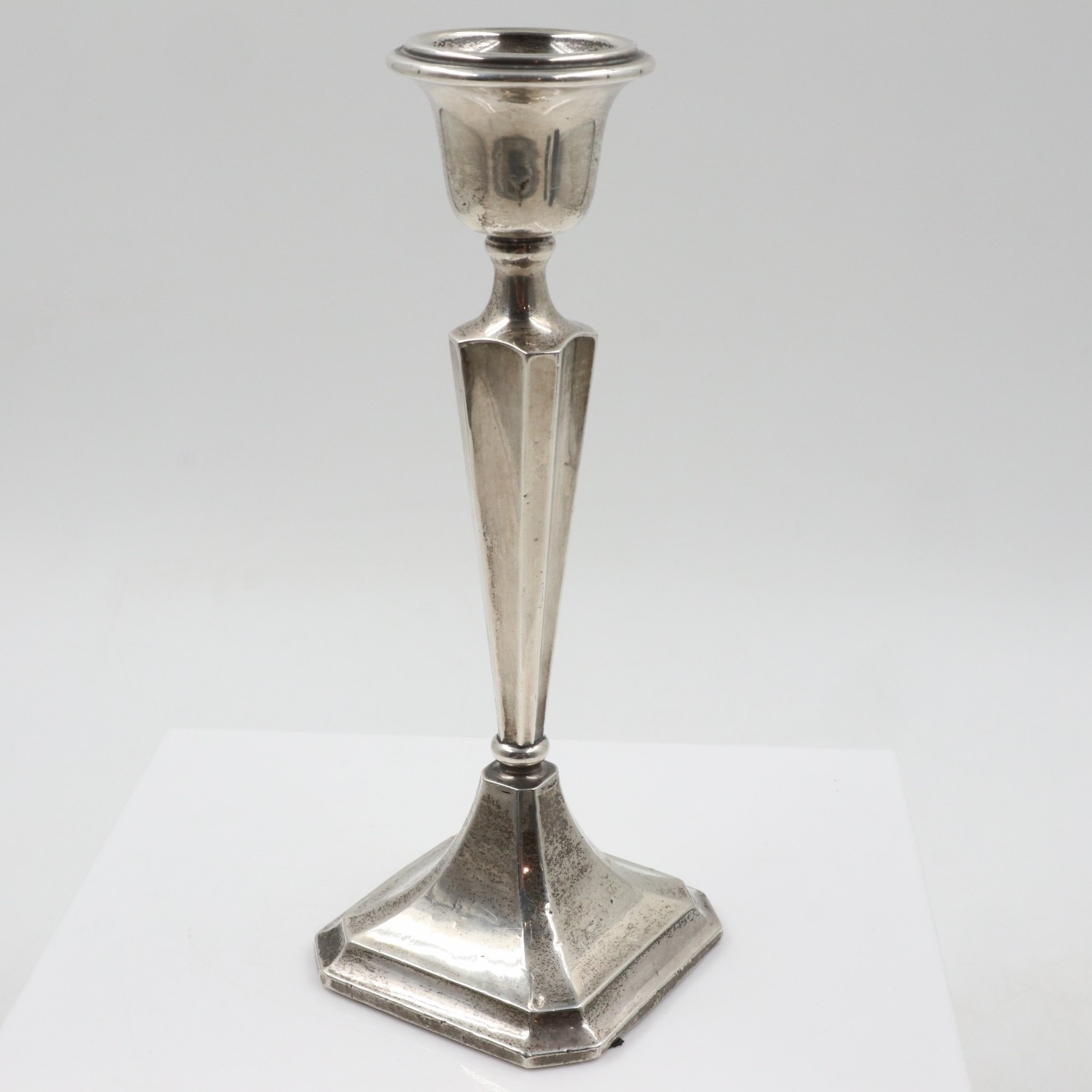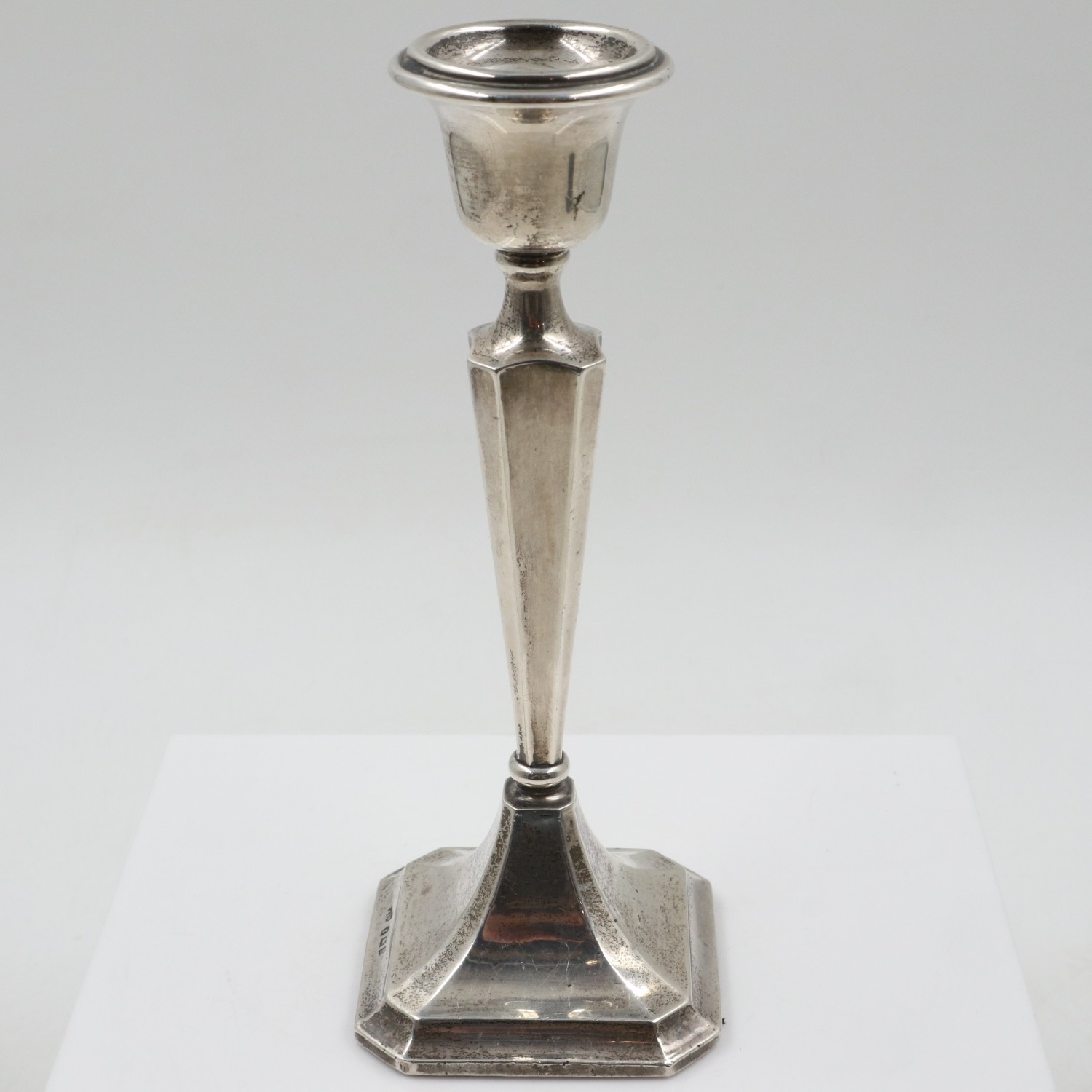 Silver candlestick, Birmingham assay, H: 18 cm. UK P&P Group 1 (£18+VAT for the first lot and £2+VAT for subsequent lots)
