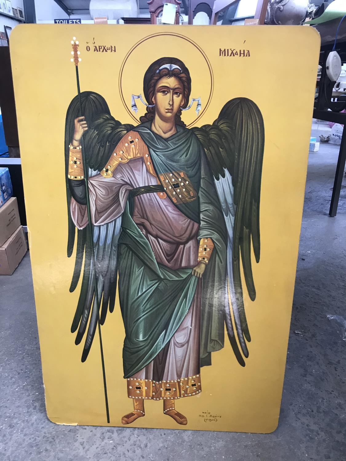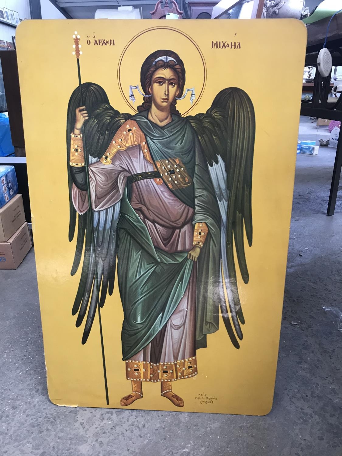 Vintage Very Large ' Archangel Michael' Religious Icon Copy (82cm x 51cm)