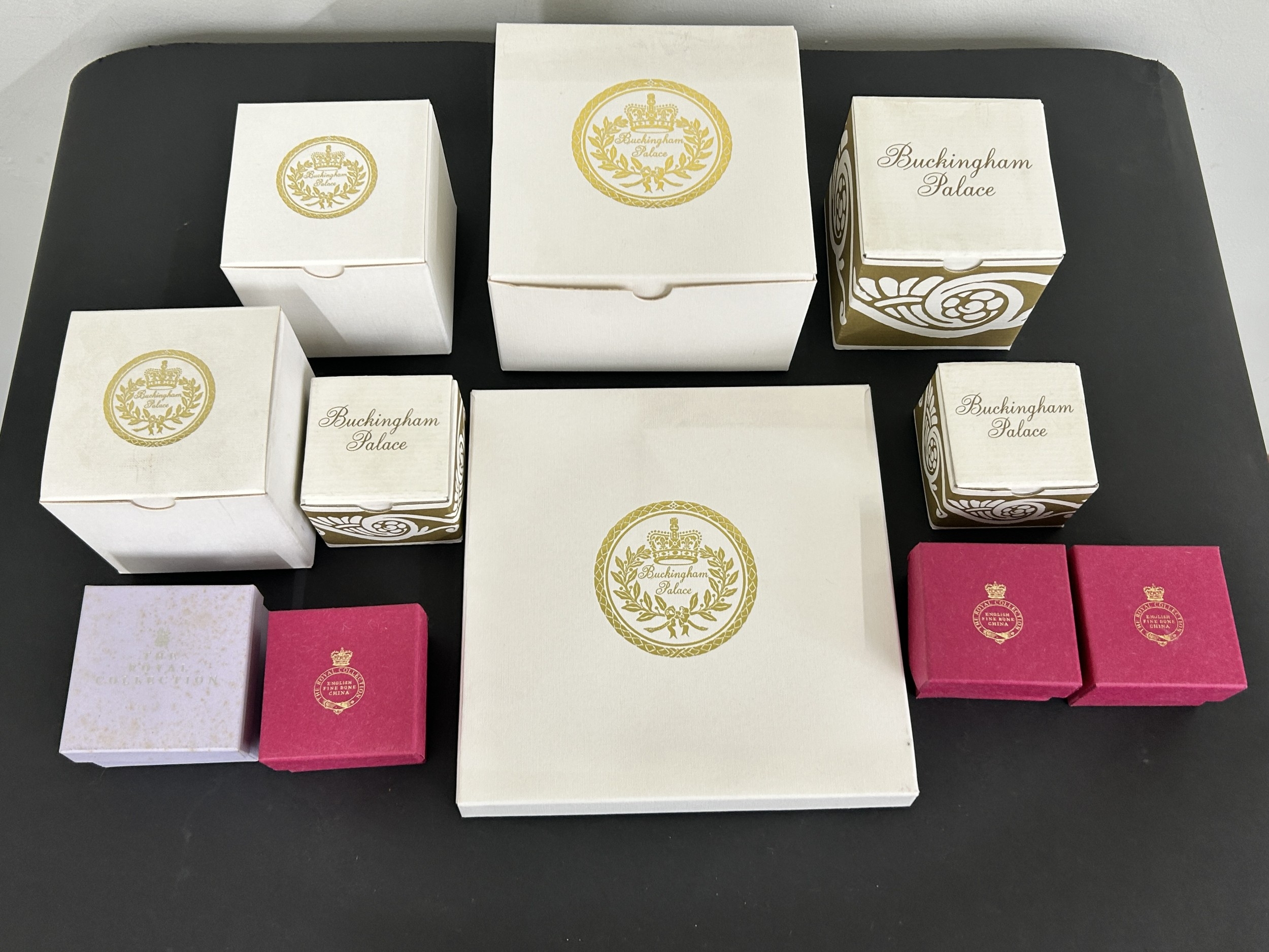 A collection of eleven Buckingham Palace collectable china items including cups, trinket boxes and a plate