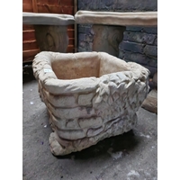 Large square concrete garden planter with a brick and ivy design. Approx 35cm square by 25cm tall